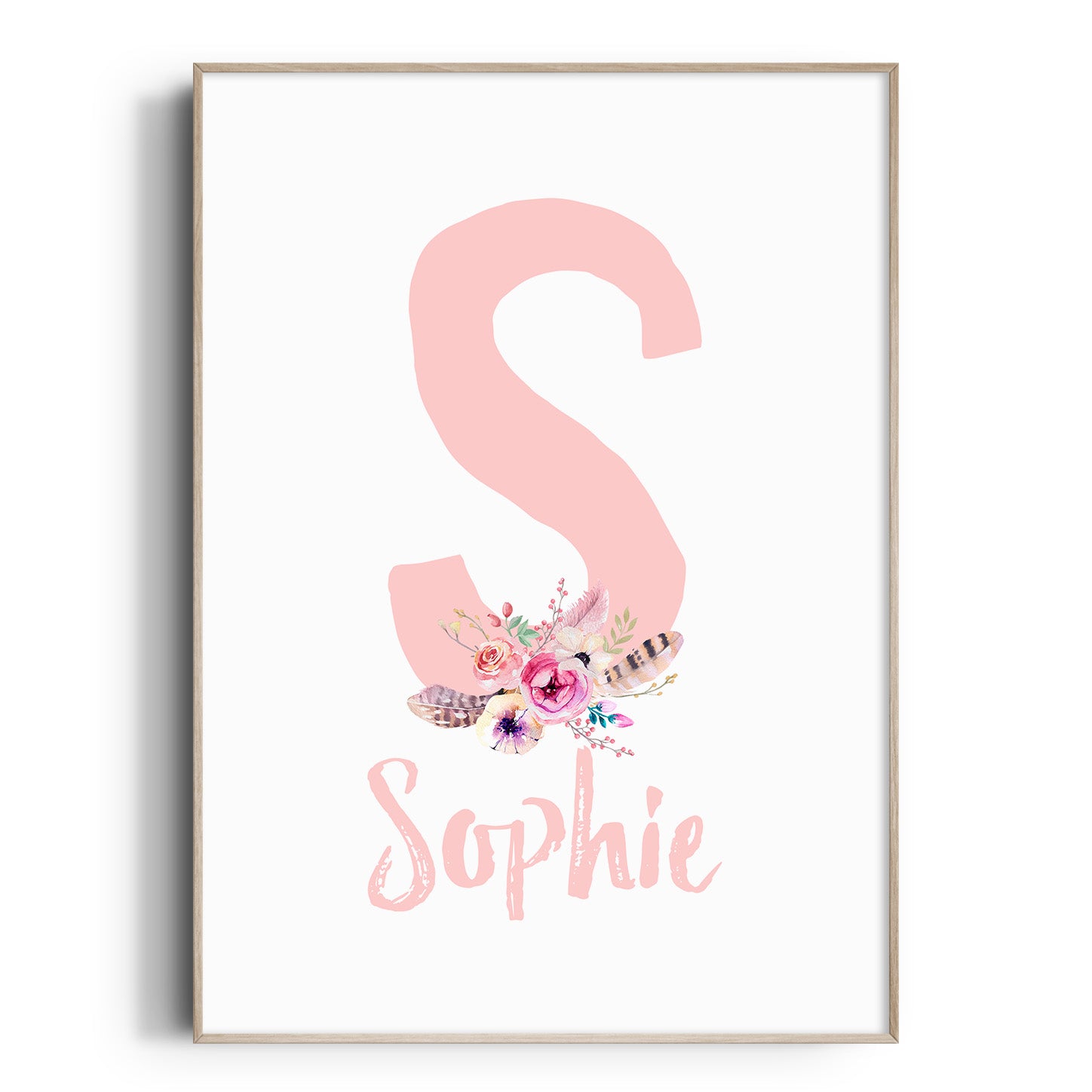 Pink Floral Boho Letter & Name Print