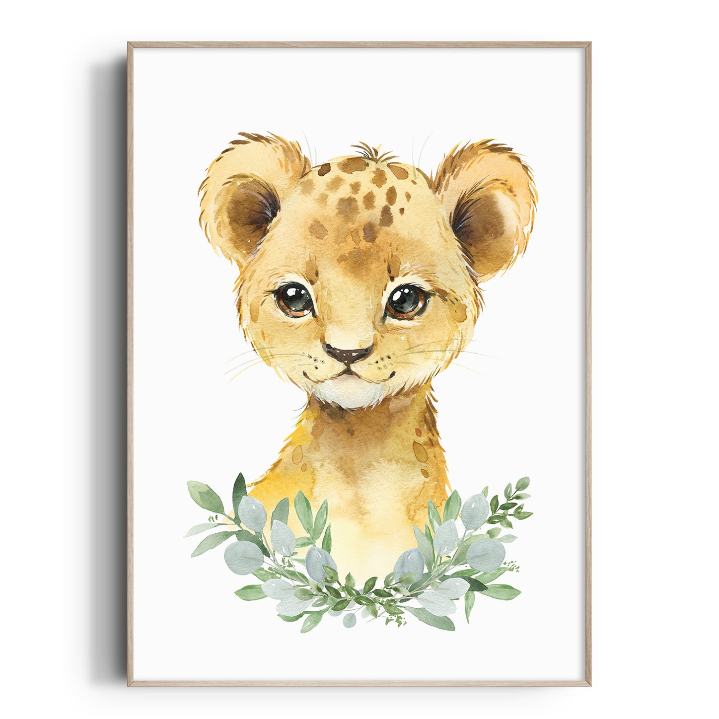 Unit price perThis watercolour baby lion cub wall art, would make a lovely addition to a nursery, child's bedroom, or playroom. Pair it with one of our many other baby safari animal prints or use as a stand alone statement.