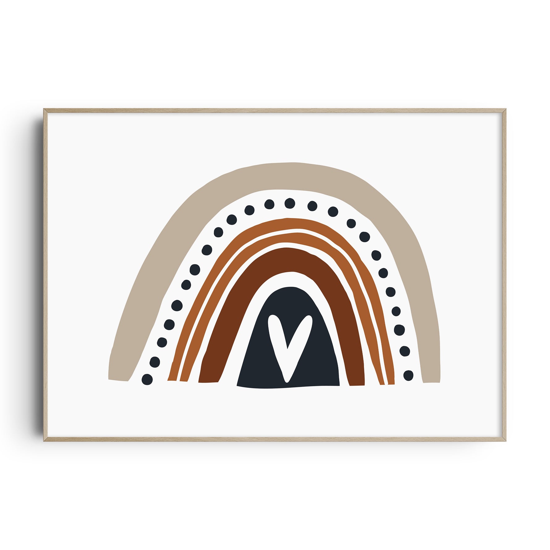 Unit price perThe perfect print for the modern nursery, bedroom or playroom, this scandi inspired rainbow art print features deep earthy tones, suitable for both boys and girls rooms of any age. Also makes a great new baby gift.