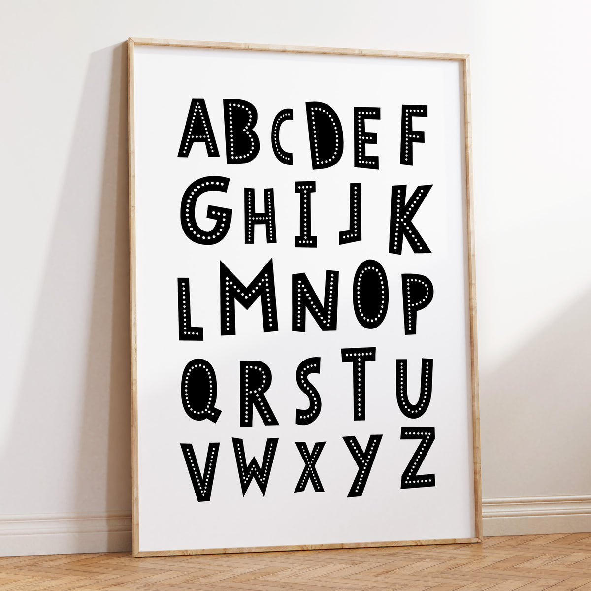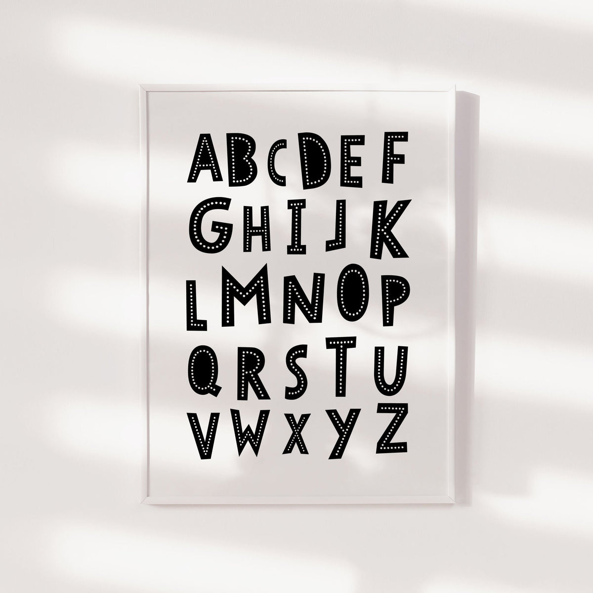 Unit price perA scandi inspired monochrome alphabet nursery wall art print. Perfect for the modern nursery or bedroom décor.