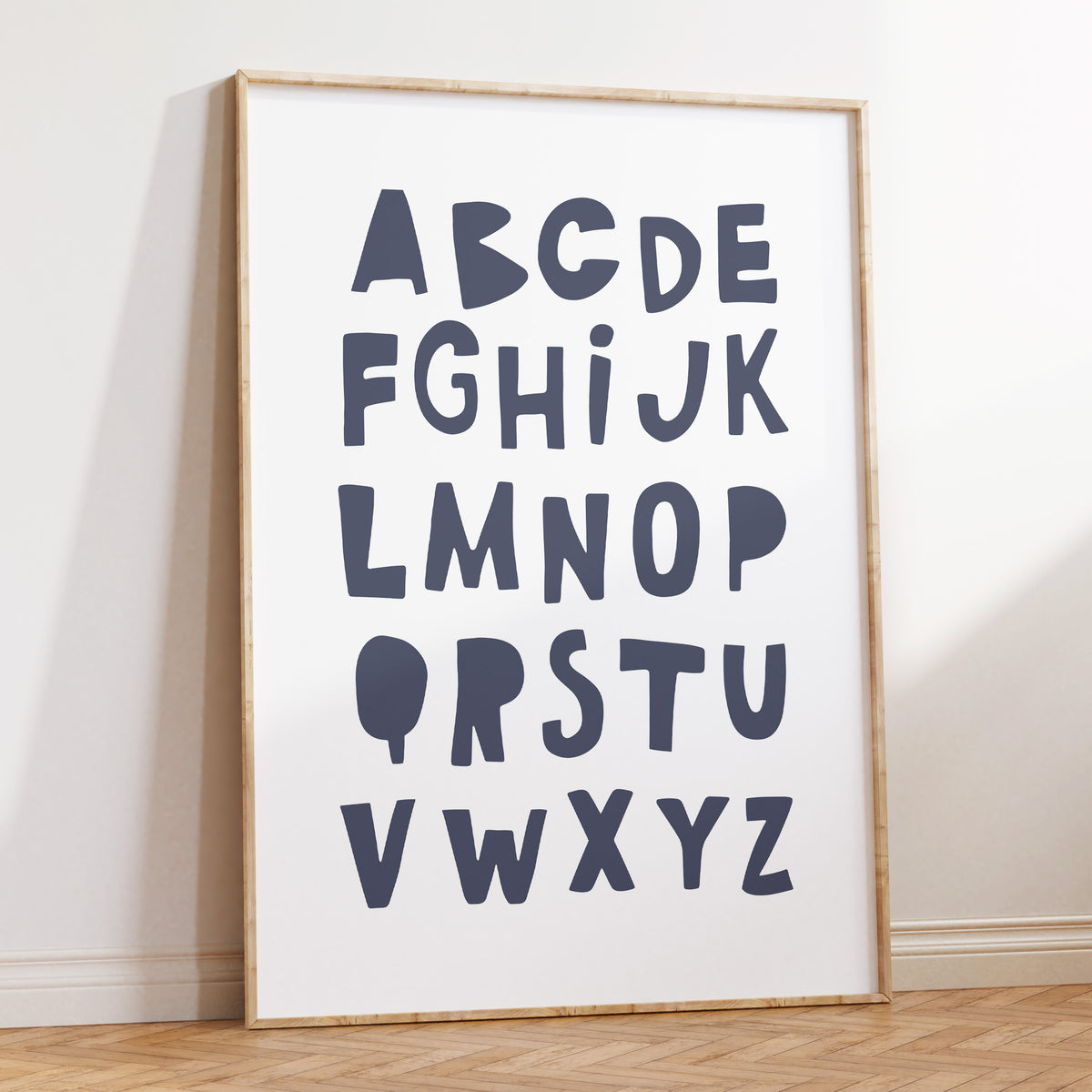 A simple educational alphabet nursery wall art print that makes the perfect addition to any nursery, bedroom or playroom décor. A perfect new baby gift, or add the finishing touch to your own child's room.