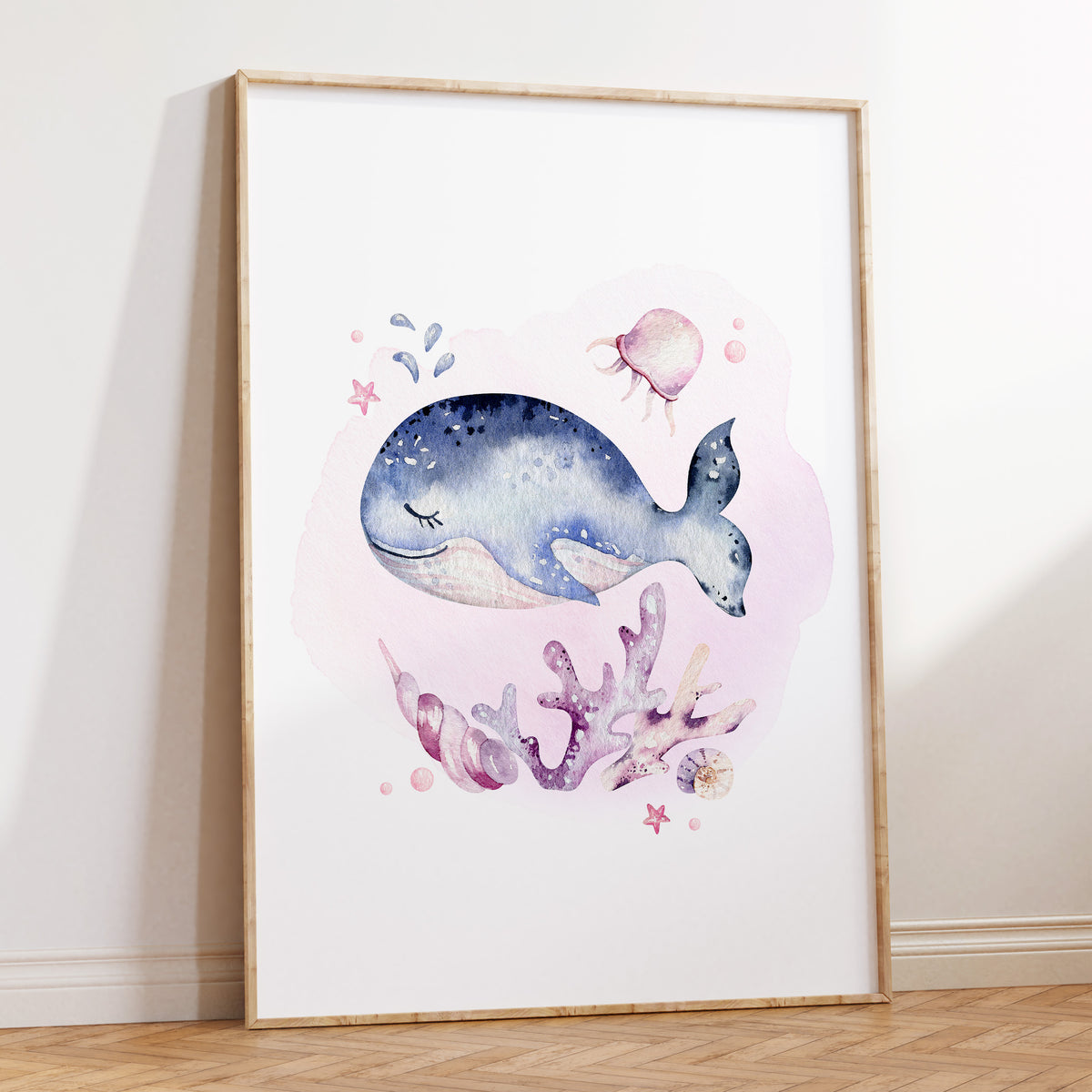 Unit price perPerfect for the ocean themed nursery, bedroom or playroom decor is this watercolour baby whale wall art print, use as a standalone piece or co-ordinate with our other under the sea prints.
