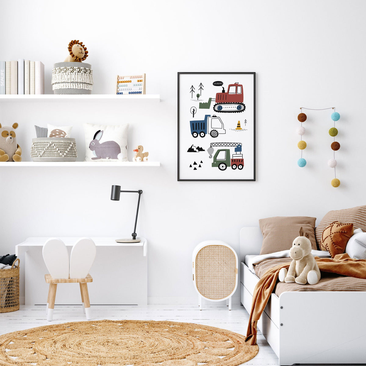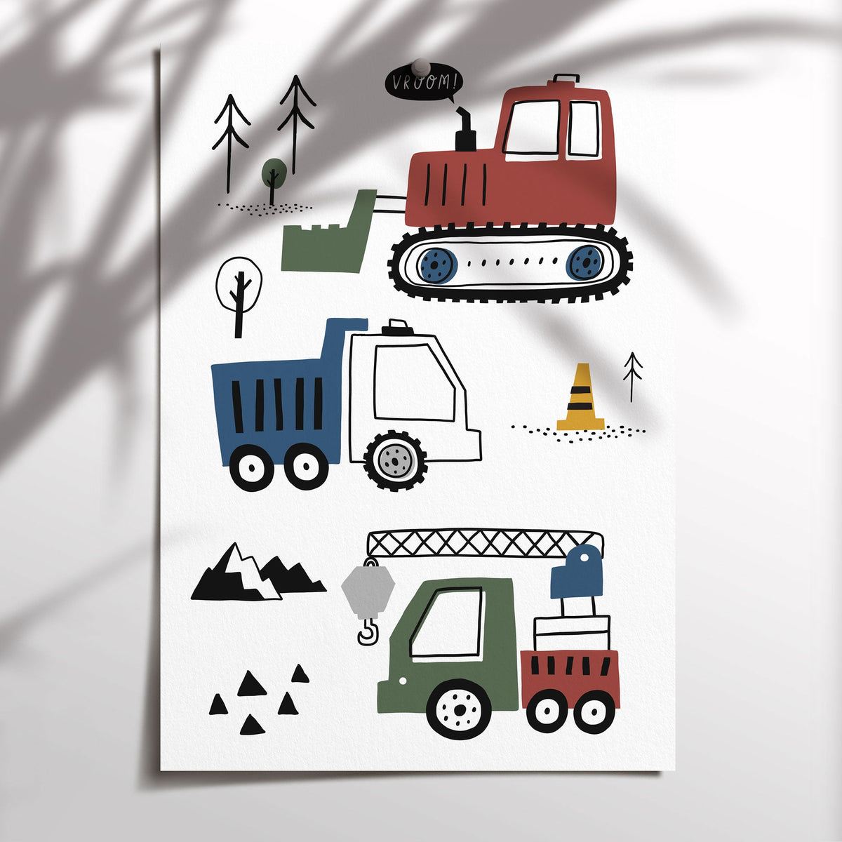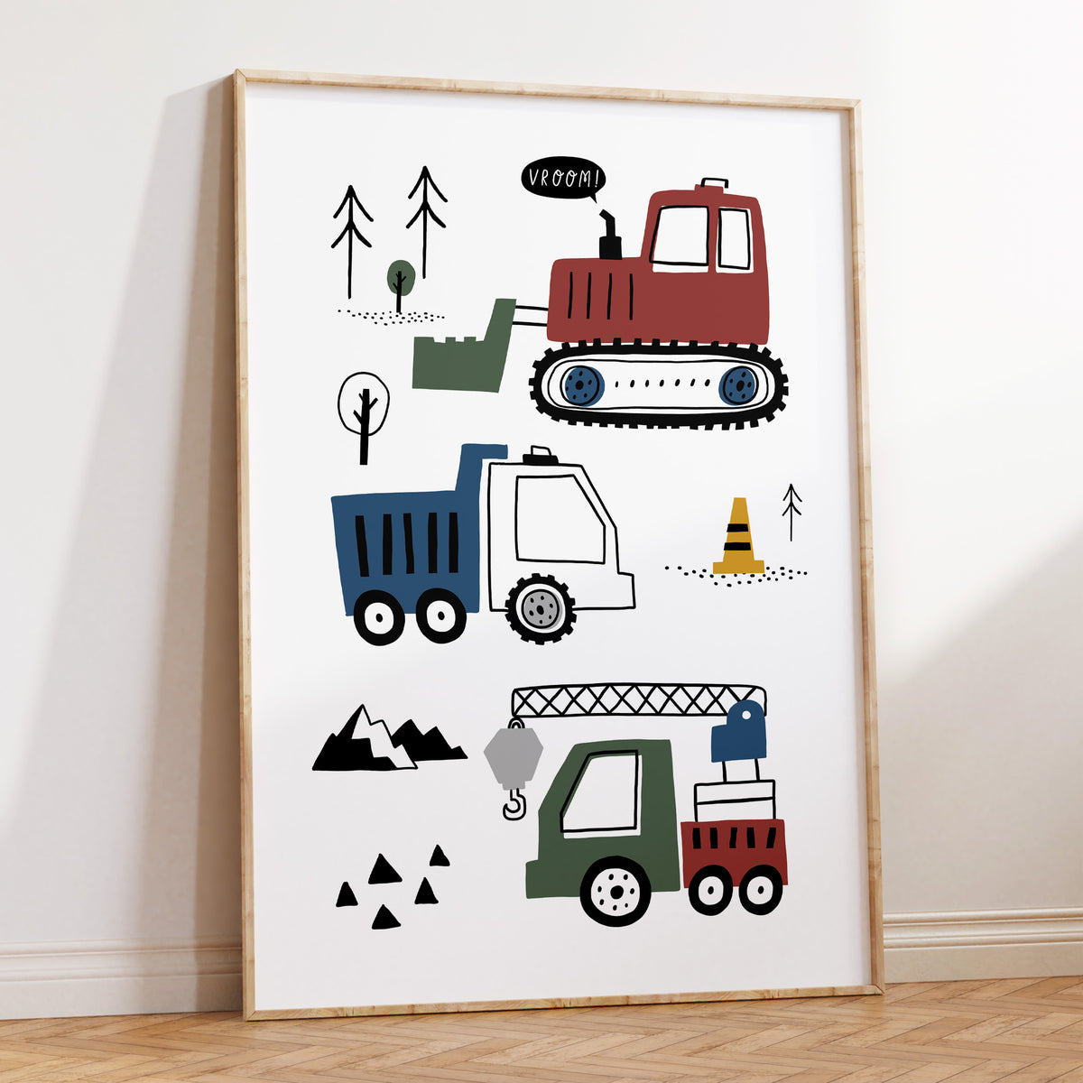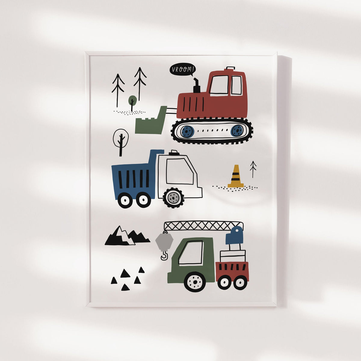 Unit price perThis fun truck construction vehicle art print, featuring a bull dozer, tipper truck, & crane makes a perfect new baby boy gift, or a great way to add the finishing touches to your own child's nursery or bedroom space.