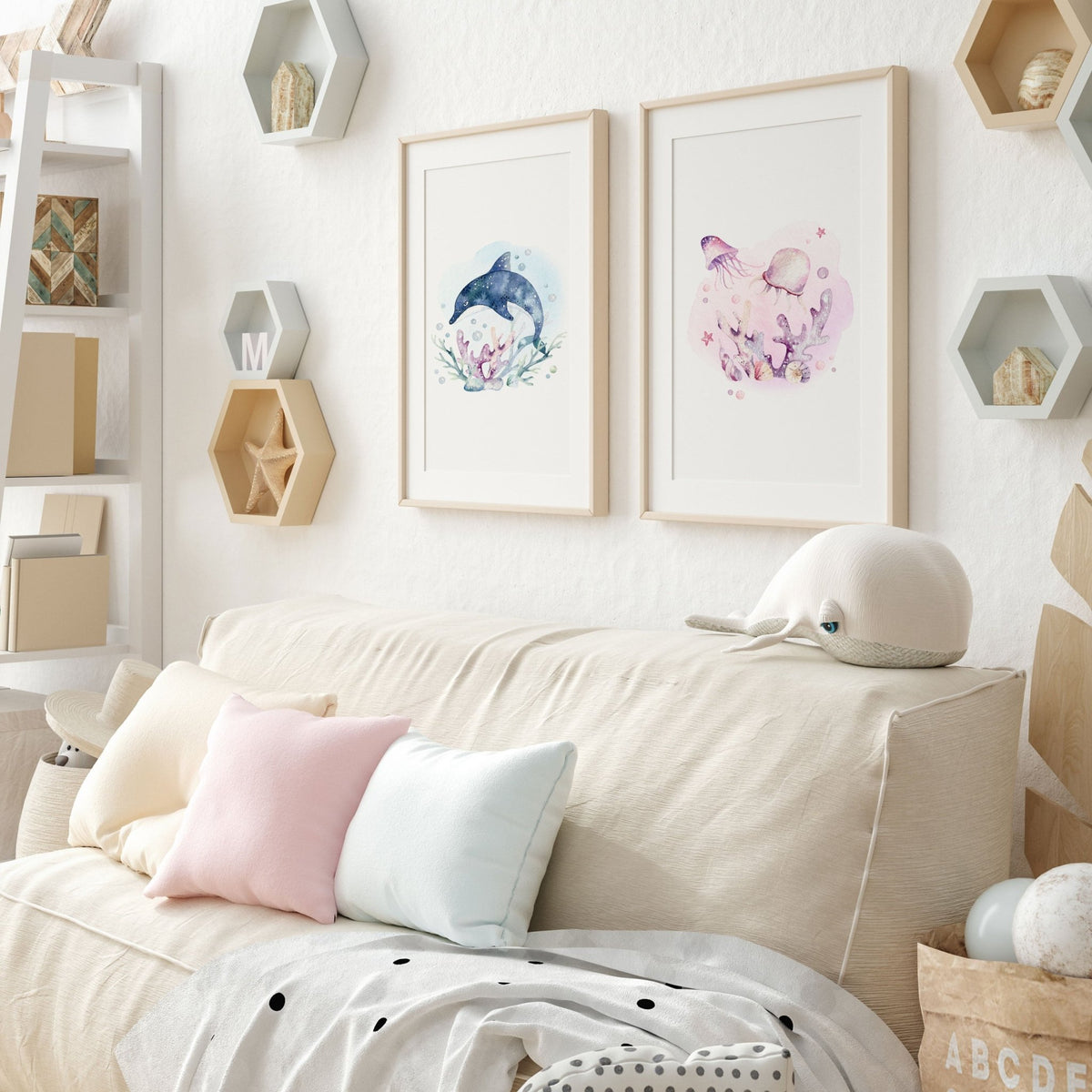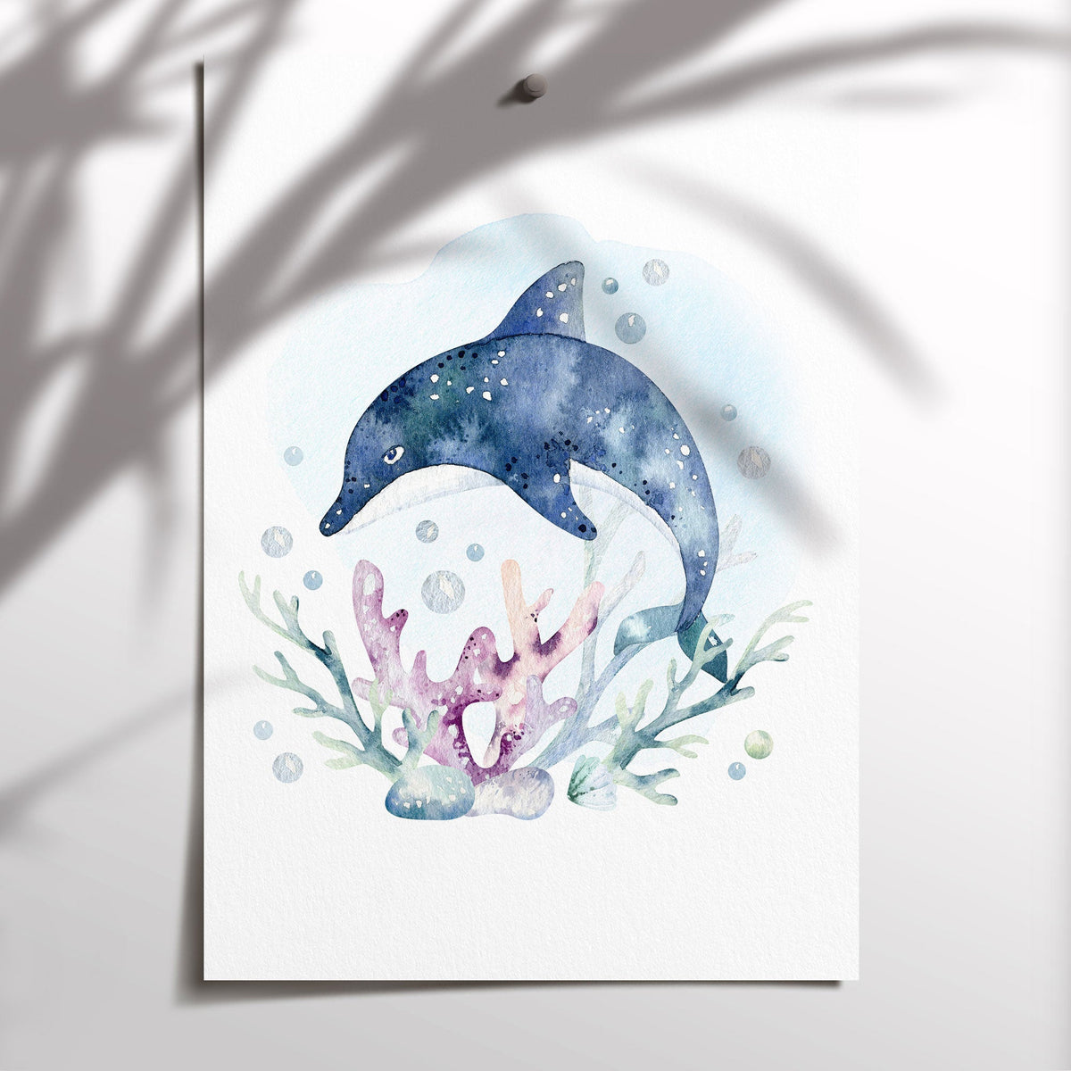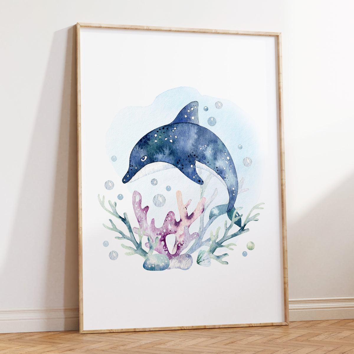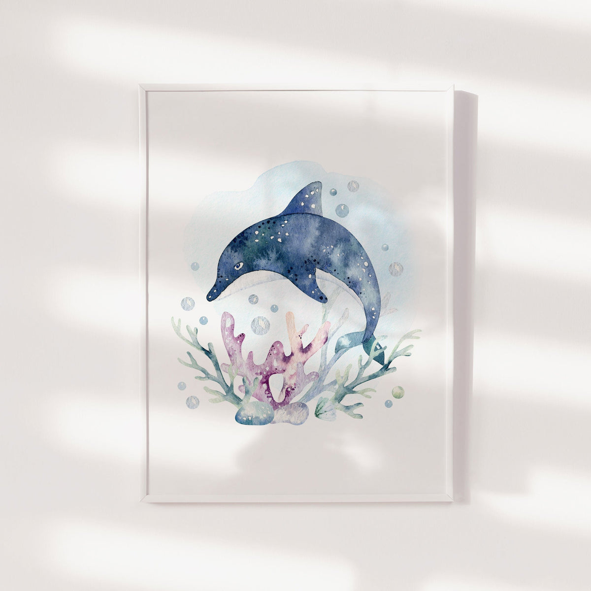 Unit price perPerfect for the ocean themed nursery, bedroom or playroom decor is this watercolour dolphin wall art print, use as a standalone piece or co-ordinate with our other under the sea prints.