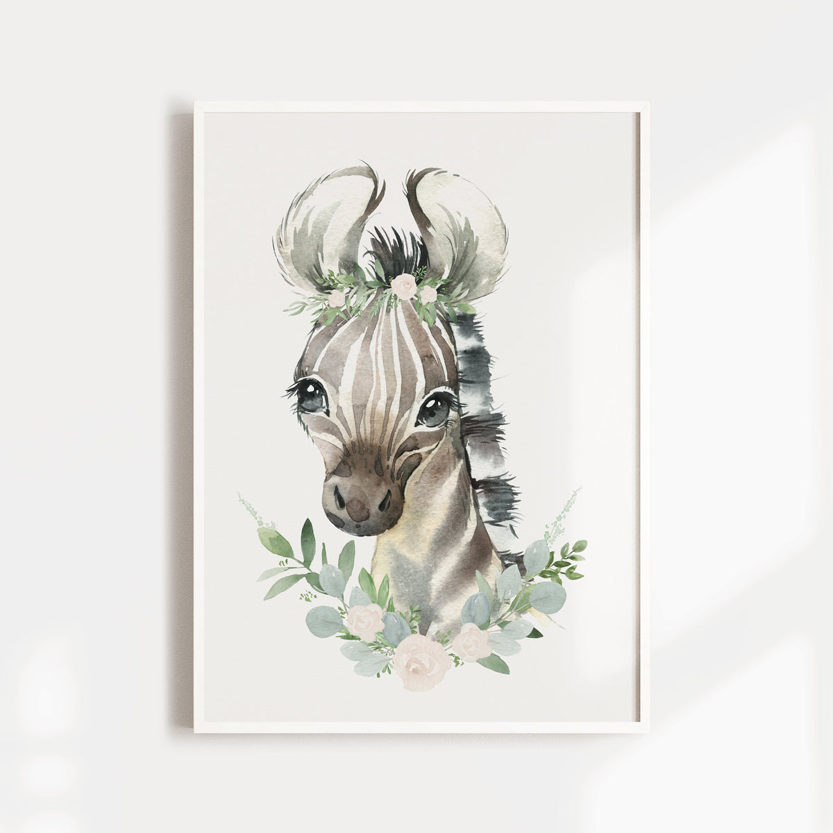 Unit price perBeautiful Floral Woodland Baby Zebra, perfect for the boho Nursery or Bedroom décor.