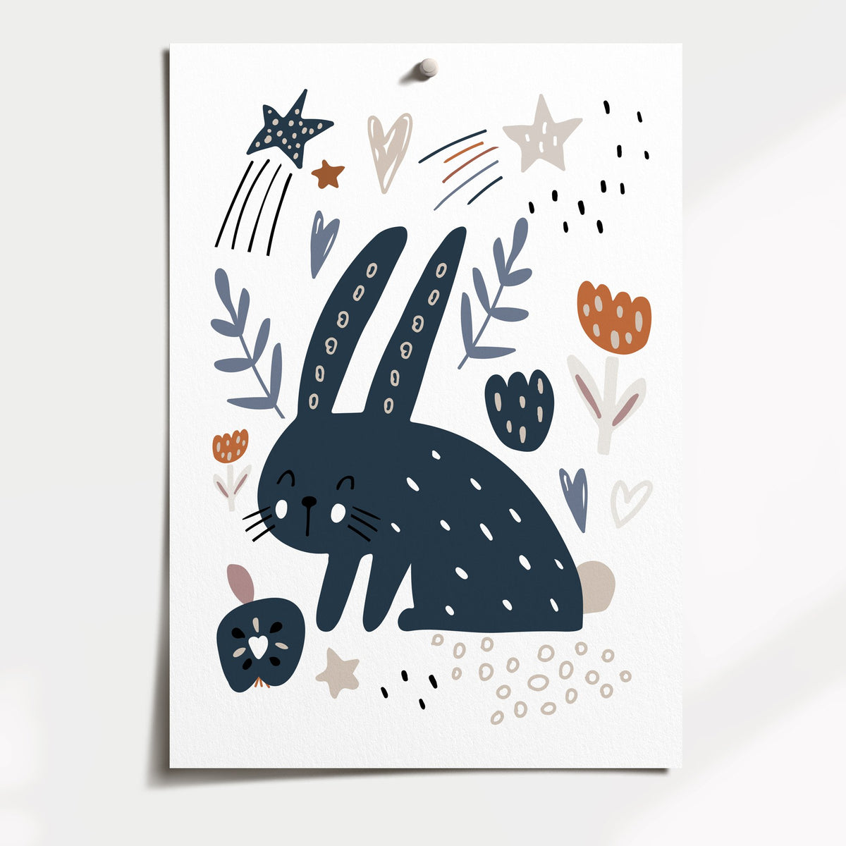 Unit price perThis fun scandi bunny nursery wall art print is perfect for the forest animal or woodland inspired bedroom décor. A perfect new baby gift, or a great way to add the finishing touches to your own child's space.