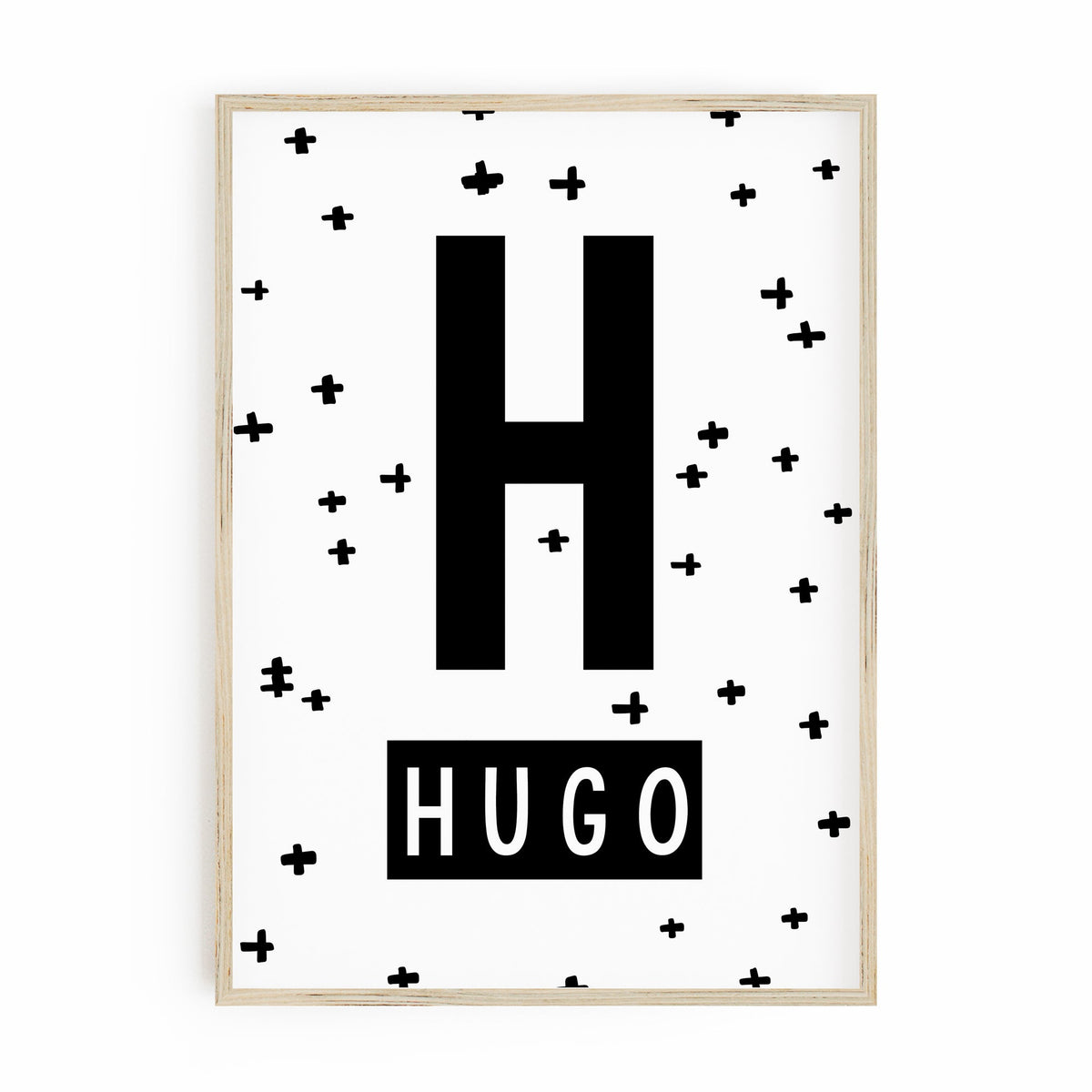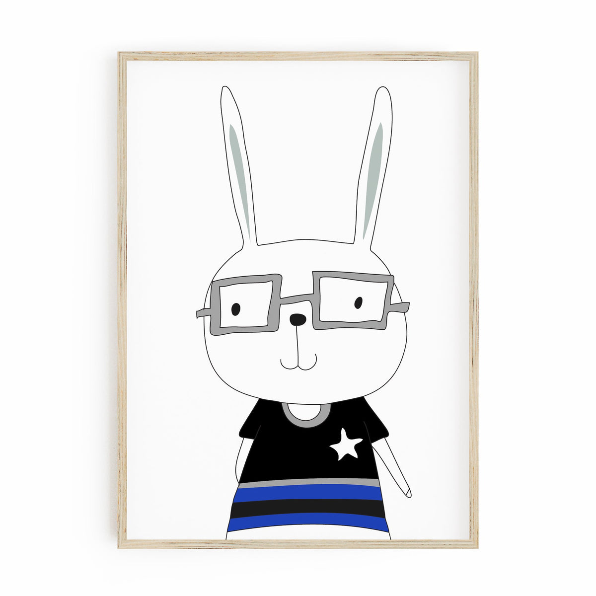 A  set of three bedroom wall art prints just for the boys. Featuring a hipster bunny, bear and monochrome personalised name and letter print.