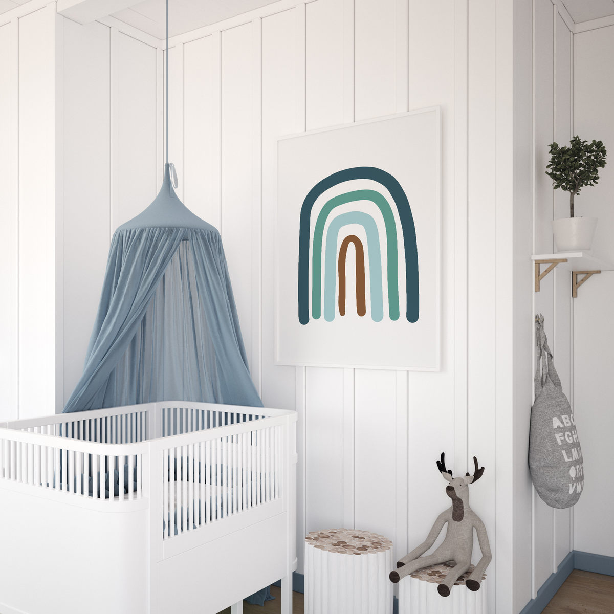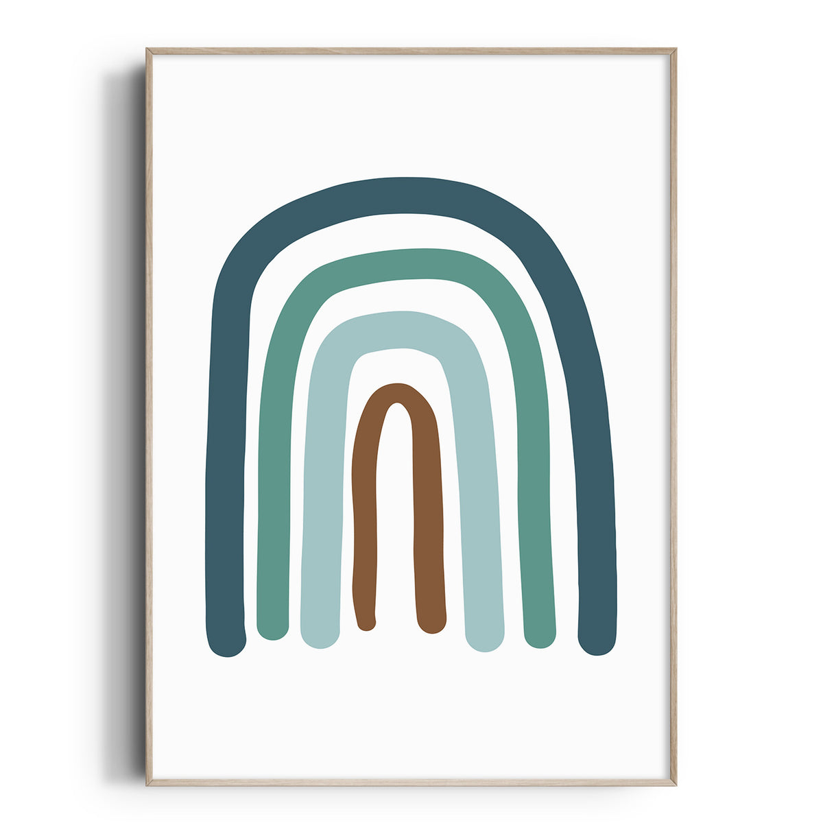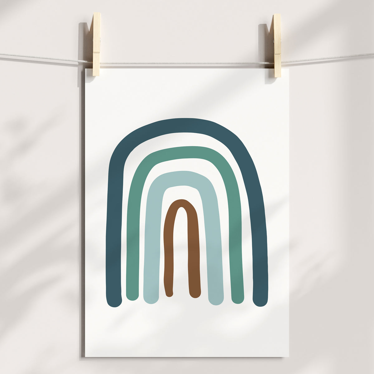 Unit price perThe perfect print for the modern nursery, bedroom or playroom, this scandi inspired rainbow art print features green, blues brown, suitable for boys and girls rooms of any age. Also makes a great new baby gift.
