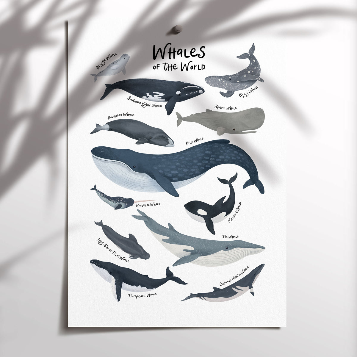 Unit price perPerfect for the ocean or under the sea themed nursery, bedroom or playroom decor is this whales of the world print, use as a standalone piece or co-ordinate with our other under the sea prints.