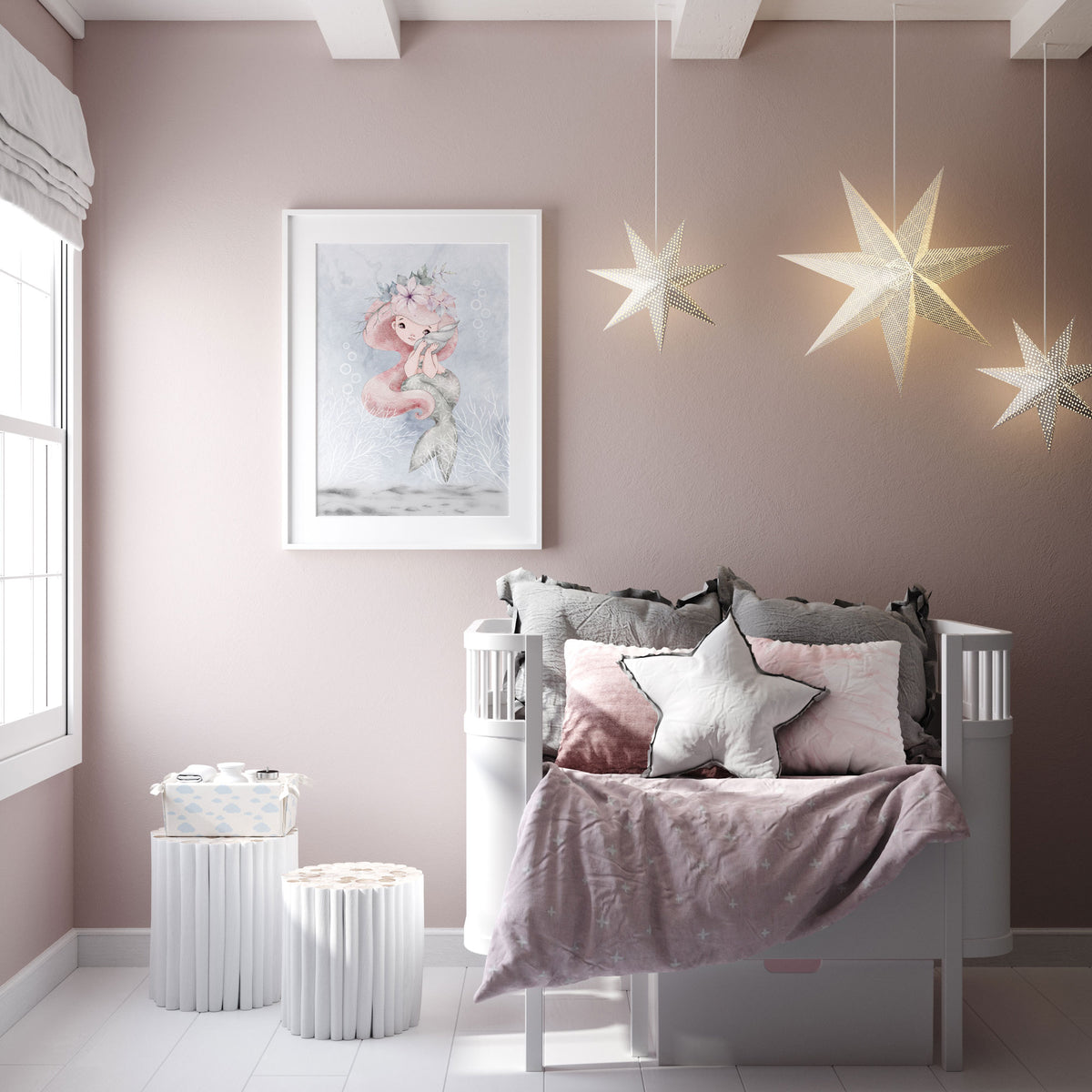 Unit price perPerfect for the mermaid, ocean or sea themed nursery, bedroom or playroom decor is this watercolour mermaid wall art print, use as a standalone piece or co-ordinate with our other co-ordinating prints.