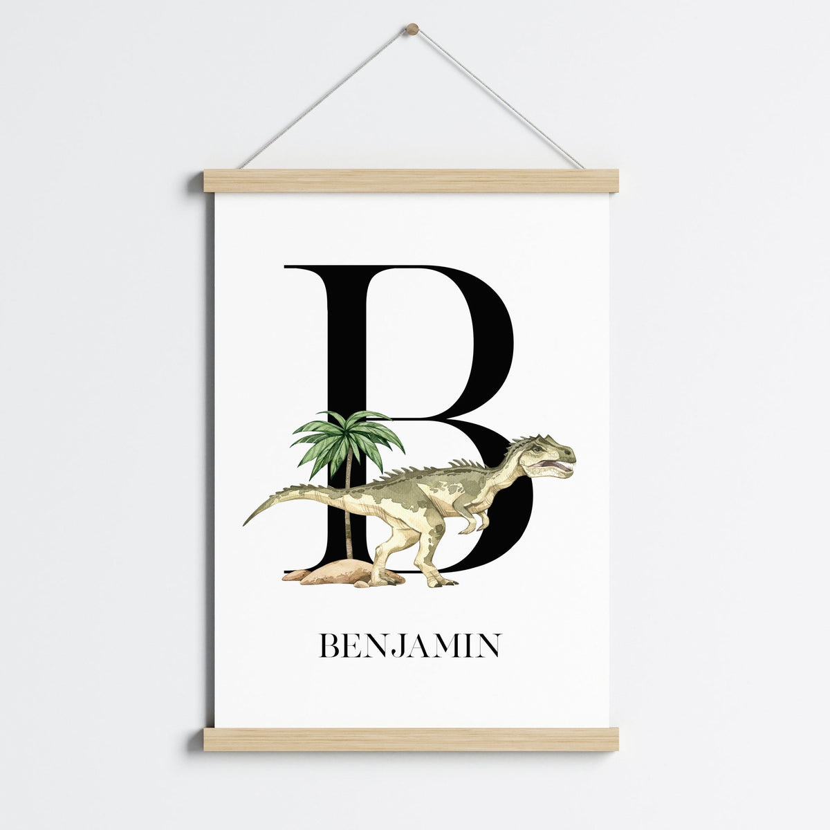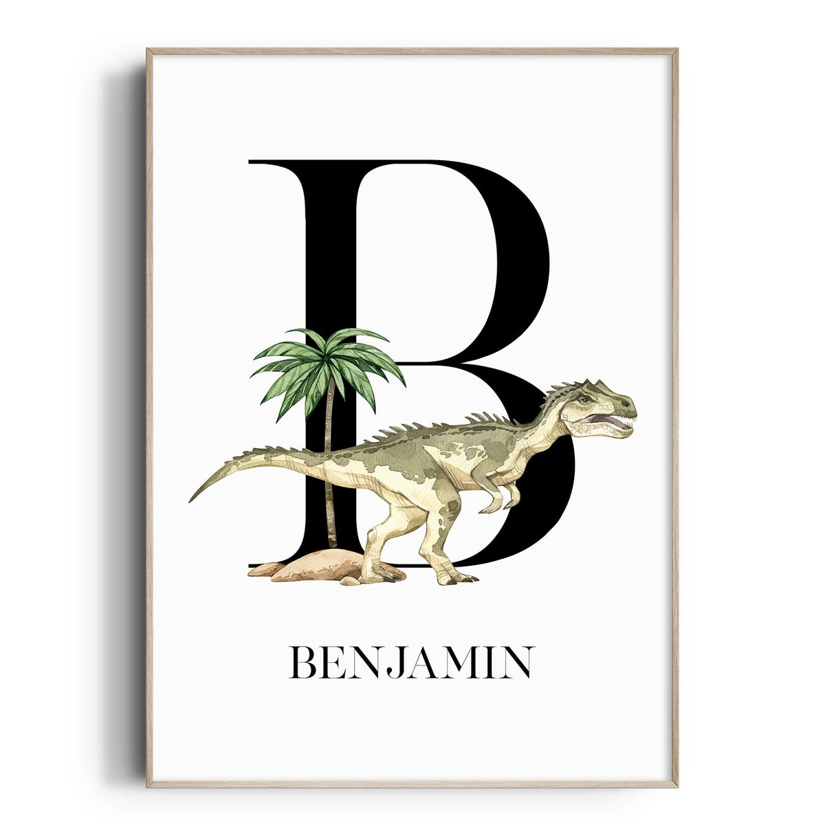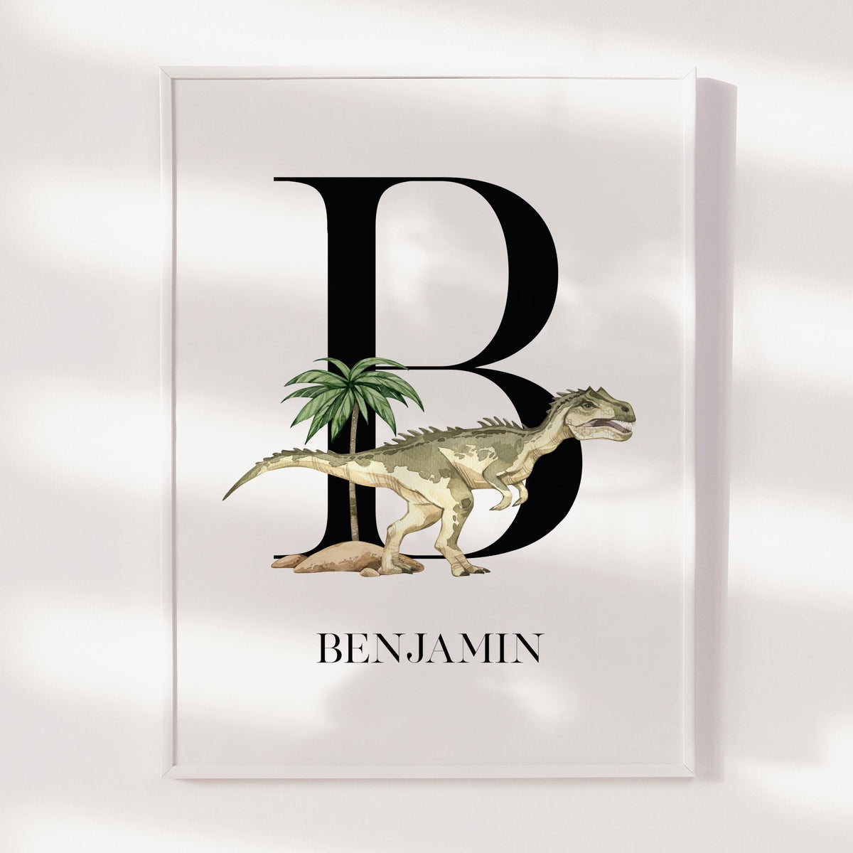 Unit price perThe perfect addition to the prehistoric themed nursery, bedroom or playroom decor is this personalised dinosaur name wall art print featuring a prehistoric allosaurus.