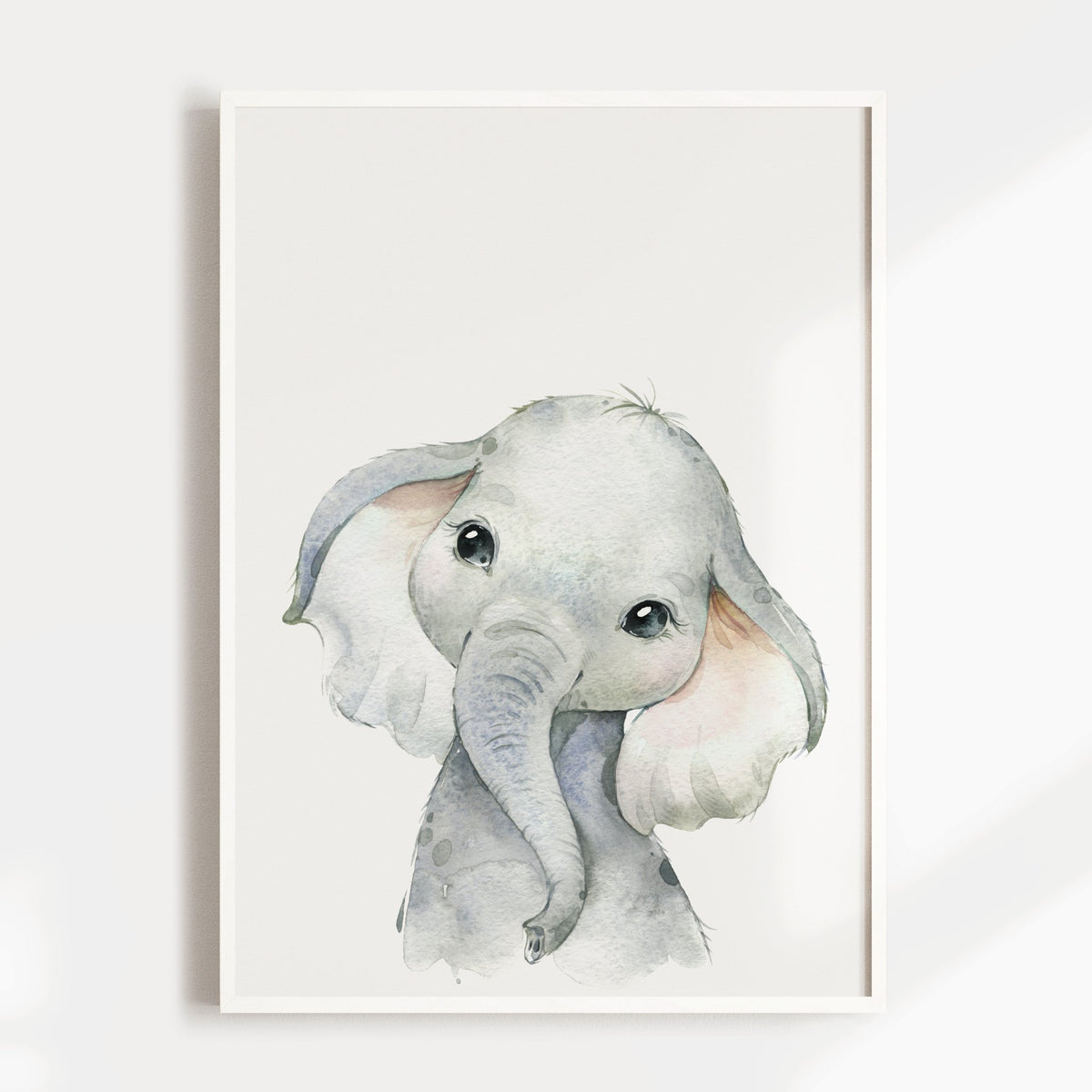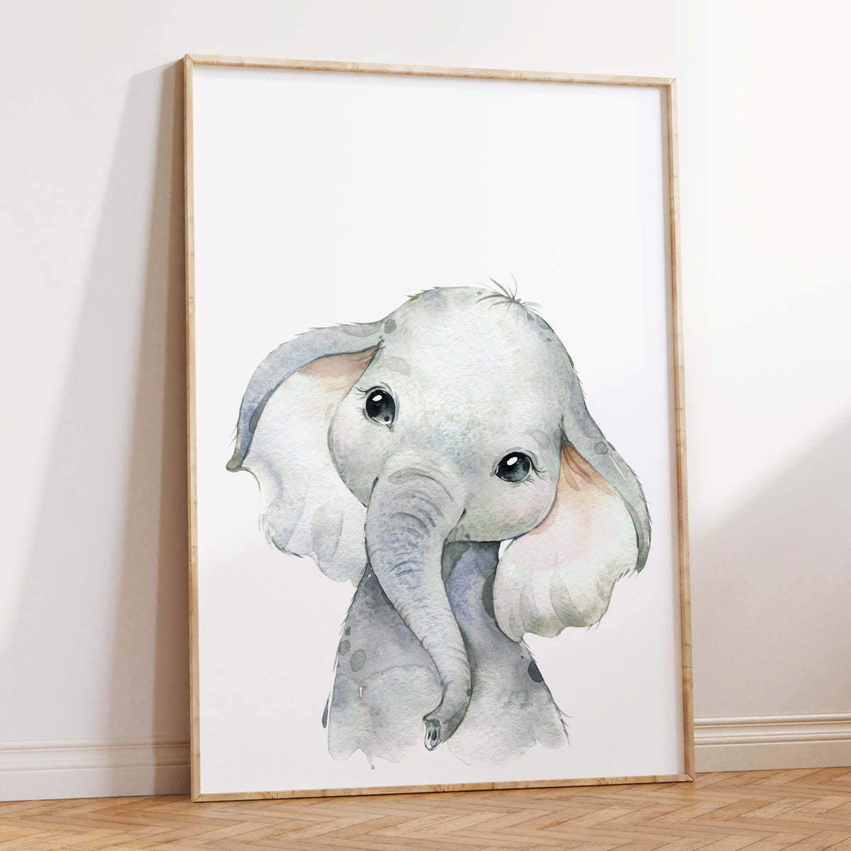 Unit price perA gender neutral baby elephant wall art print, that is perfect for the woodland, jungle or safari nursery and bedroom decor. A perfect new baby gift that can be mixed with our other animal prints in this collection.