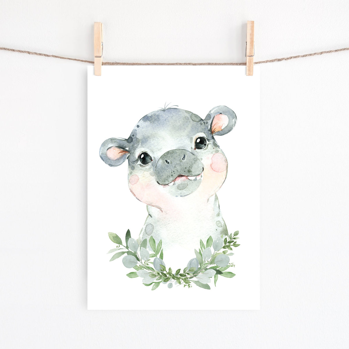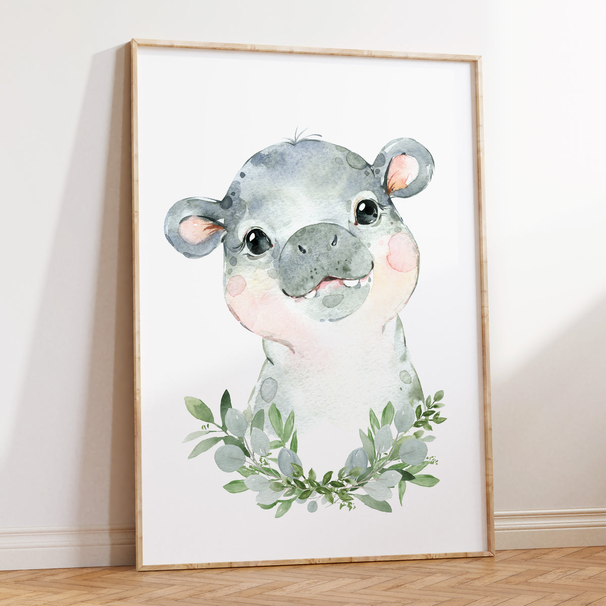 Unit price perThis watercolour baby hippo wall art, would make a lovely addition to a nursery, child's bedroom, or playroom. Pair it with one of our many other baby safari animal prints or use as a stand alone statement.