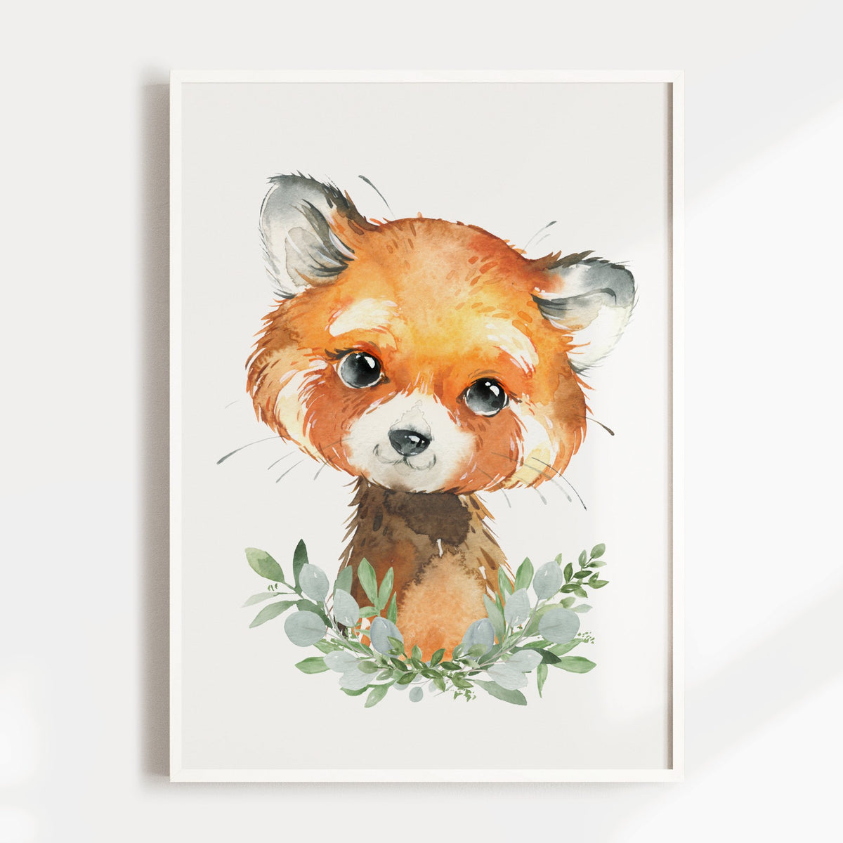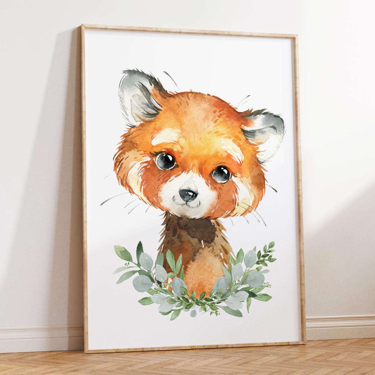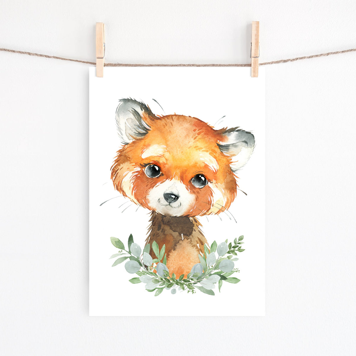 Unit price perThis watercolour baby red panda wall art, would make a lovely addition to a nursery, child's bedroom, or playroom. Pair it with one of our many other baby safari animal prints or use as a stand alone statement.