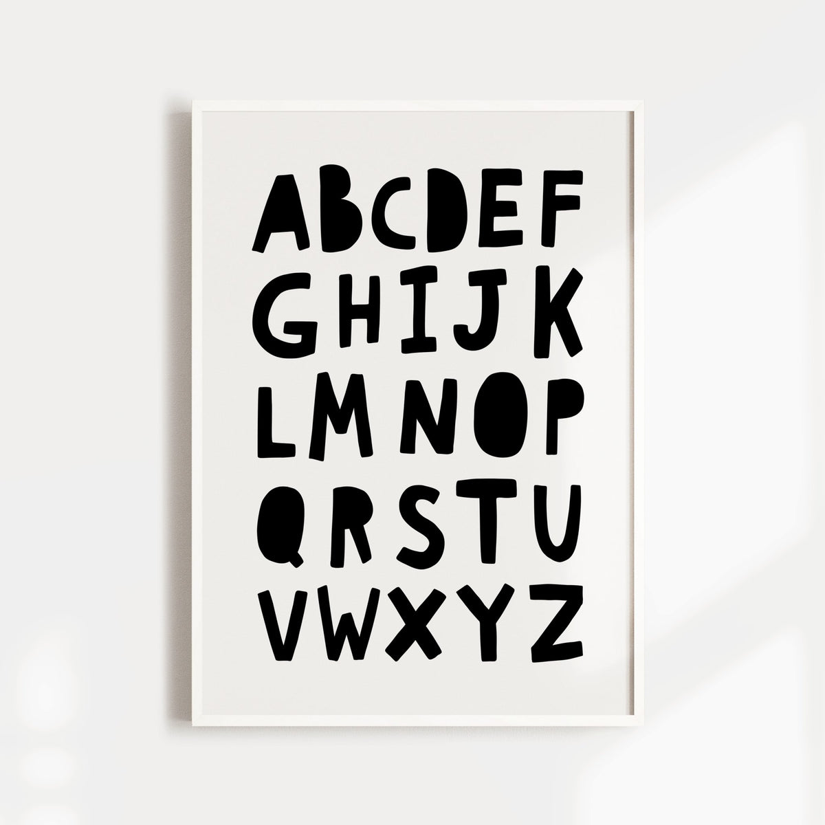 A set of three scandi, inspired bedroom wall art prints just for the boys. Featuring a bunny, bear and alphabet print.