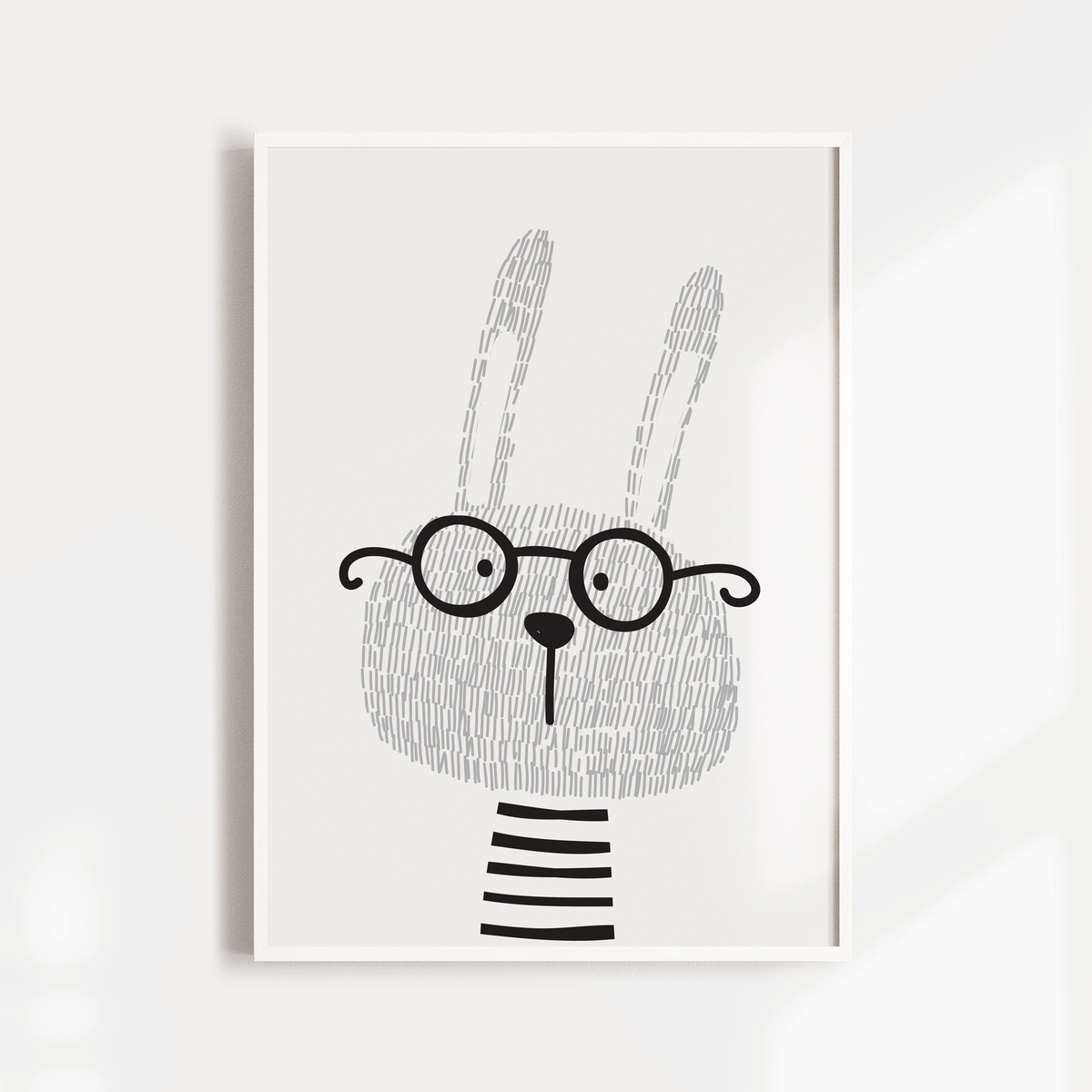 A set of three scandi, inspired bedroom wall art prints just for the boys. Featuring a lion, bunny and monochrome personalised name and letter print.