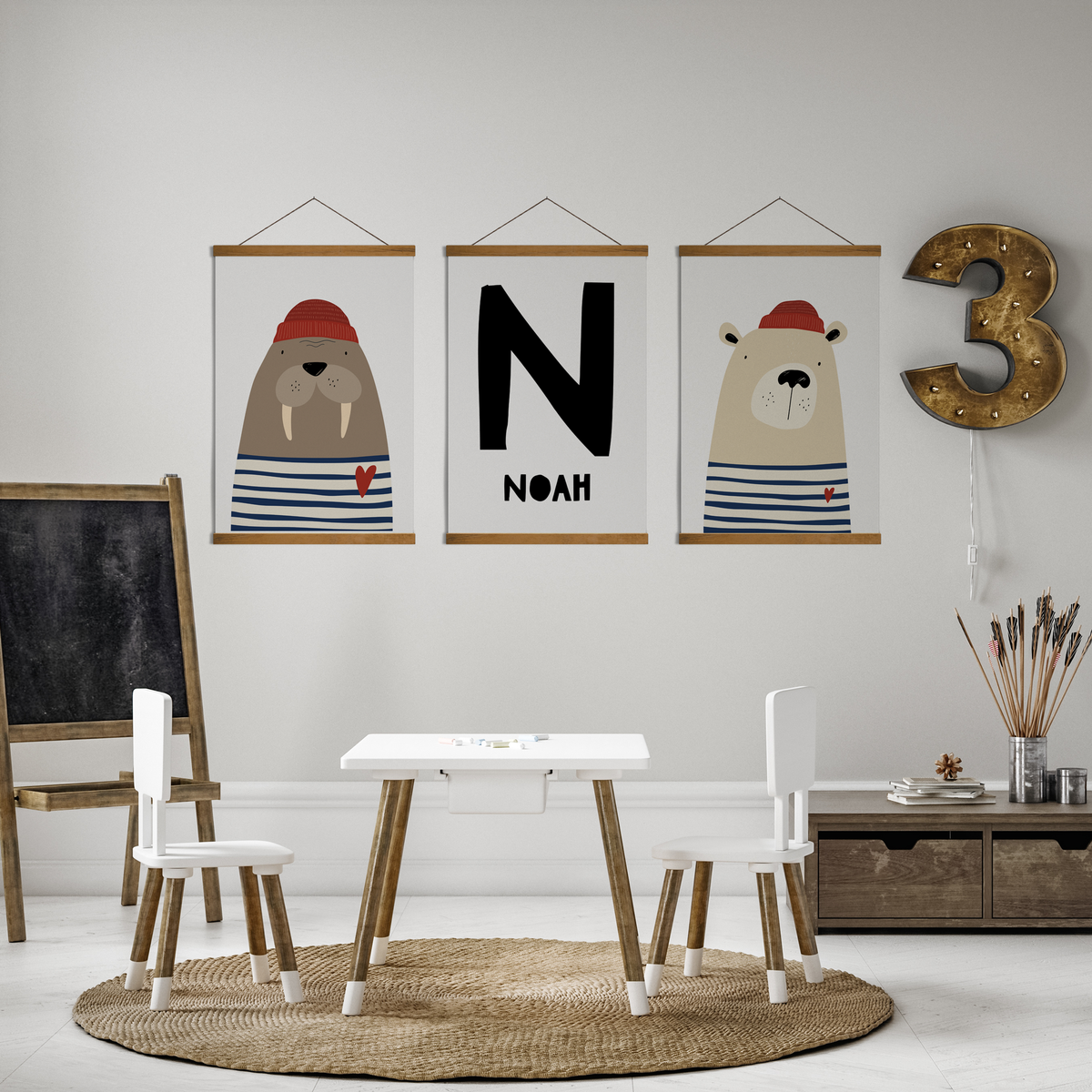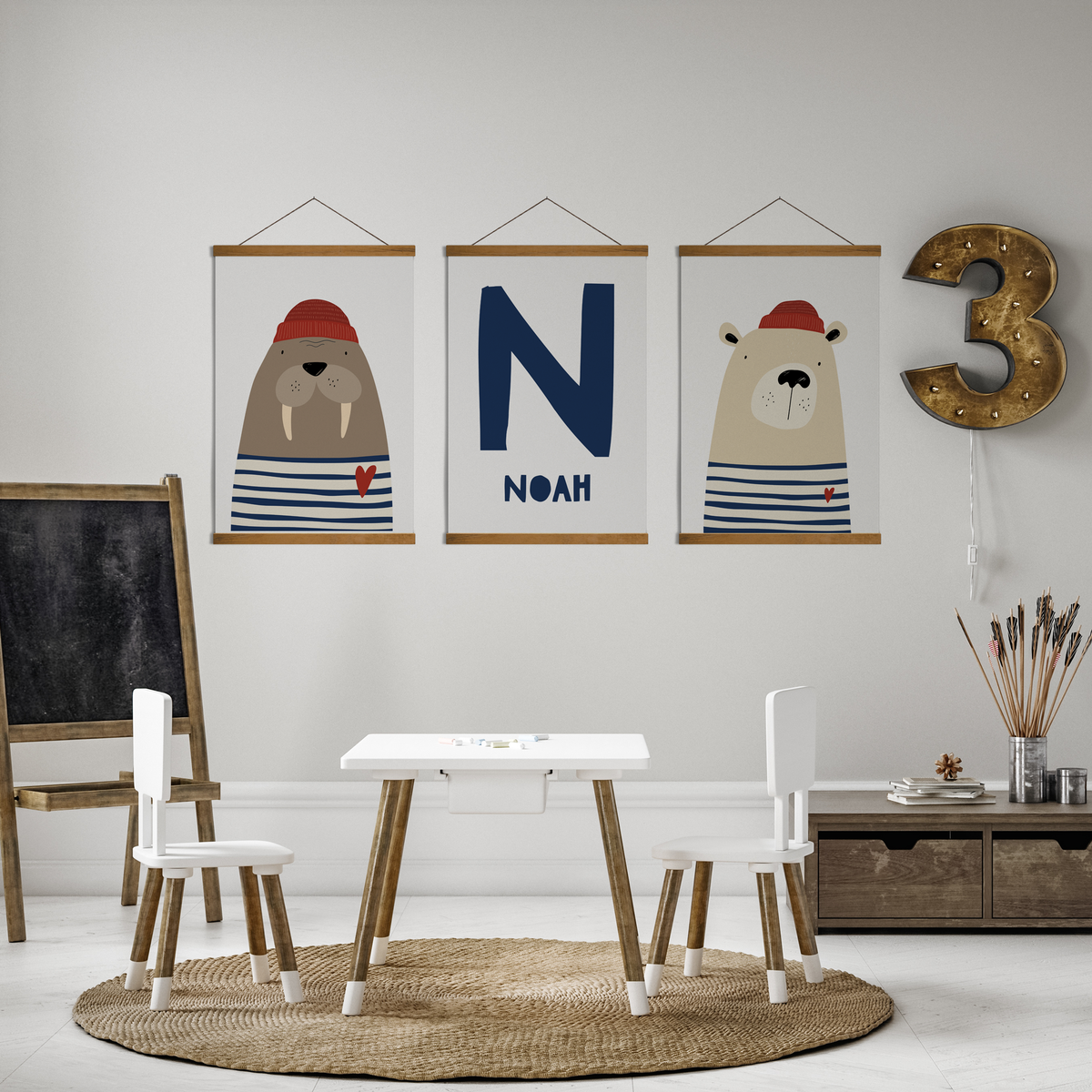 Walrus, Bear & Name Prints