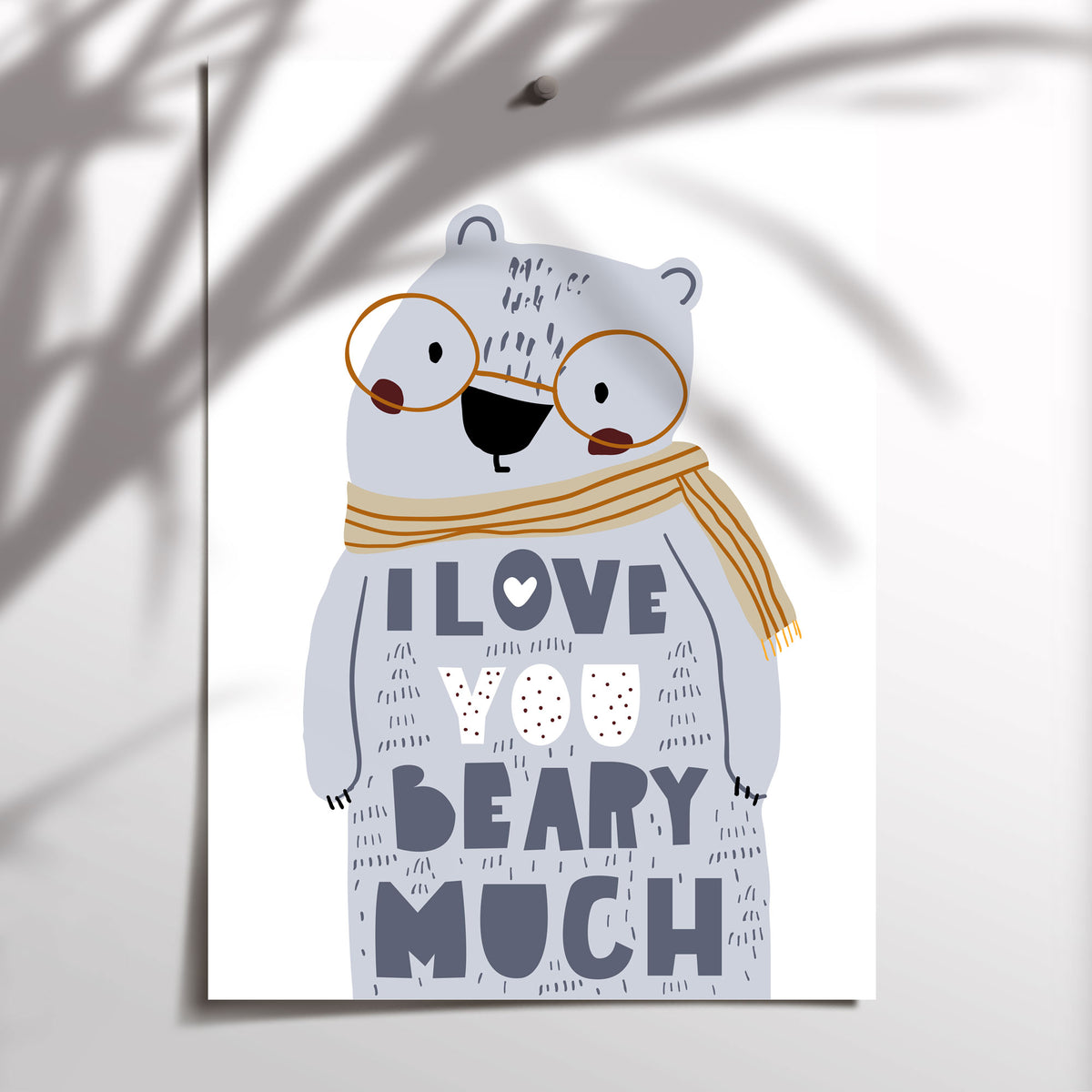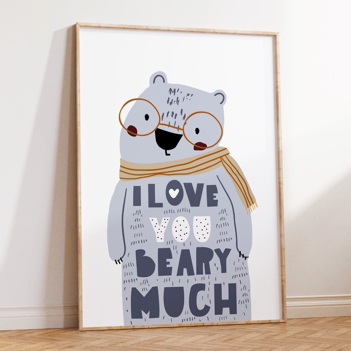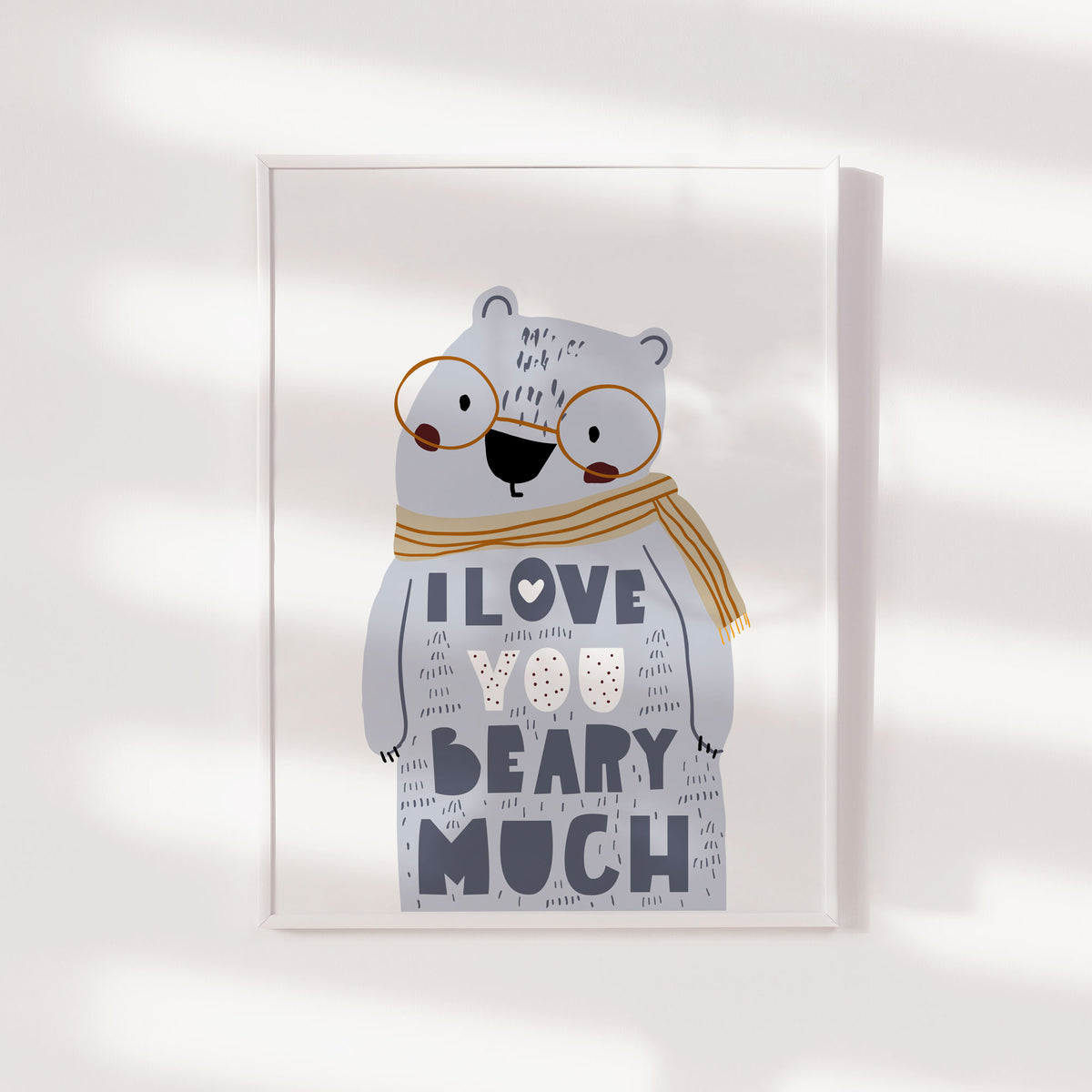 Unit price perFeaturing neutral blue tones our inchesI love you beary muchinches wall art print is perfect for the woodland or forest themed nursery, bedroom or playroom decor. Use as a standalone piece or pair with other co-ordinating prints.