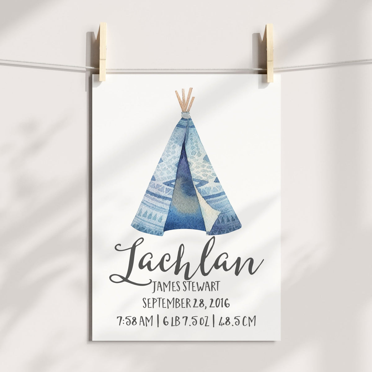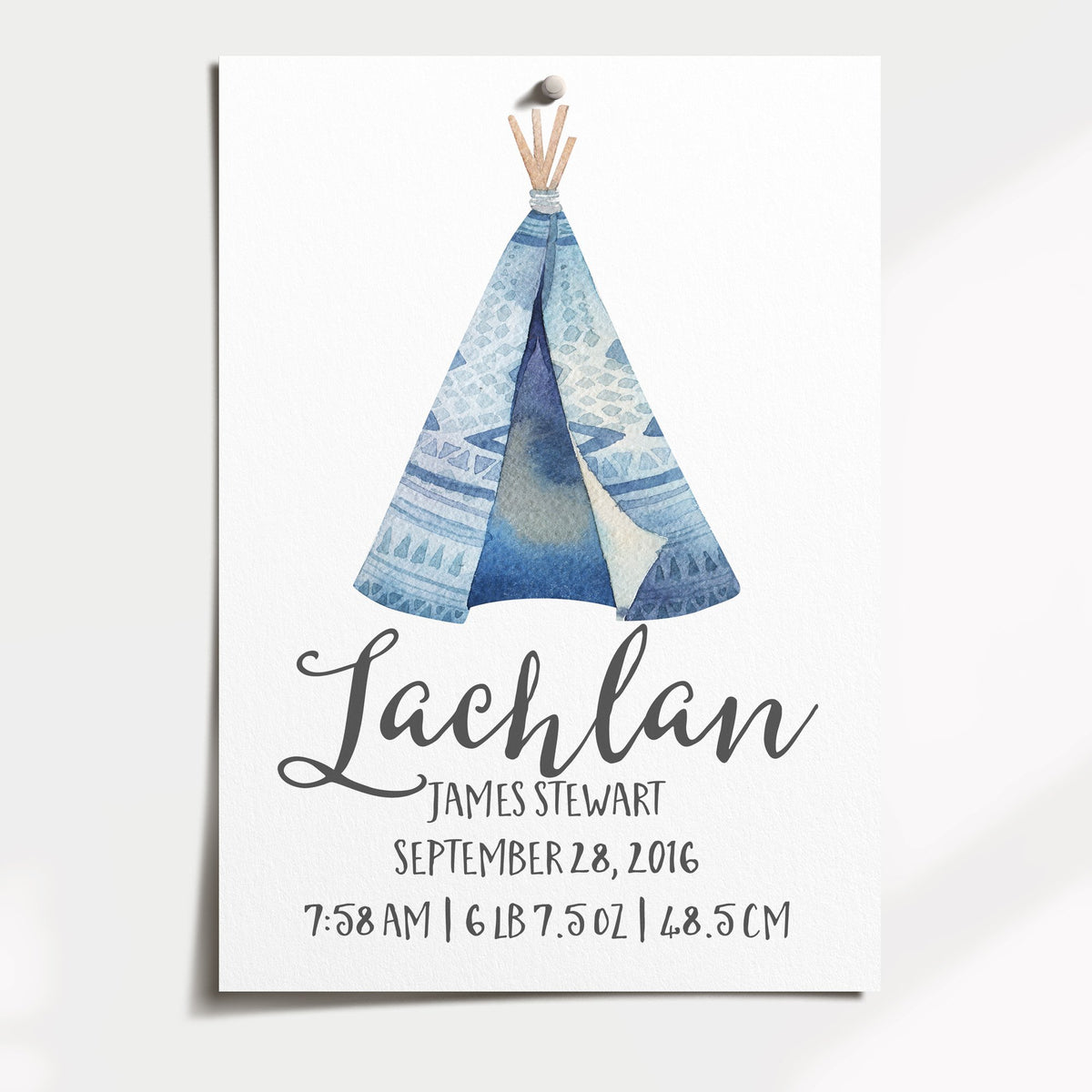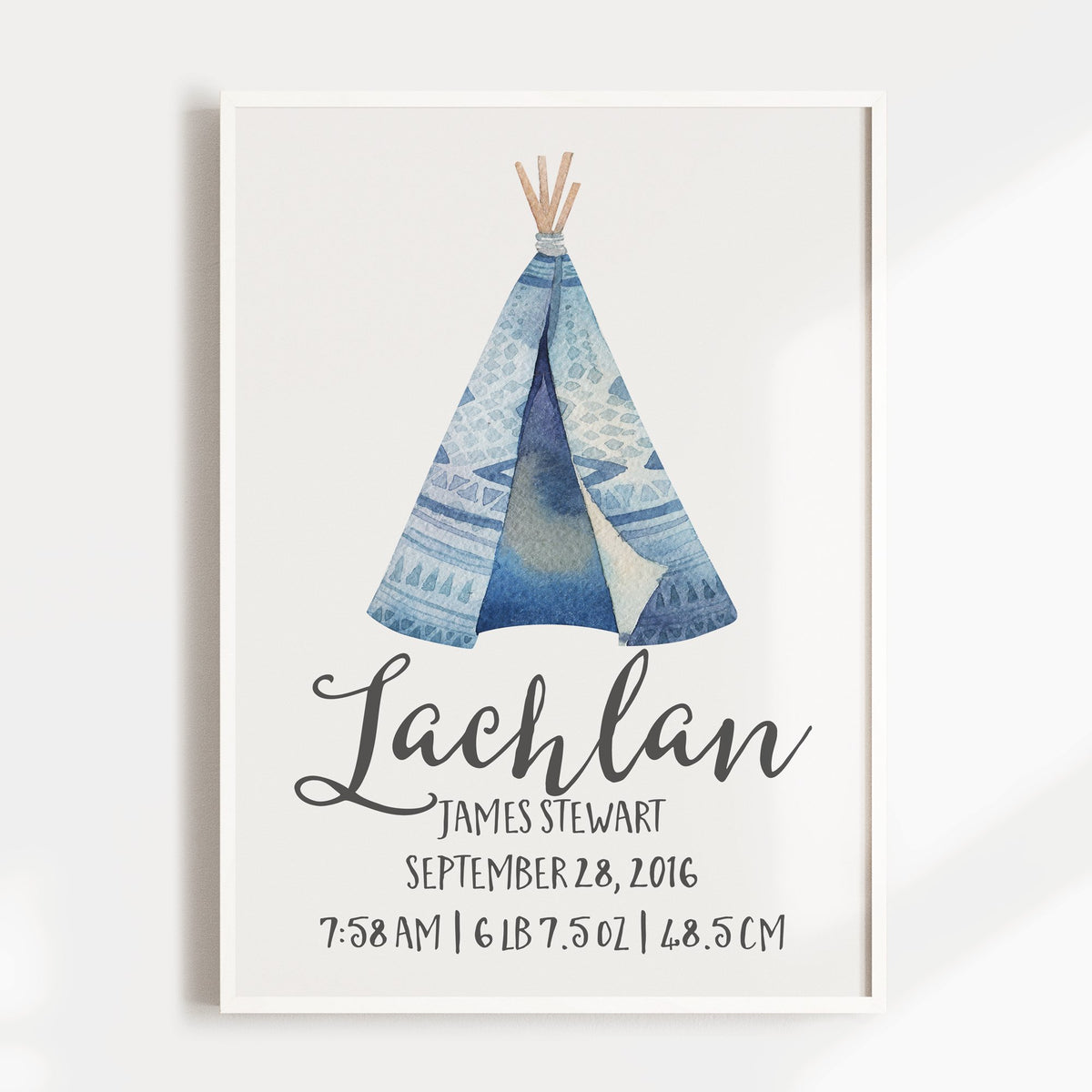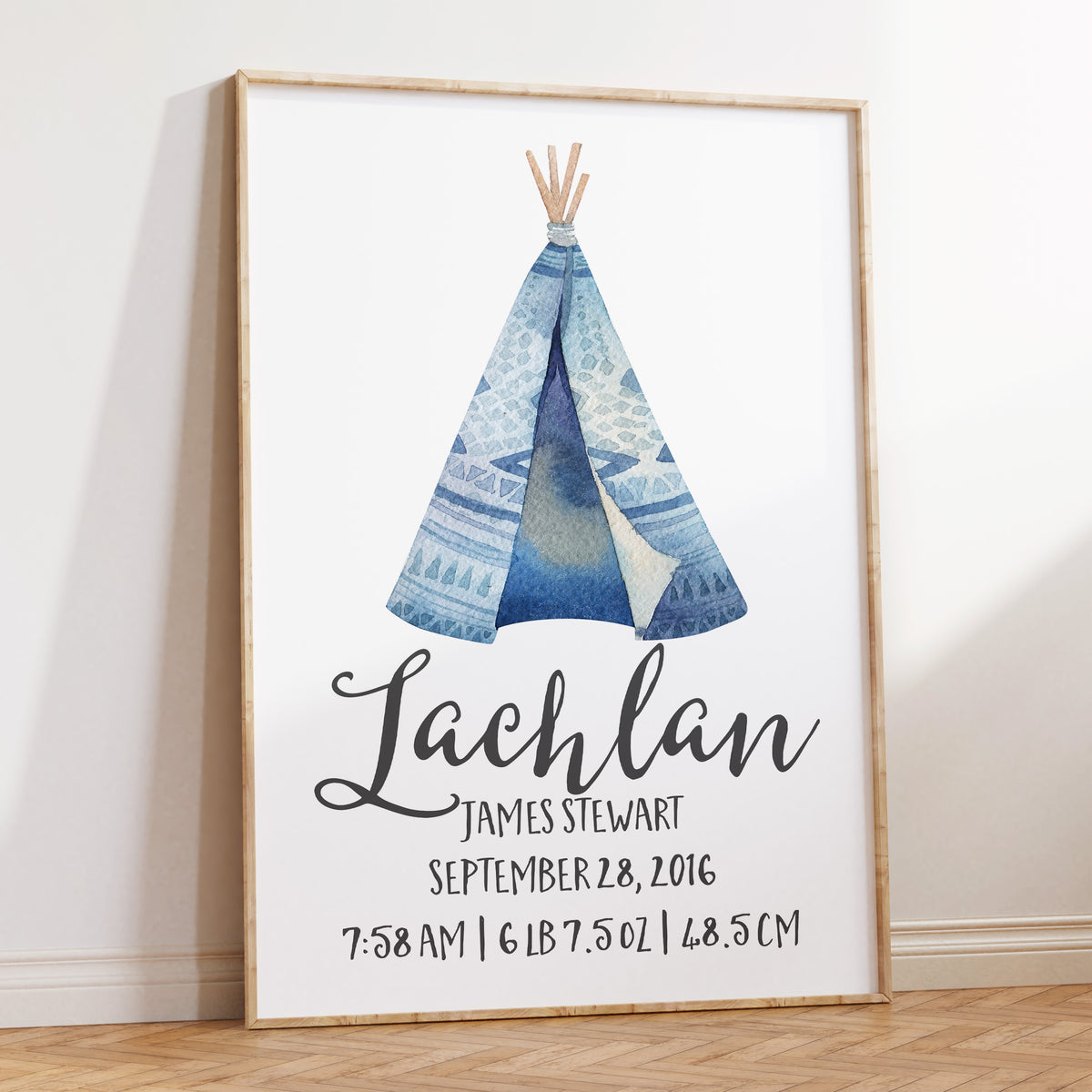 Blue Woodland Teepee Birth Print