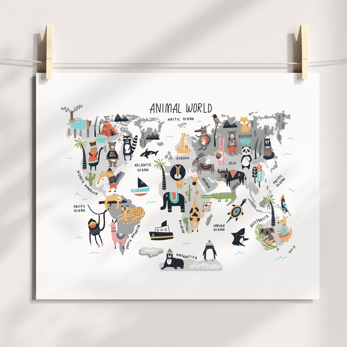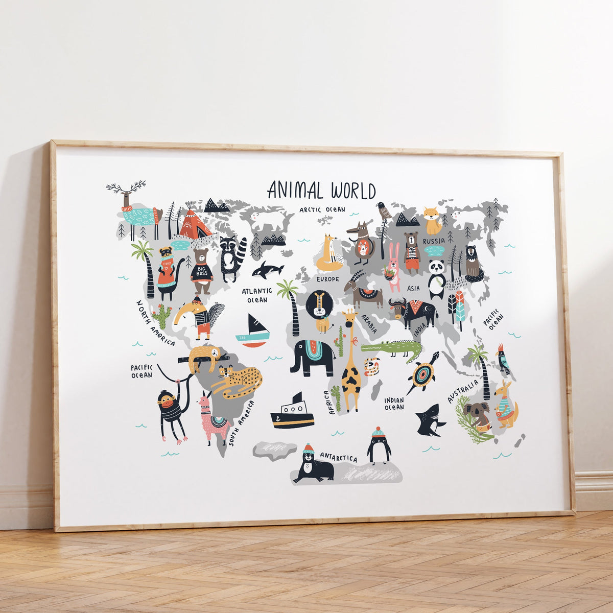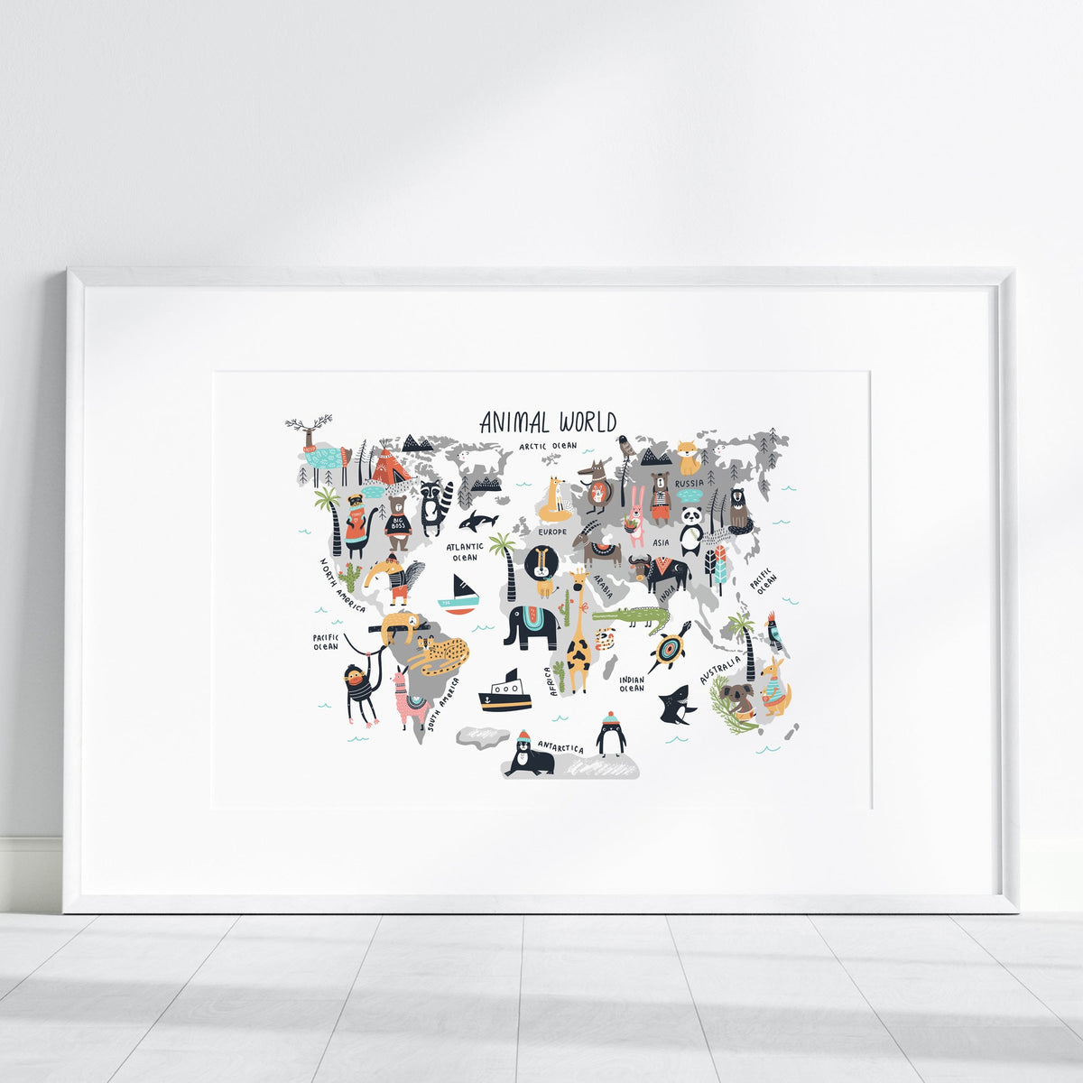 Unit price perThis fun animal world map poster is perfect for the modern nursery, playroom or children's bedroom décor. A perfect new baby gift, or a great way to create a statement and add the finishing touches to your own child's space.