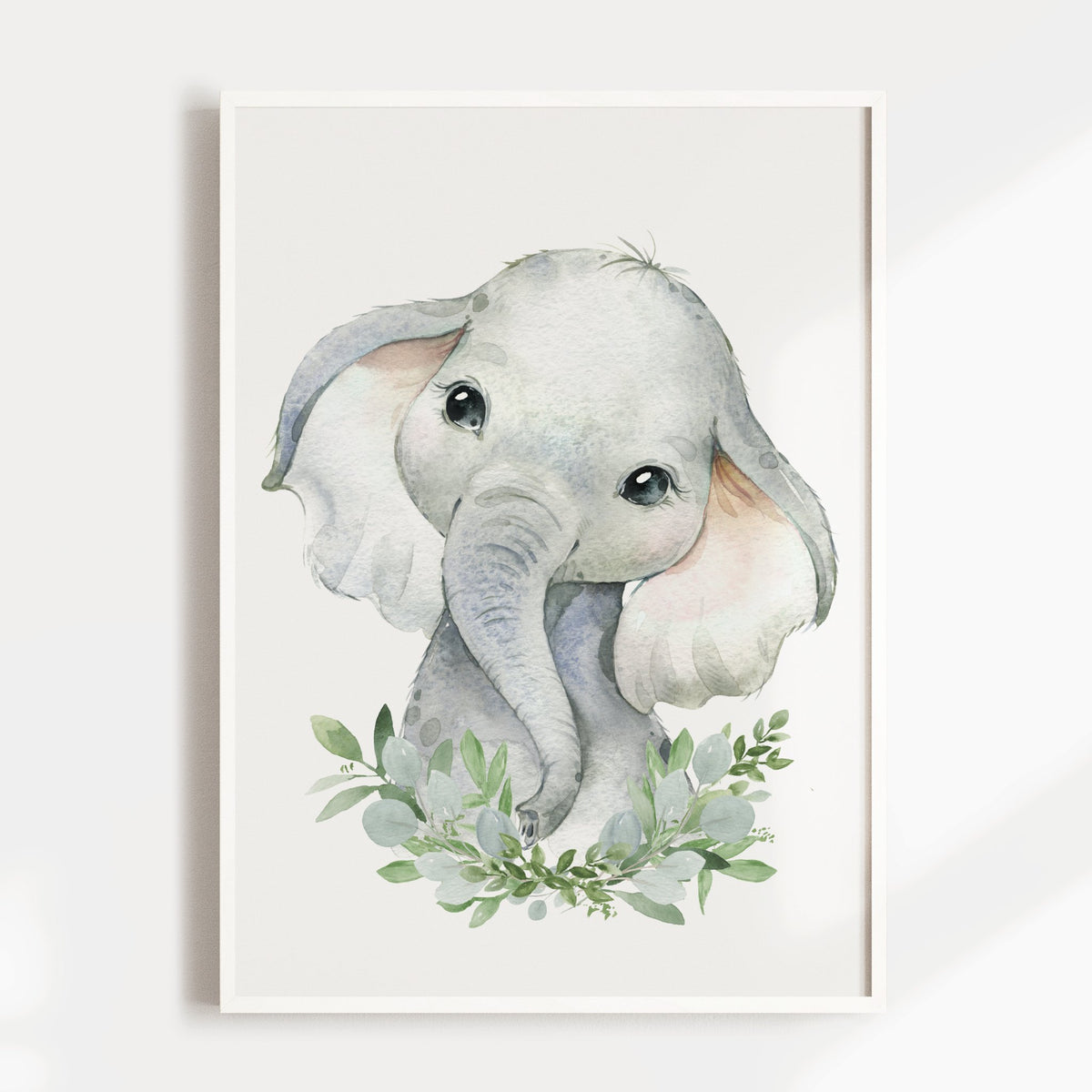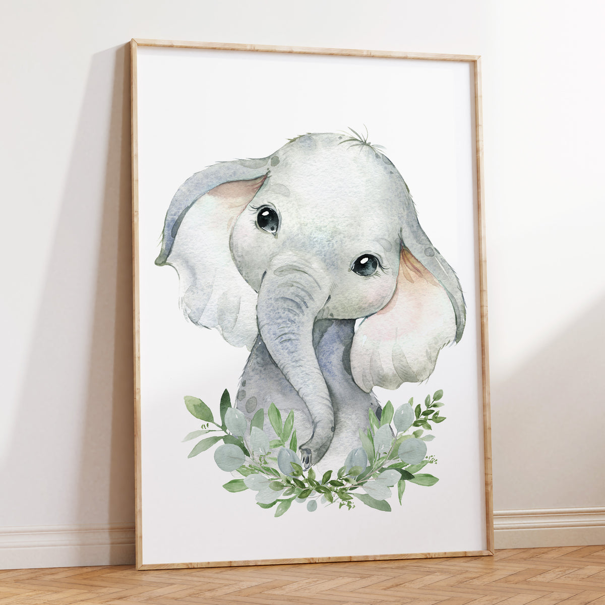 Unit price perThis watercolour baby elephant wall art, would make a lovely addition to a nursery, child's bedroom, or playroom. Pair it with one of our many other baby safari animal prints or use as a stand alone statement.