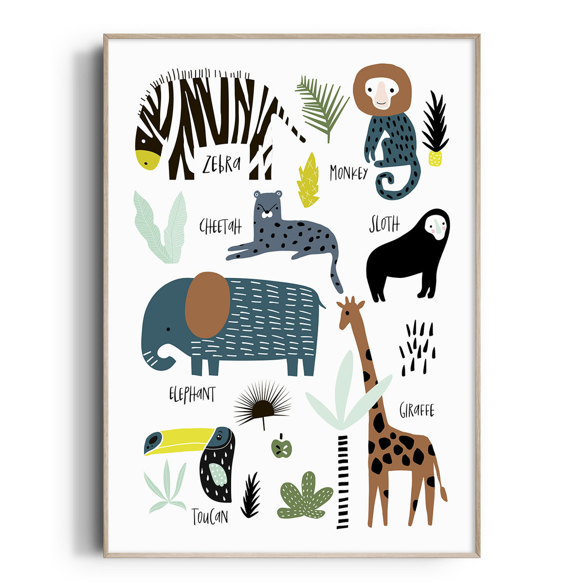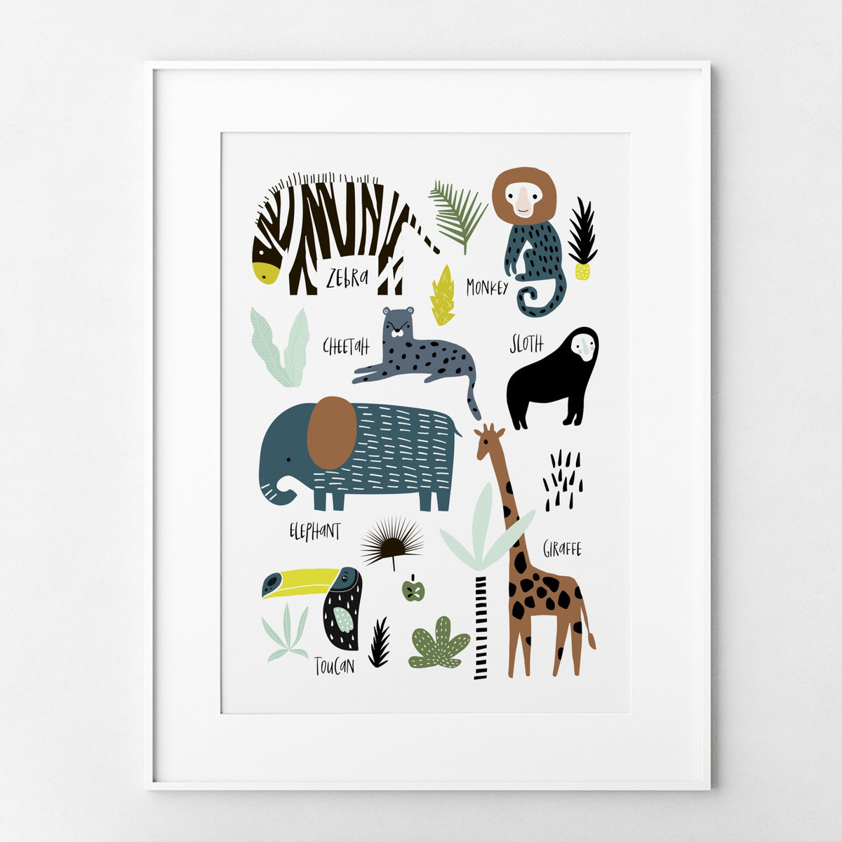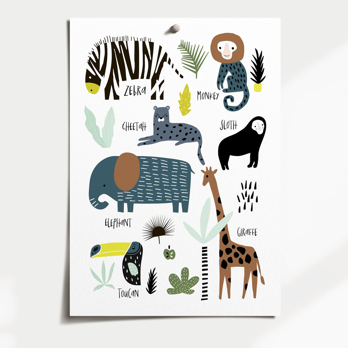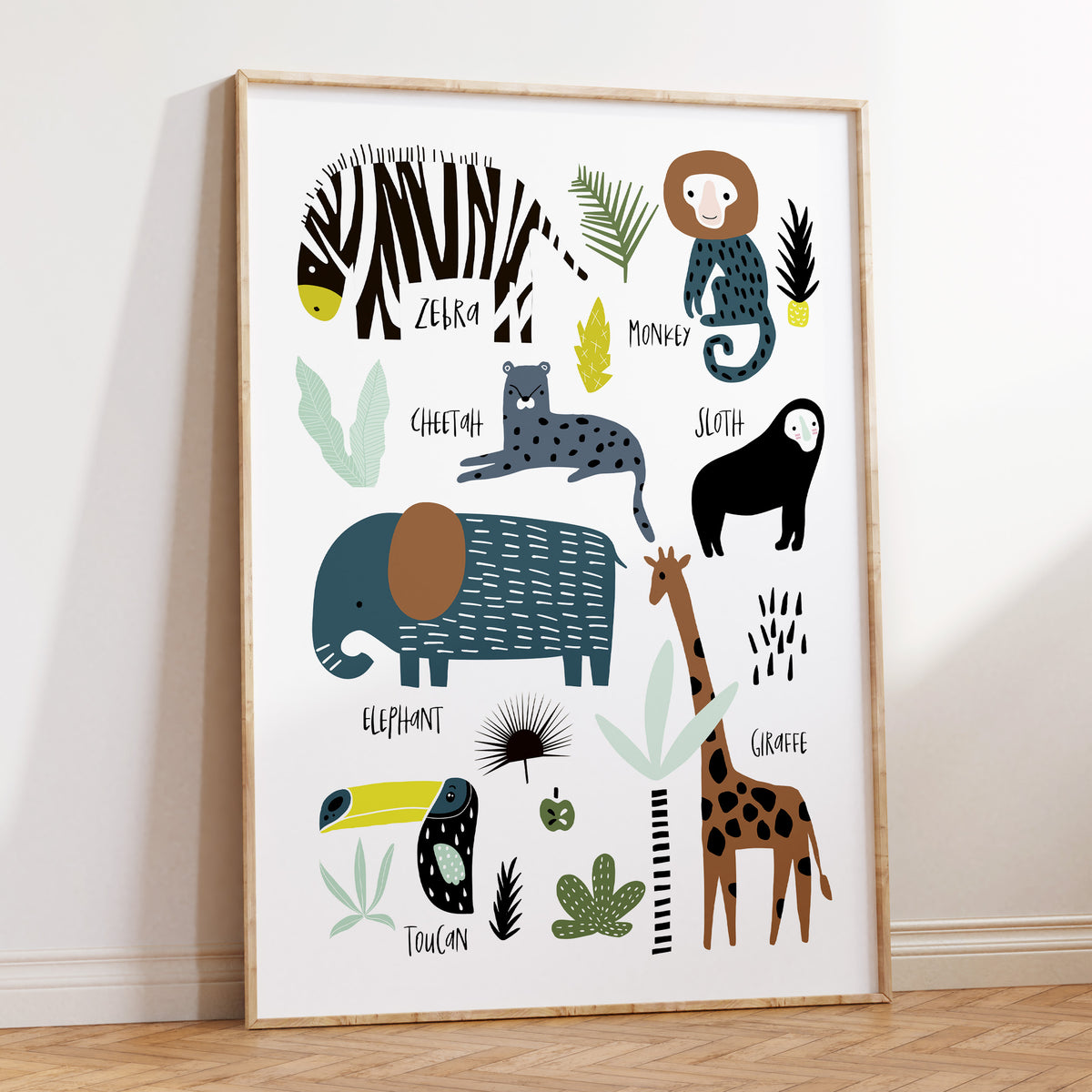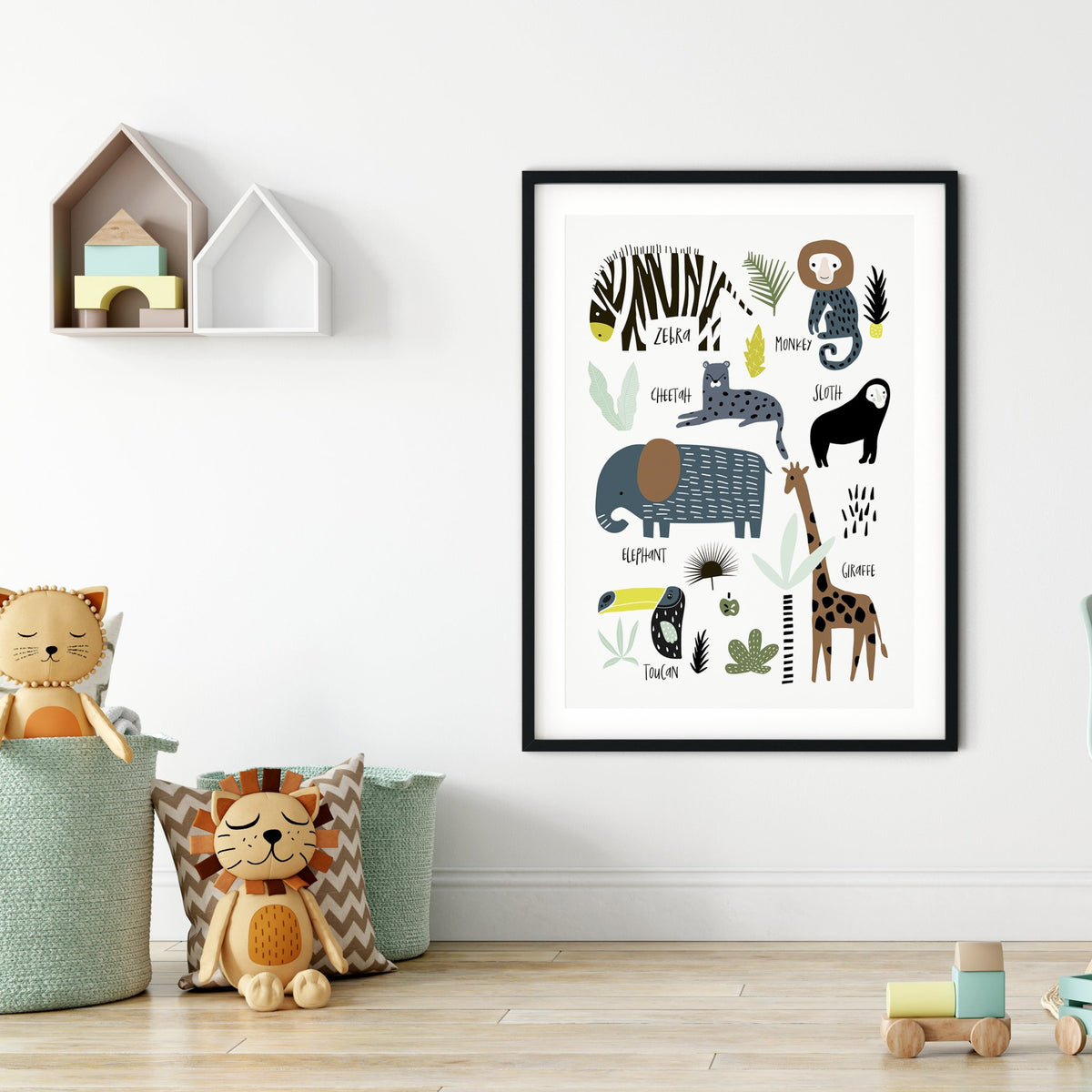 Unit price perBoys bright and vibrant nursery or bedroom wall art featuring jungle animals