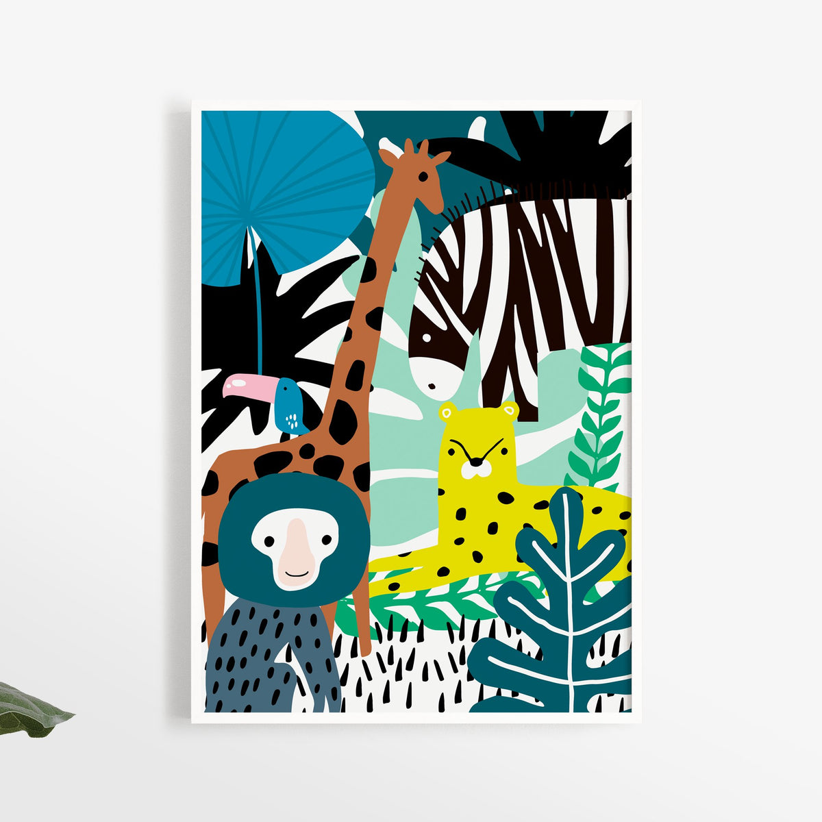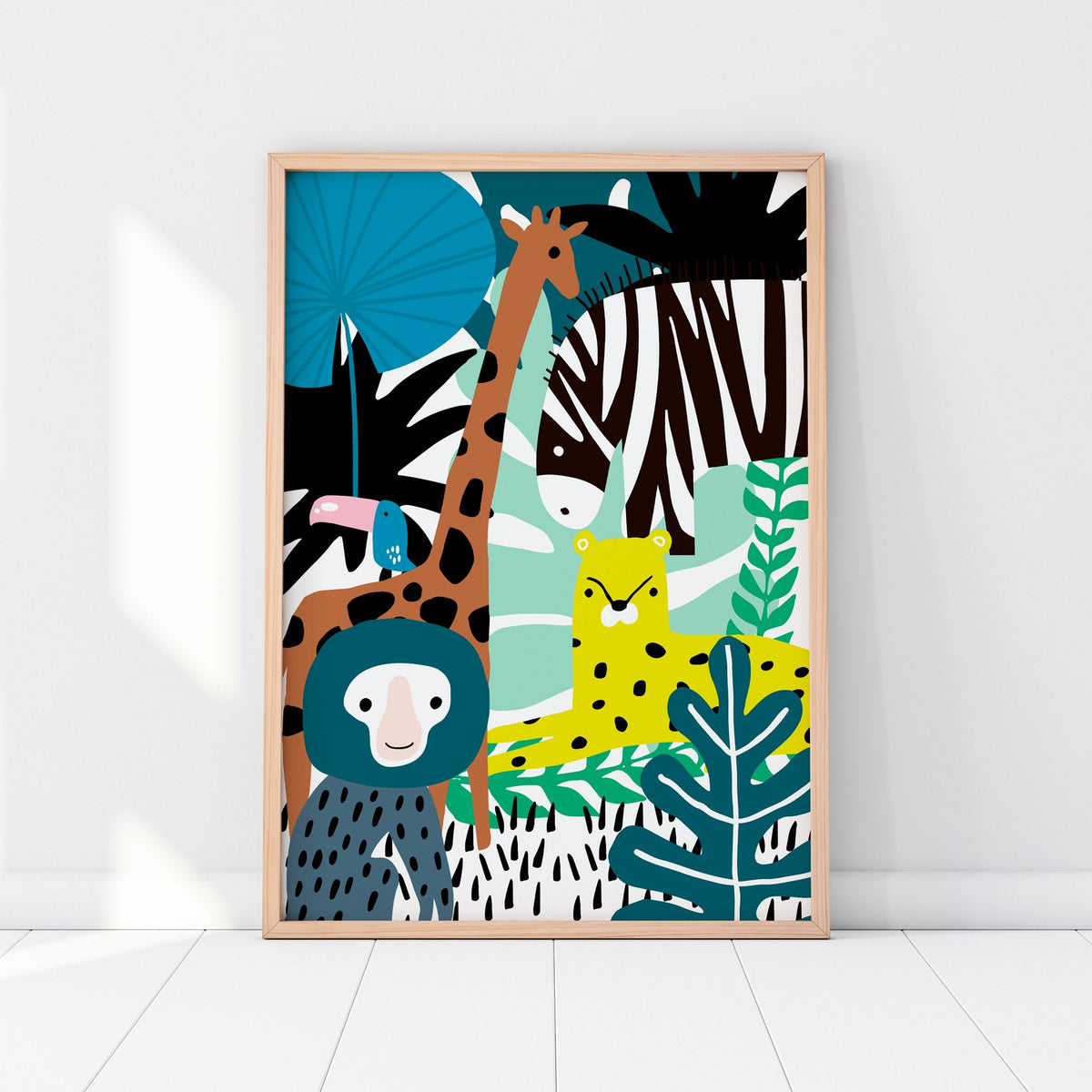 Unit price perBright and vibrant nursery wall art featuring a giraffe, toucan, monkey, leopard & zebra.