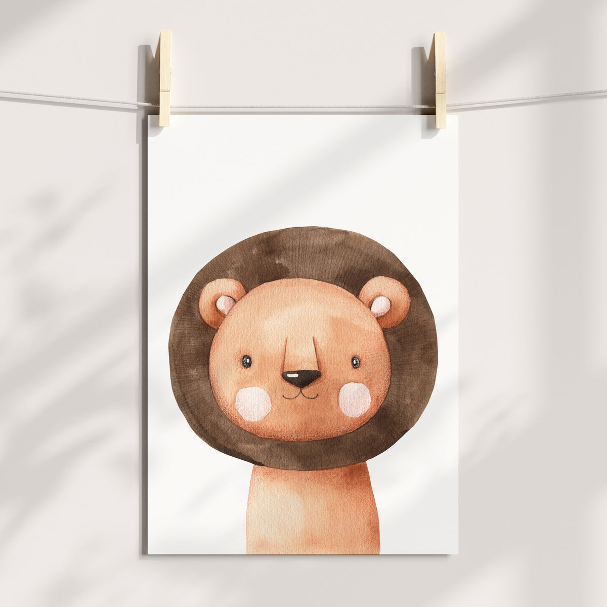 Unit price perThis watercolour lion wall art print will make the perfect addition to your child's safari or jungle animal themed nursery, bedroom, or playroom decor. Pair it with one of our many other baby animal prints or use as a stand-alone statement.