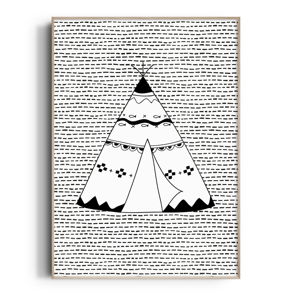 Unit price perMonochrome Tribal Teepee wall art print, scandi inspired nursery or bedroom decor.