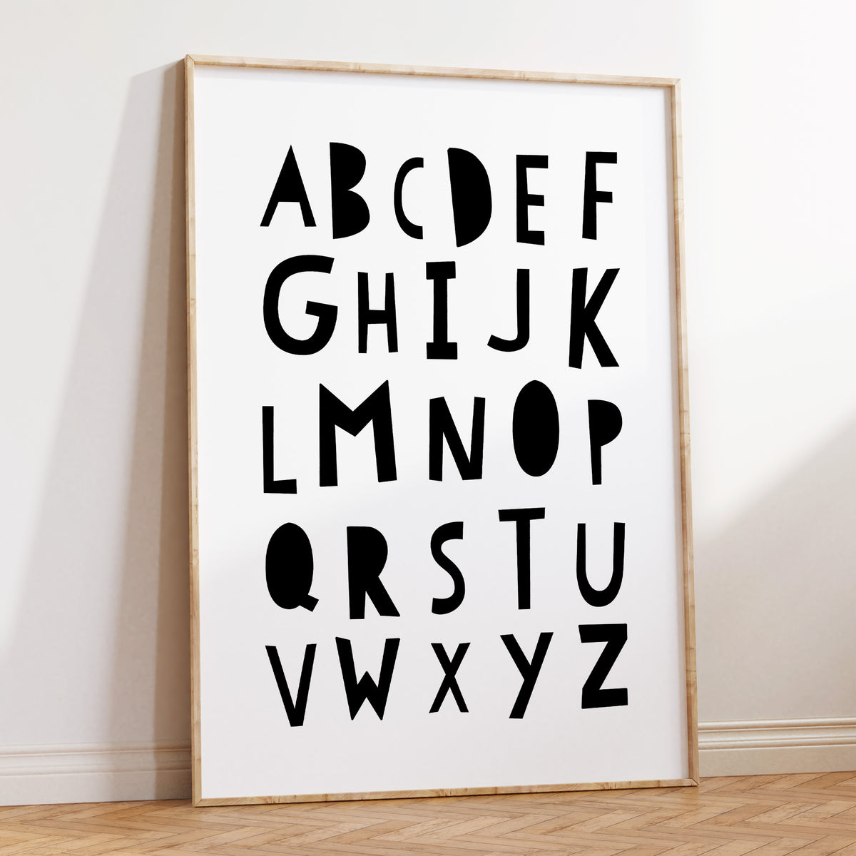 Unit price perA simple monochrome alphabet nursery wall art print, perfect for any nursery or bedroom decor.