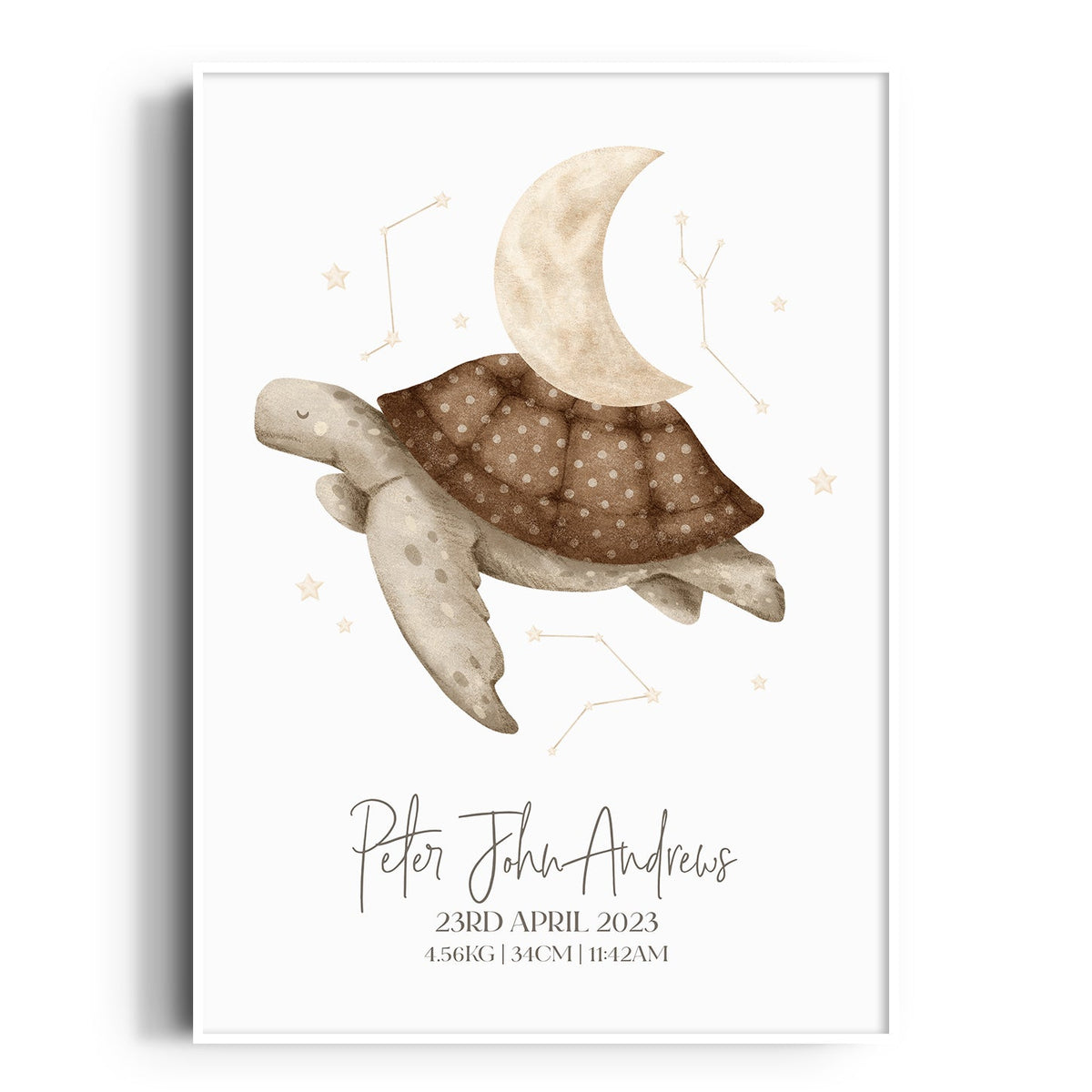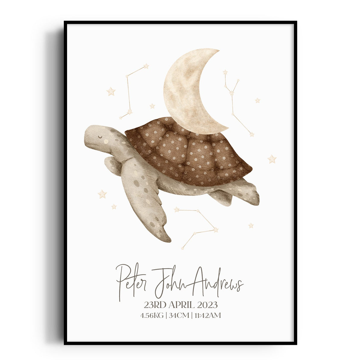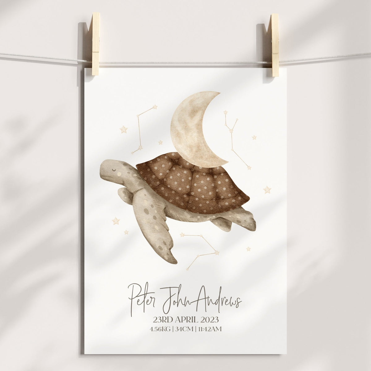 Unit price perPerfect for the ocean or under the sea themed nursery, bedroom or playroom decor is this watercolour boho sea turtle birth print, personalised with your childs details, use as a standalone piece or co-ordinate with other designs in this range.