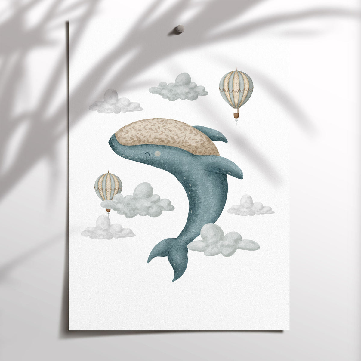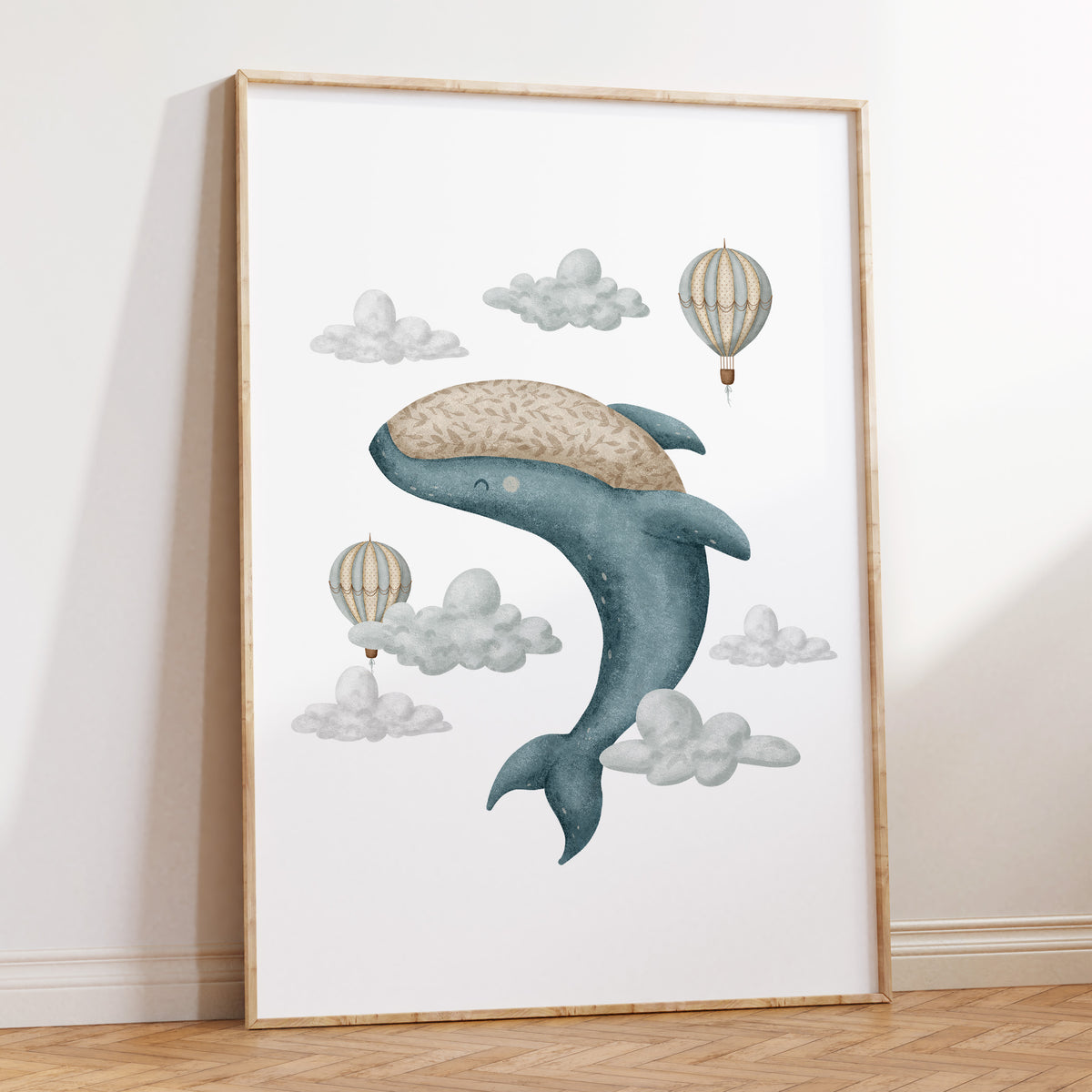 Boho Whale & Hot Air Balloon Print