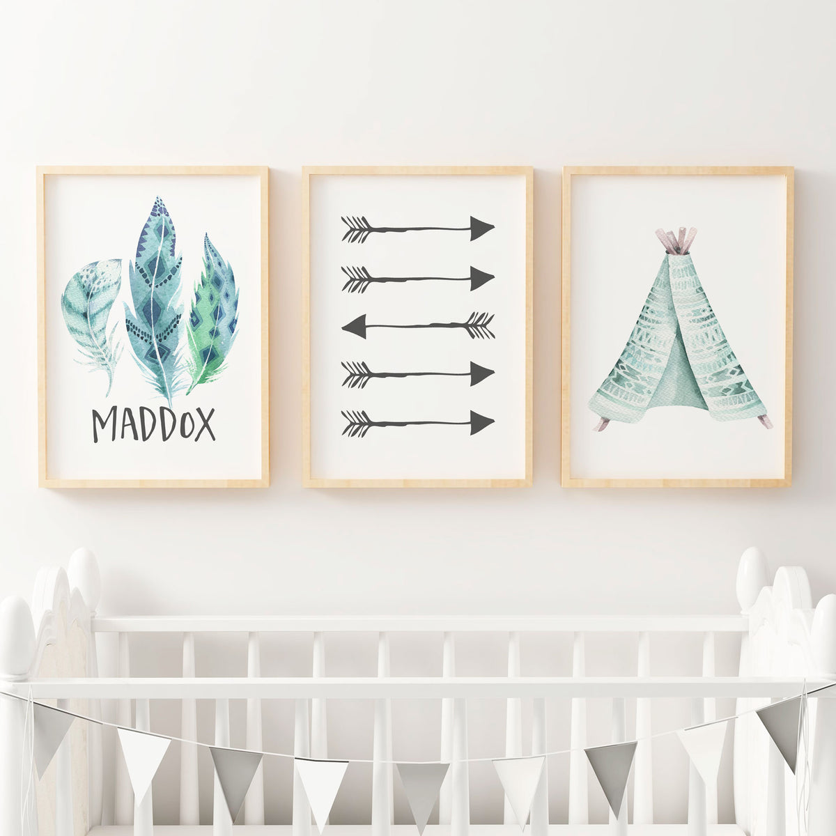 Set of 3 Boys Tribal Boho Nursery or Bedroom Wall Art Decor Prints