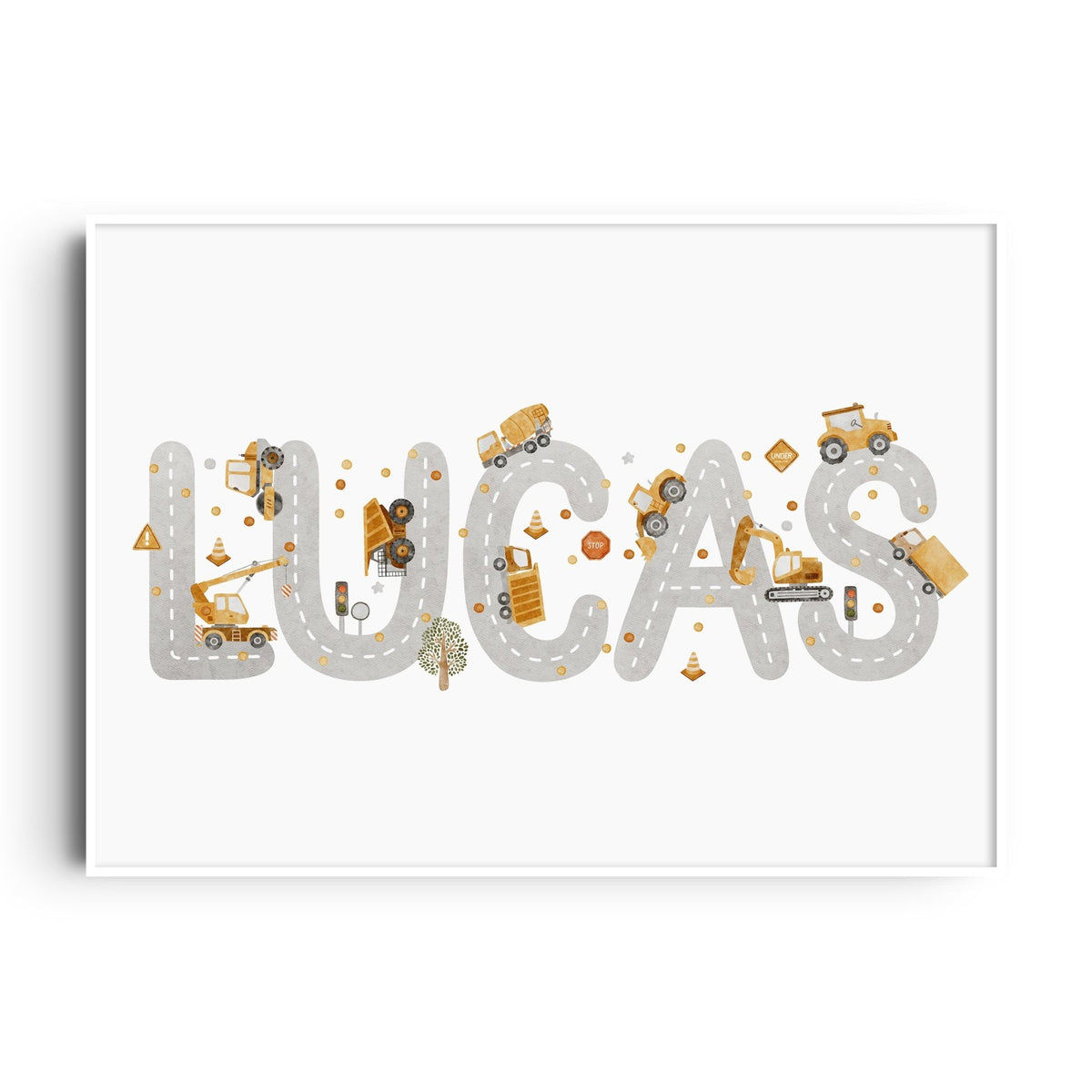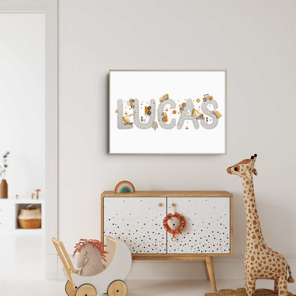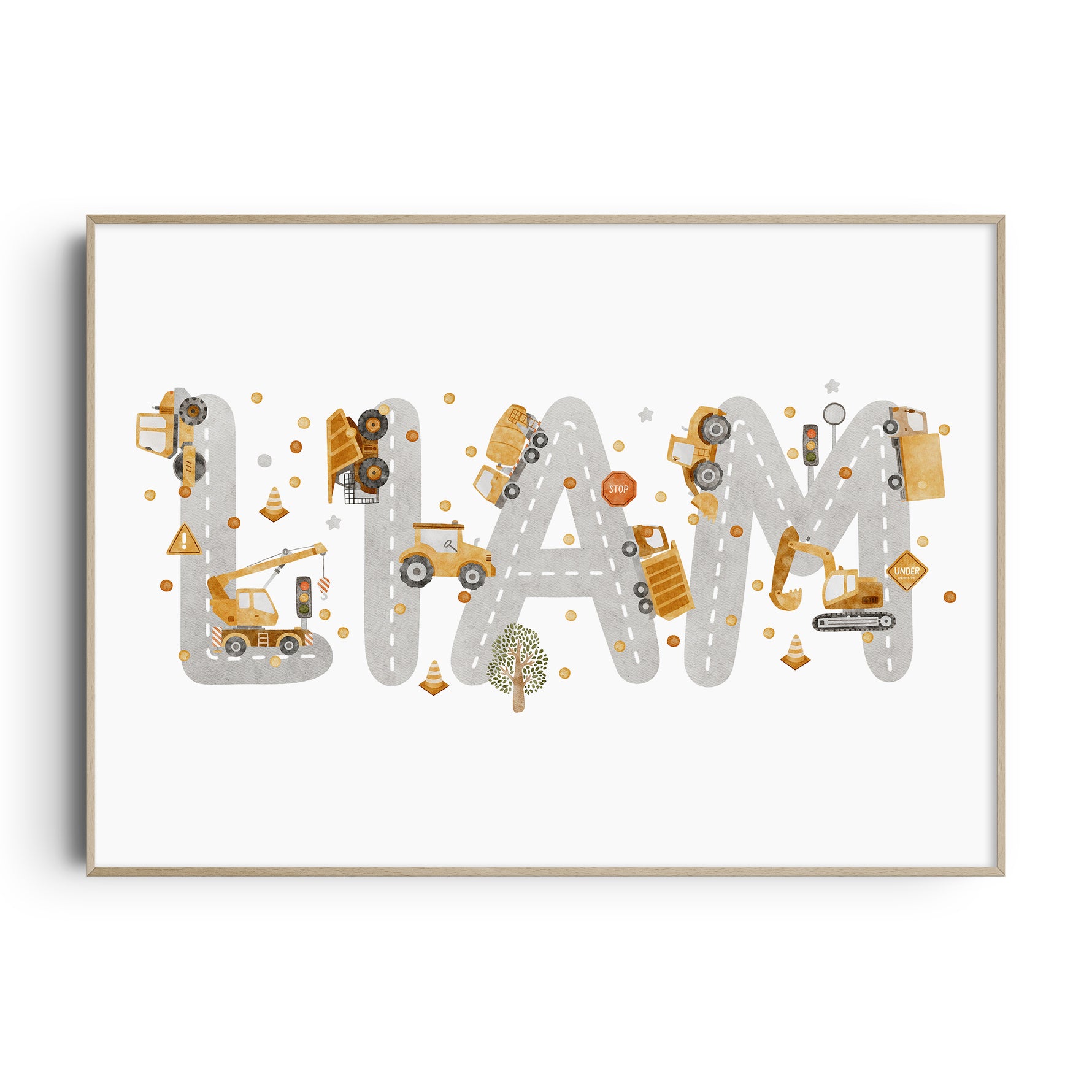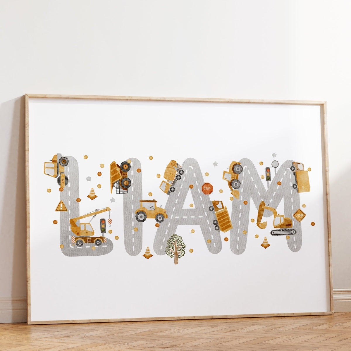 Unit price perHighlight your child's name in style with our Construction Vehicle Name Print. Personalised with a letter of your name, this bold and colourful print is sure to become a feature in any nursery or bedroom. Perfect for any little construction enthusiast!