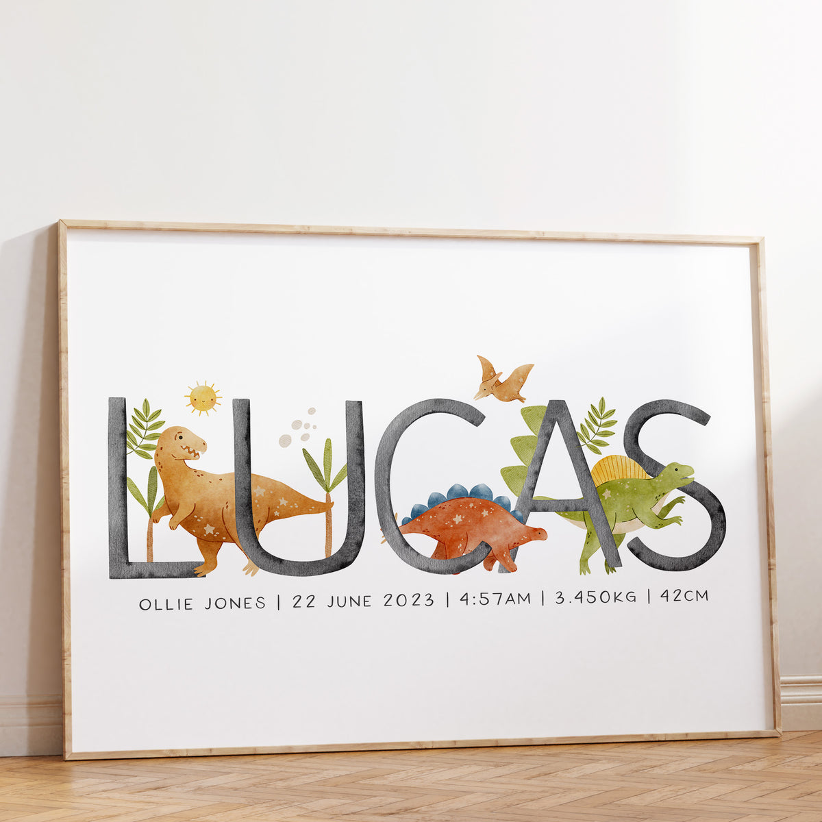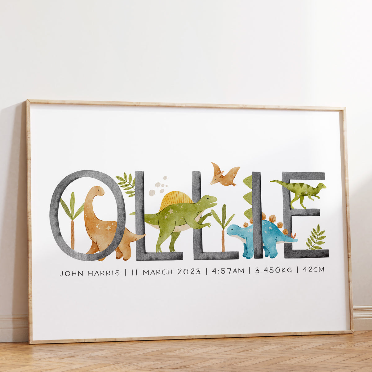Unit price perPerfect for the dinosaur or Jurassic themed nursery, this personalised baby name print is available with your choice of dinosaurs along with the option to add your little one's birth details, it makes a perfect new baby gift or add the finishing touches to your own little boy's room.
