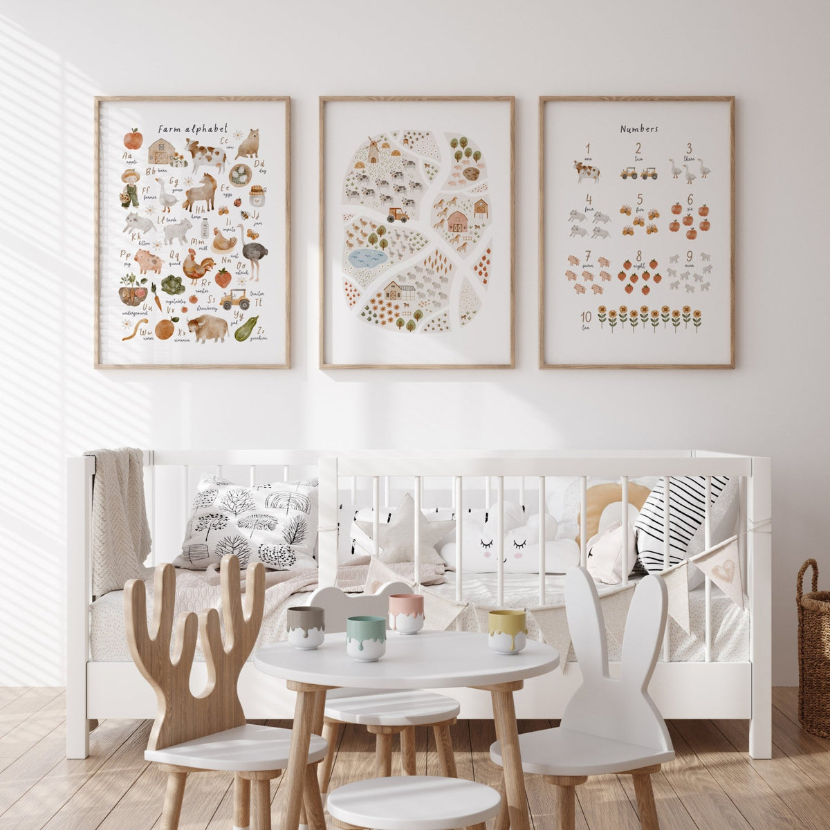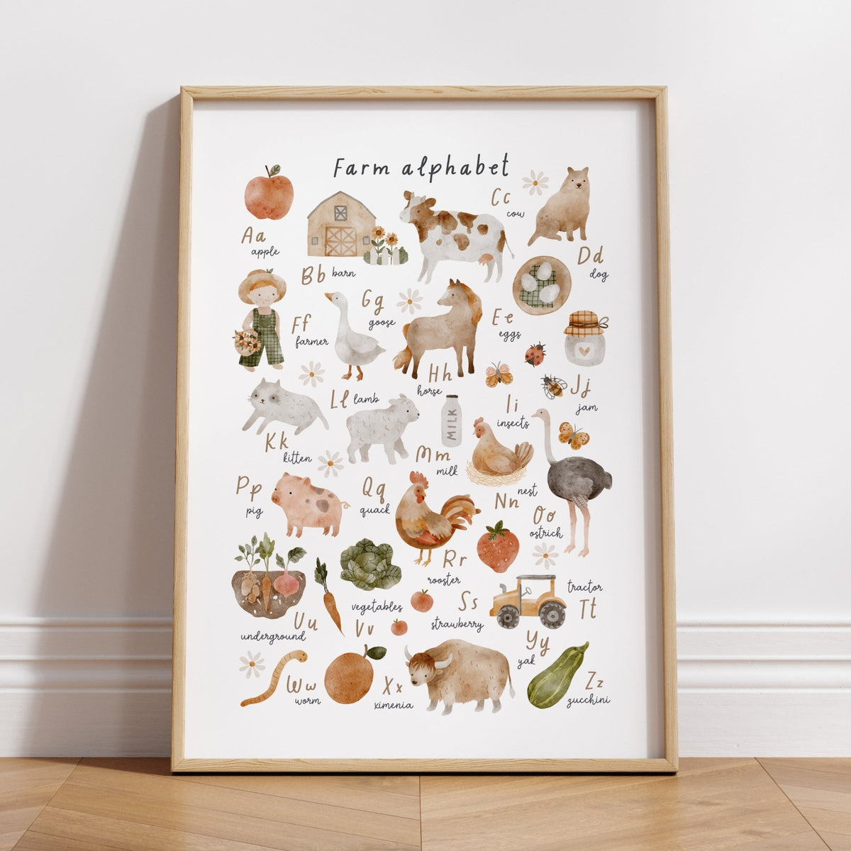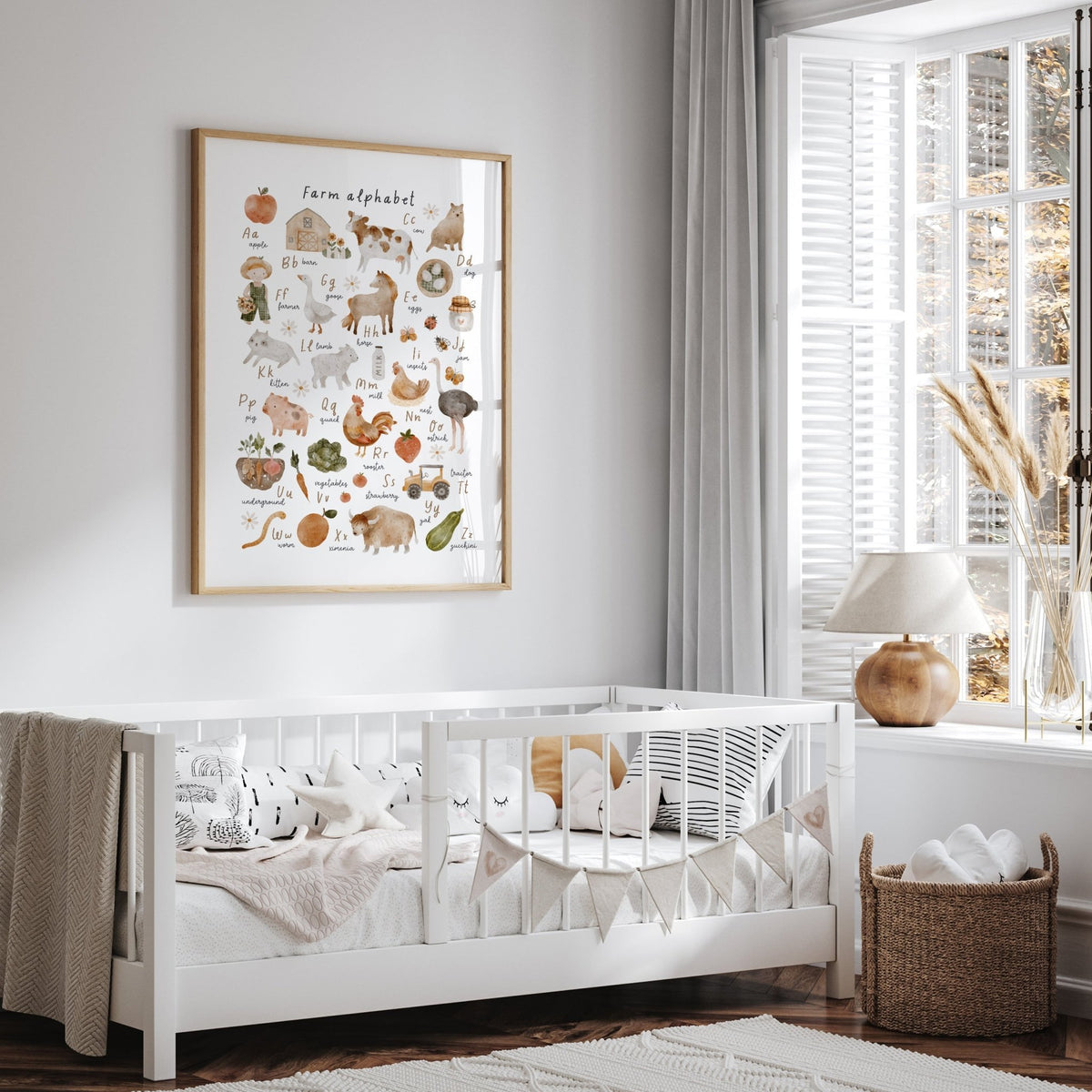Unit price perThis Farm Alphabet Print Nursery Wall Art is the ideal way to brighten up your little one's bedroom, playroom or nursery! The playful design features a delightful array of farm animals and objects to help your child learn the ABCs in a fun and friendly way.