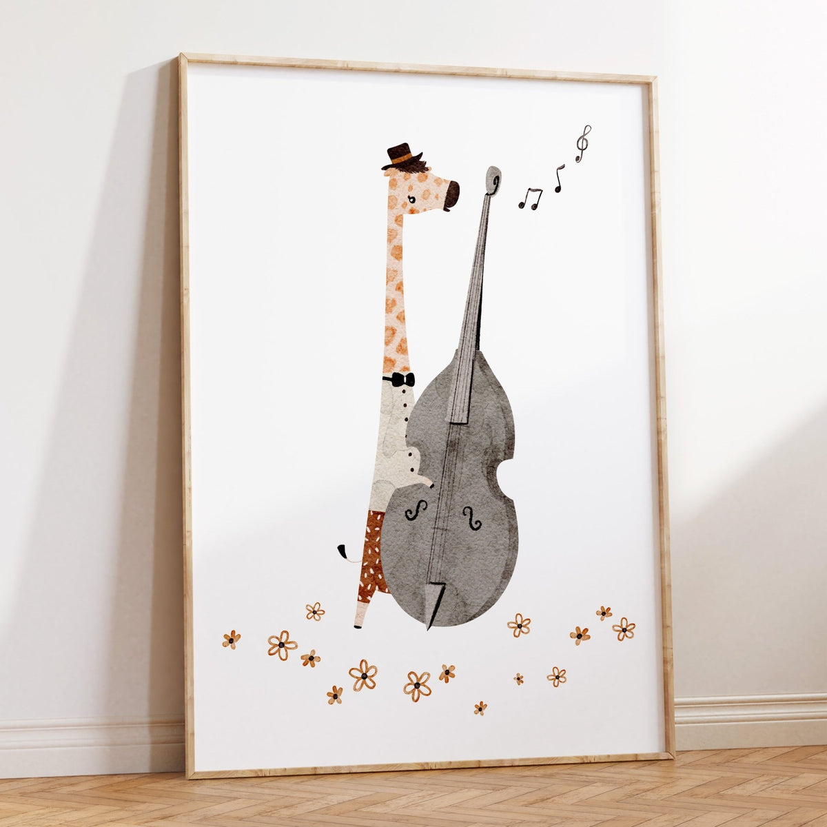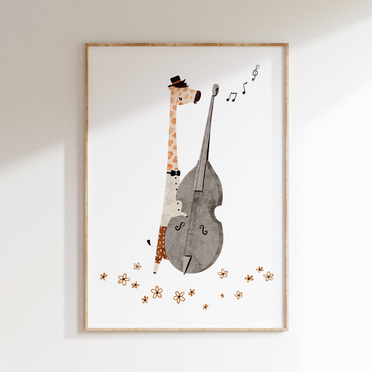 Unit price perThe perfect addition to the music or animal themed nursery, bedroom or playroom decor is this jungle jazz elephant wall art print. Featuring a safari giraffe playing the cello , this print is sure to please any little music lover.