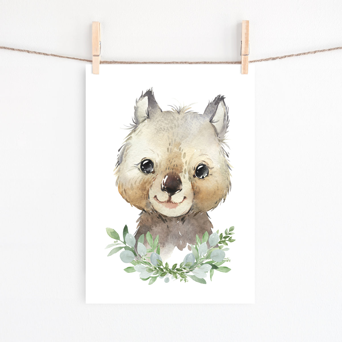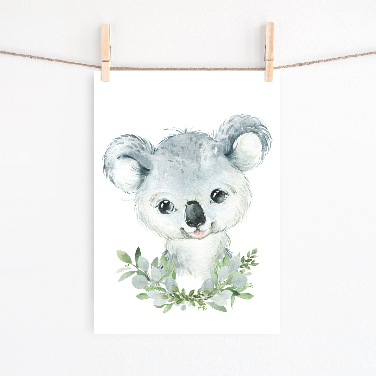 This set of three nursery prints features distinct, high-quality illustrations of Australia's iconic native animals: koala, wombat, and kangaroo. This ready-to-hang wall art is perfect for adorning your child's nursery. The vibrant colors, detailed depictions and premium materials ensure a lifetime of enjoyment.