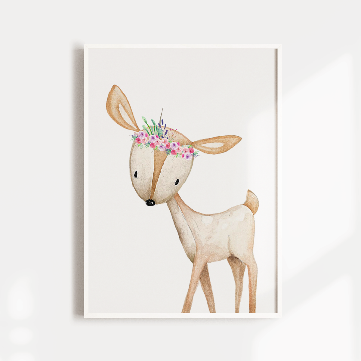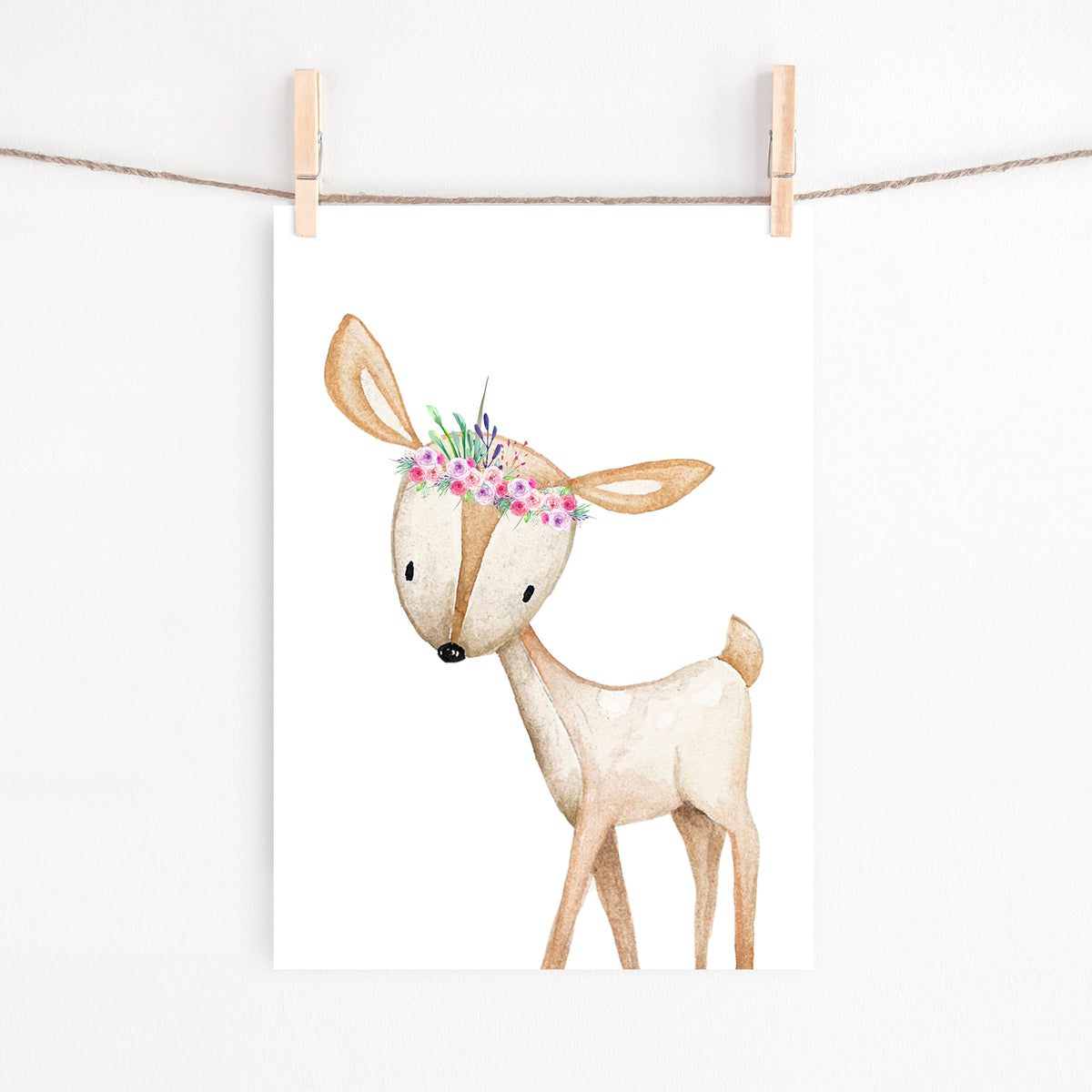Unit price perOur floral woodland deer print will make a statement in your child's animal themed nursery, bedroom or playroom decor. Adorned with a floral crown this wall art can be paired with many of our other baby animal posters or used as a stand alone statement.