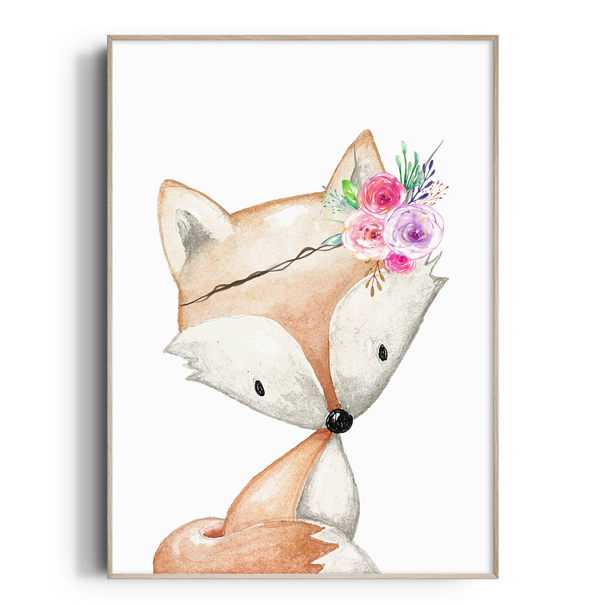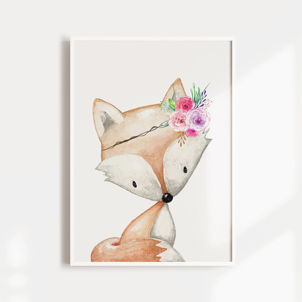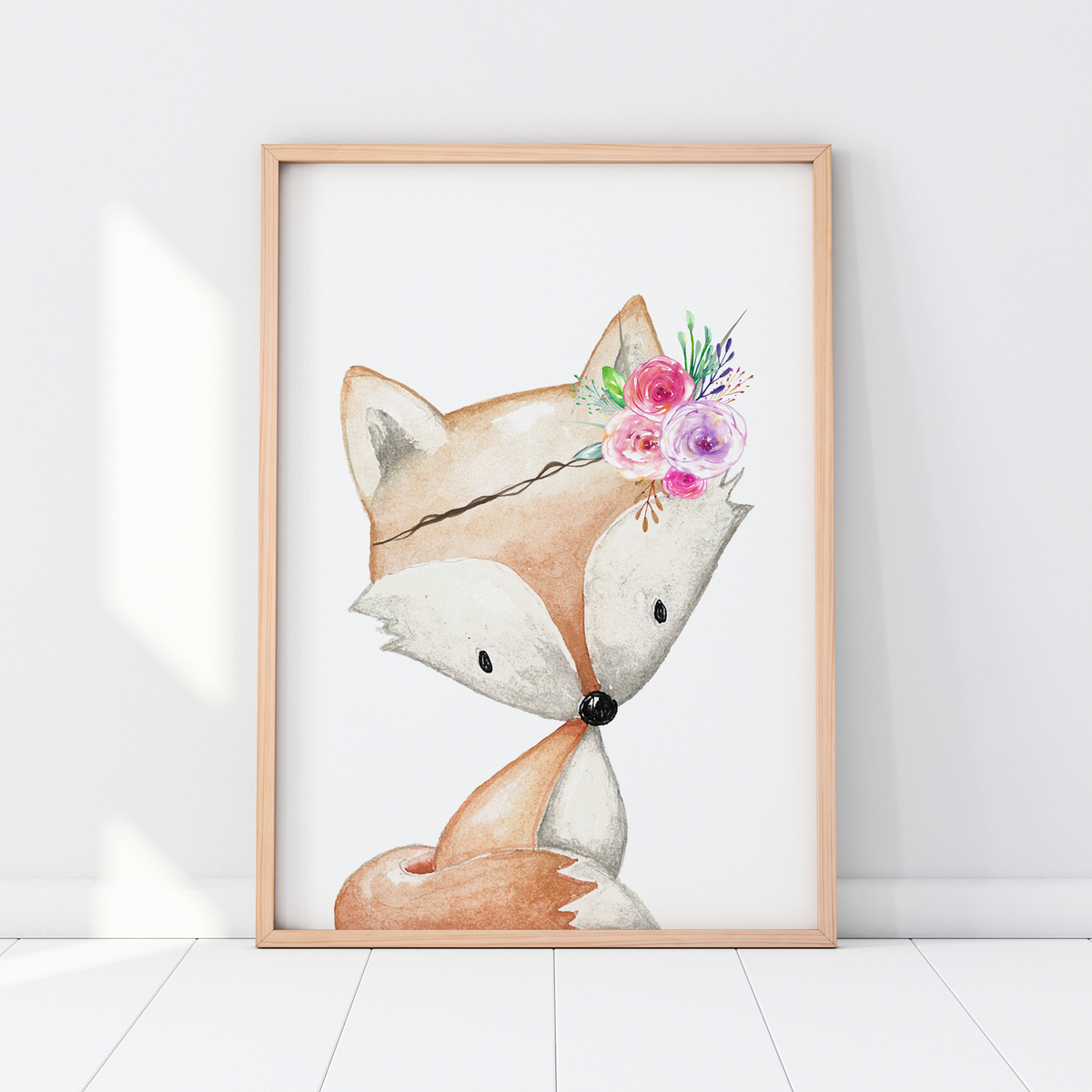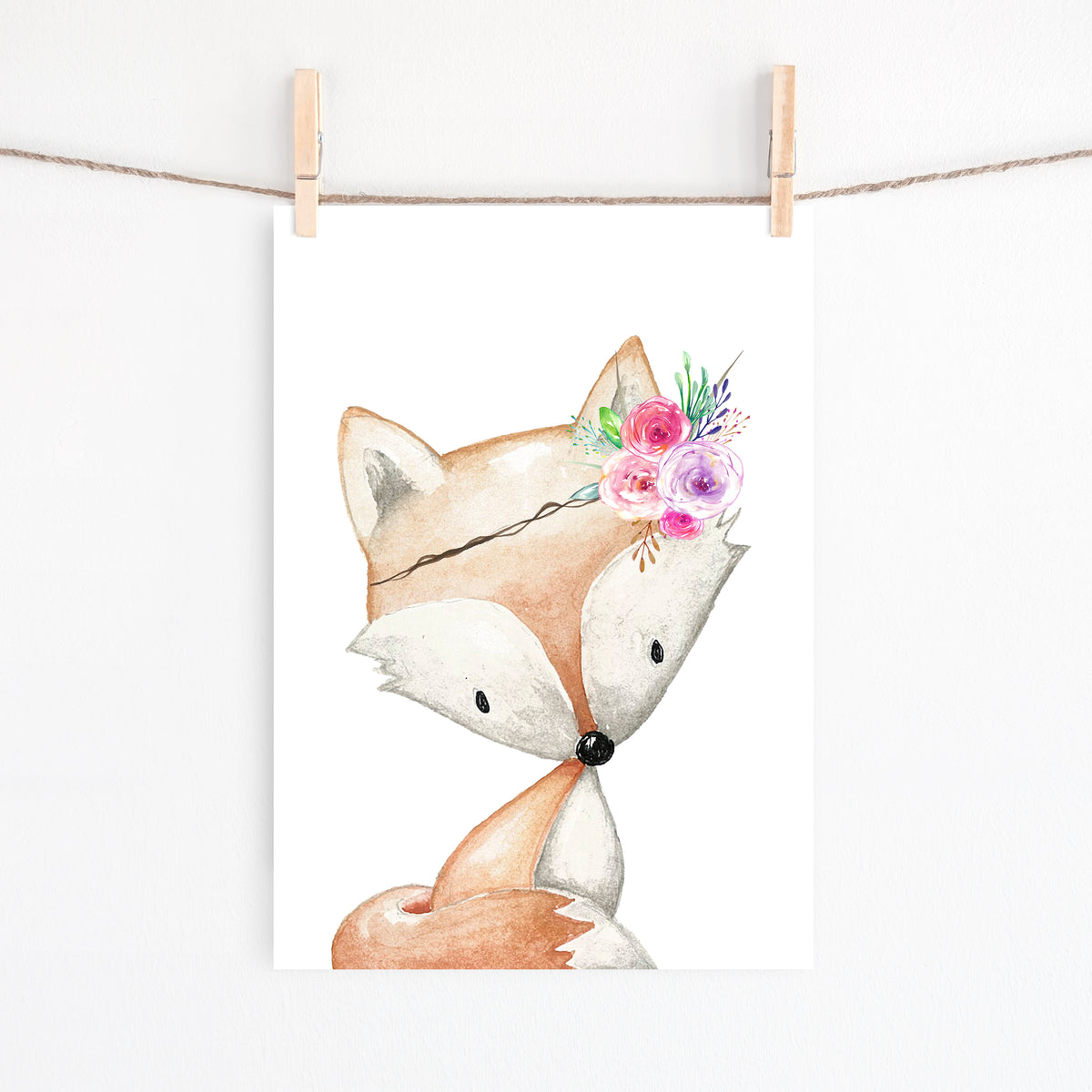 Unit price perOur floral woodland fox print will make a statement in your child's animal themed nursery, bedroom or playroom decor. Adorned with a floral crown this wall art can be paired with many of our other baby animal posters or used as a stand alone statement.