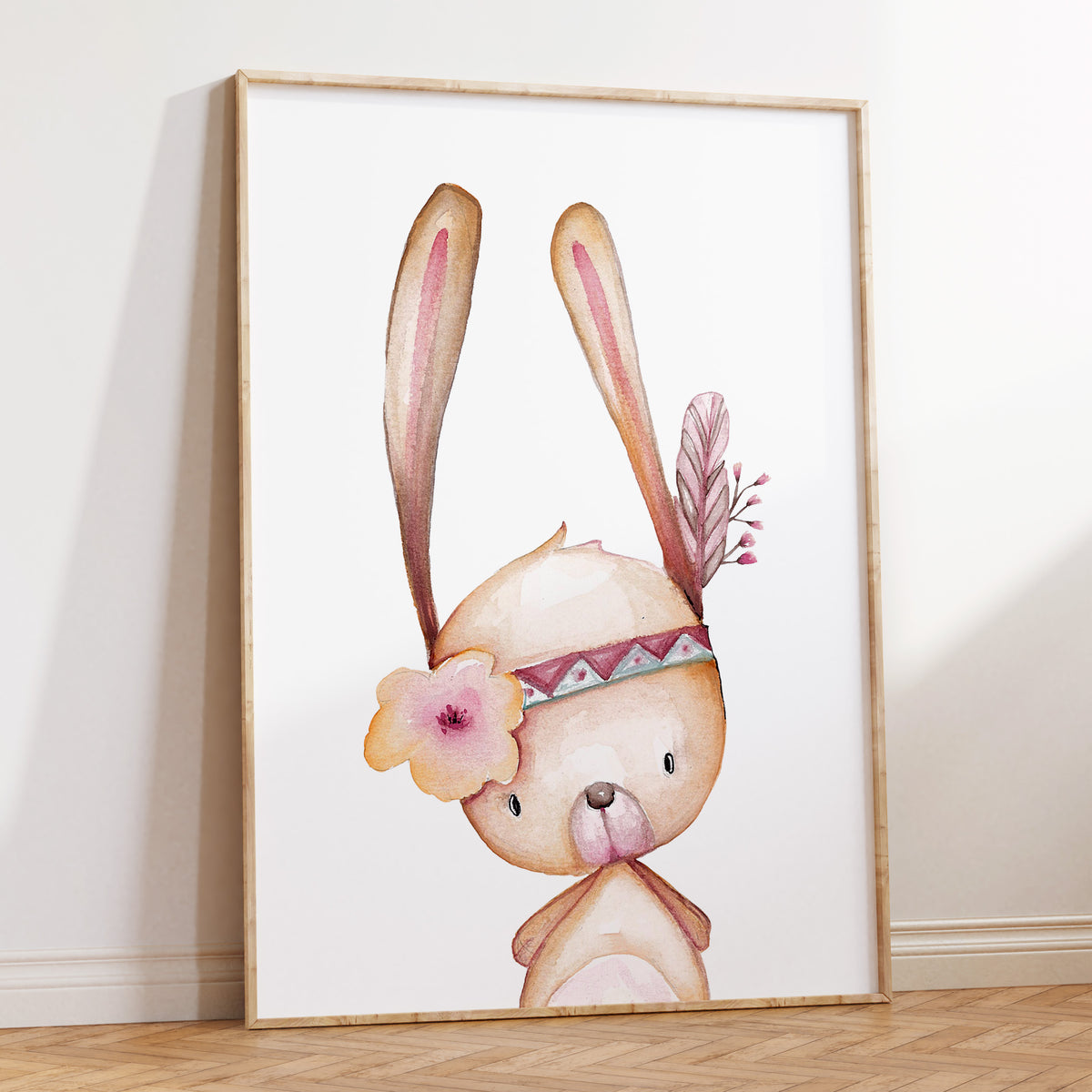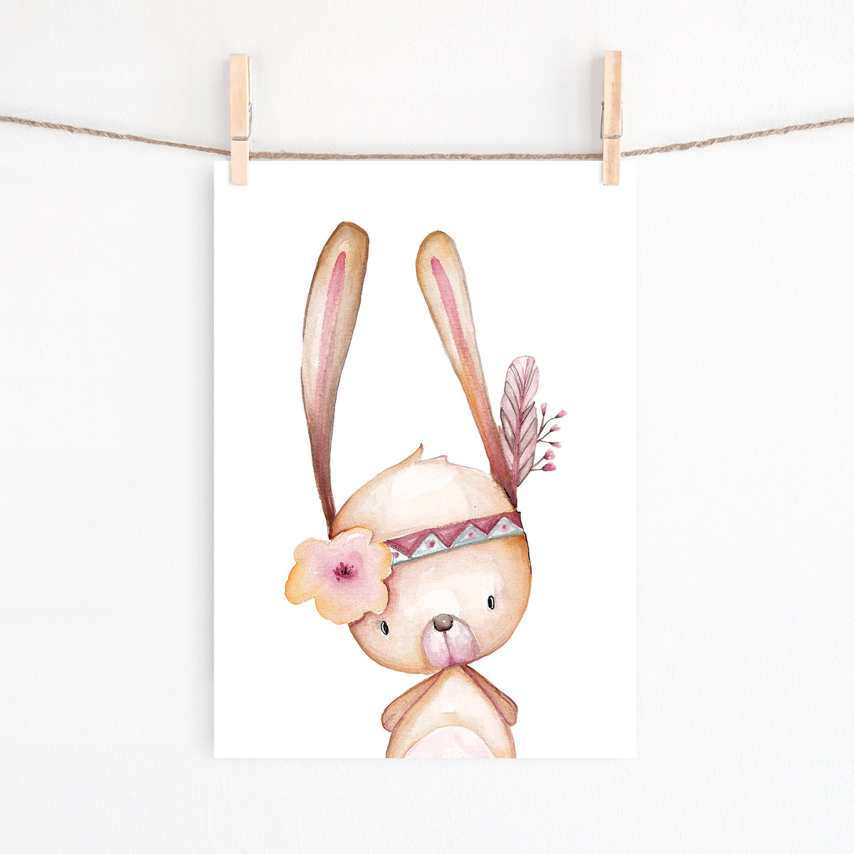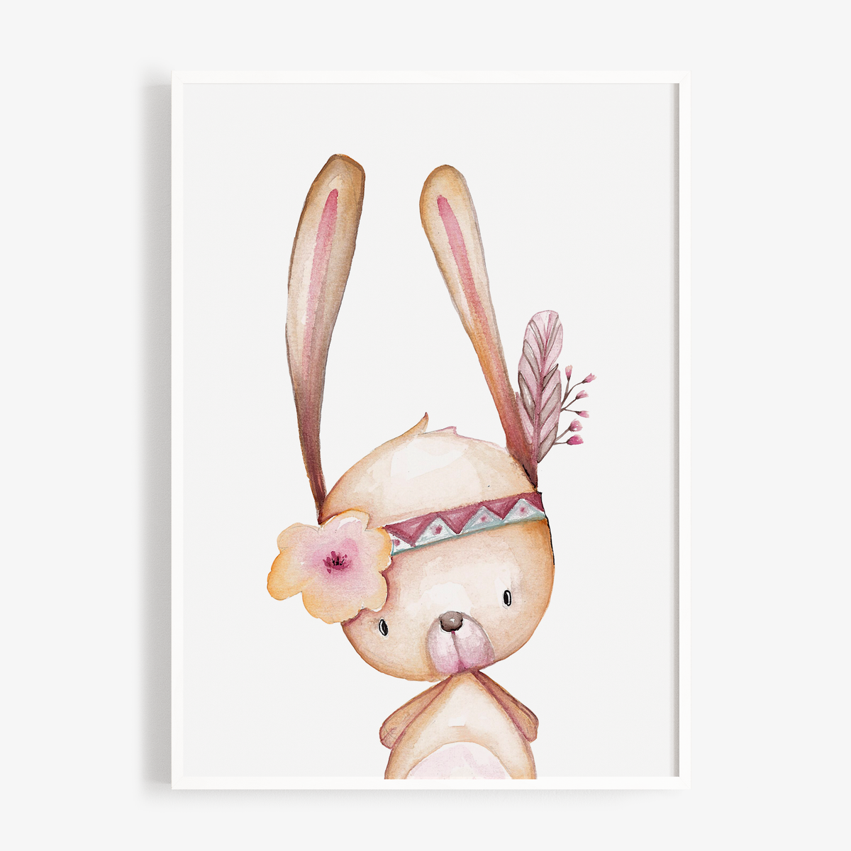 Unit price perOur floral woodland bunny print will make a statement in your child's animal themed nursery, bedroom or playroom decor. Adorned with a floral crown this wall art can be paired with many of our other baby animal posters or used as a stand alone piece.