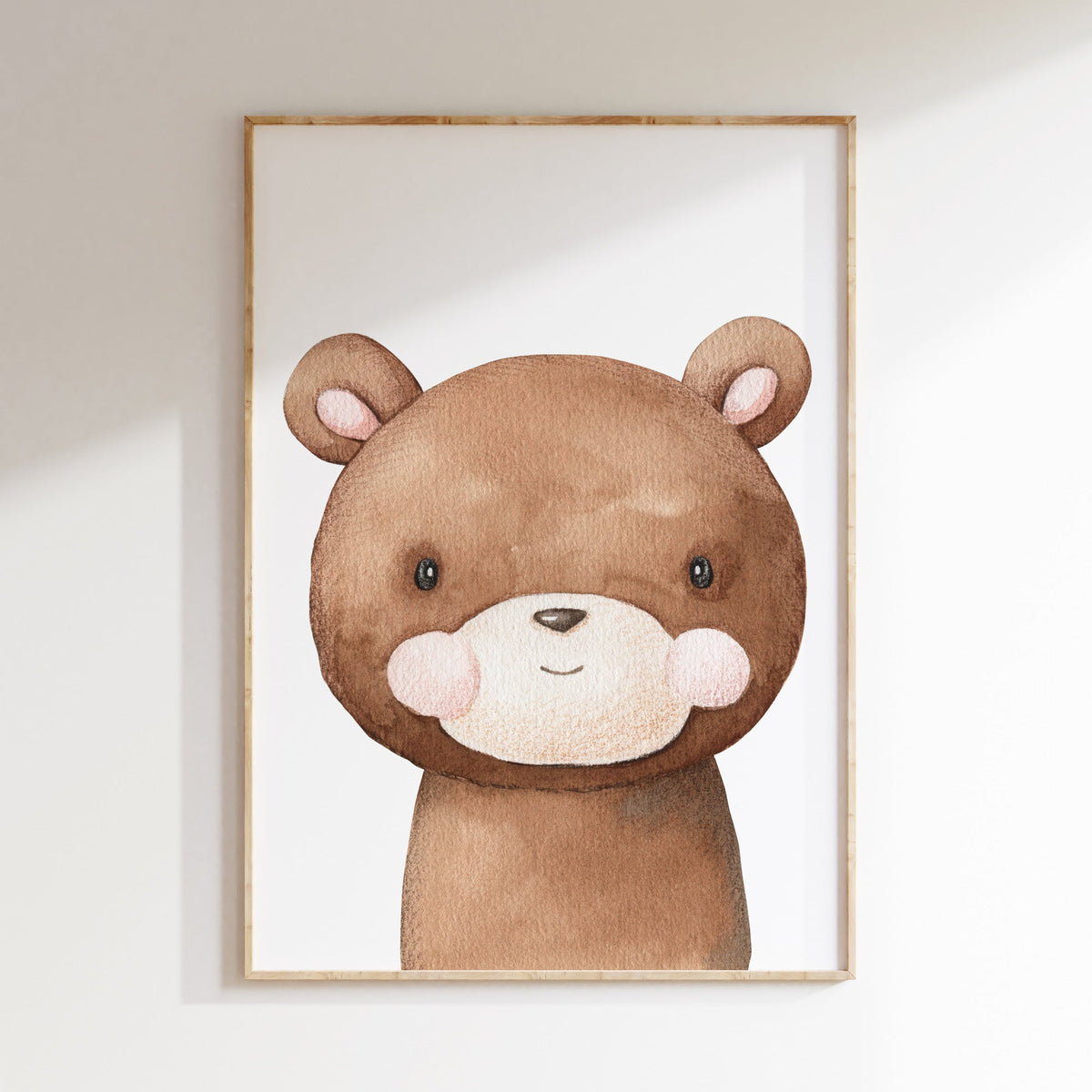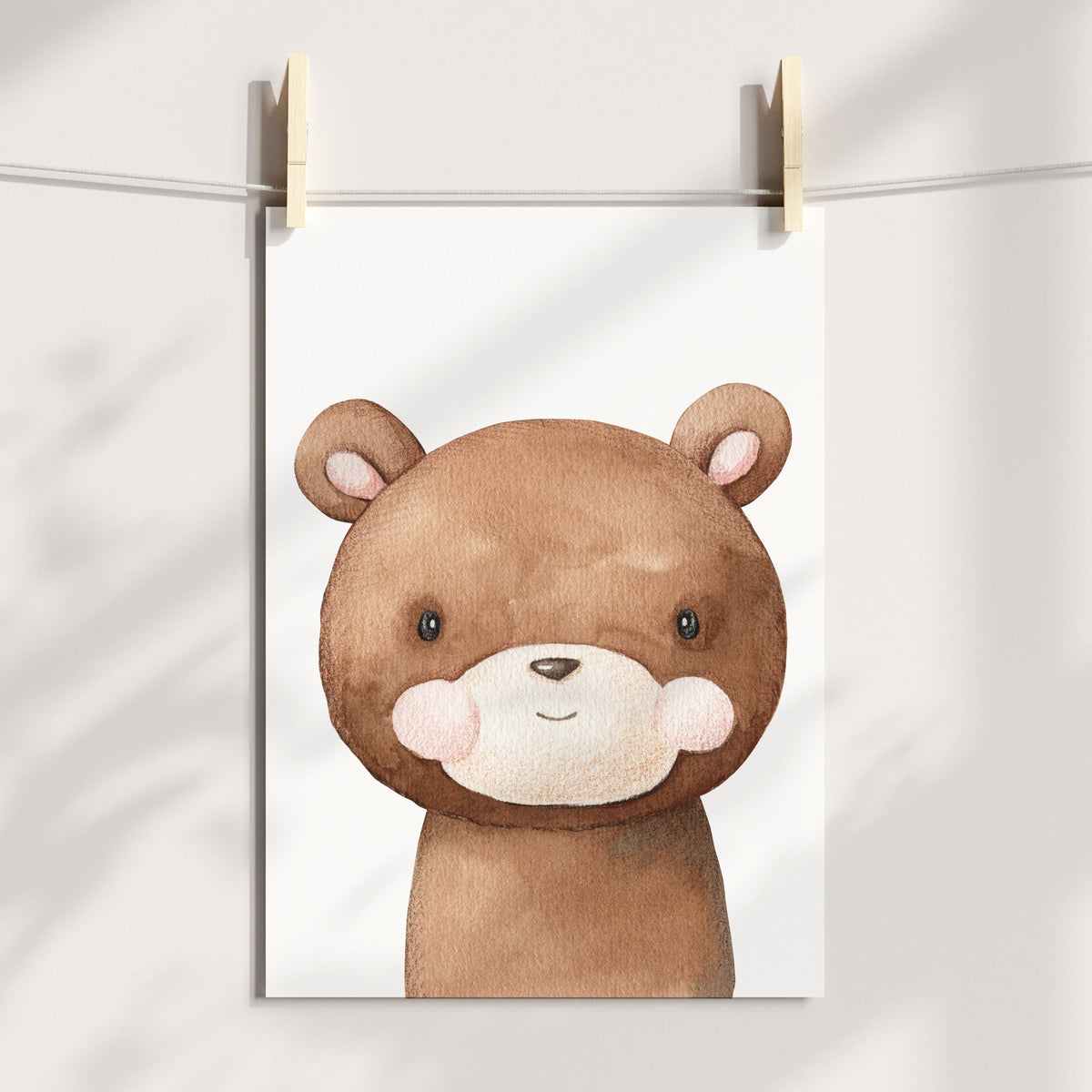 Unit price perThis watercolour bear wall art print will make the perfect addition to your child's woodland or forest animal themed nursery, bedroom, or playroom decor. Pair it with one of our many other baby animal prints or use as a stand alone statement.