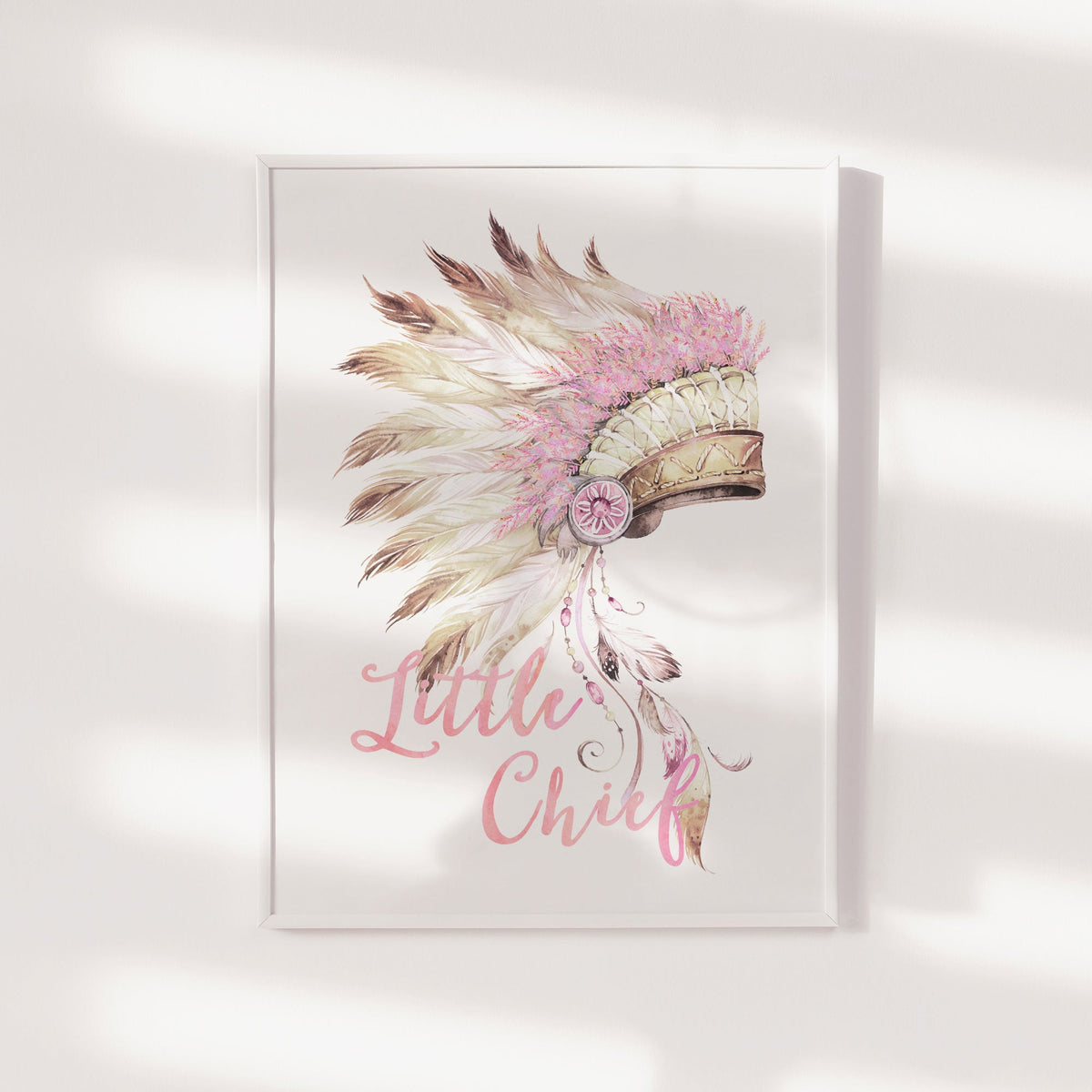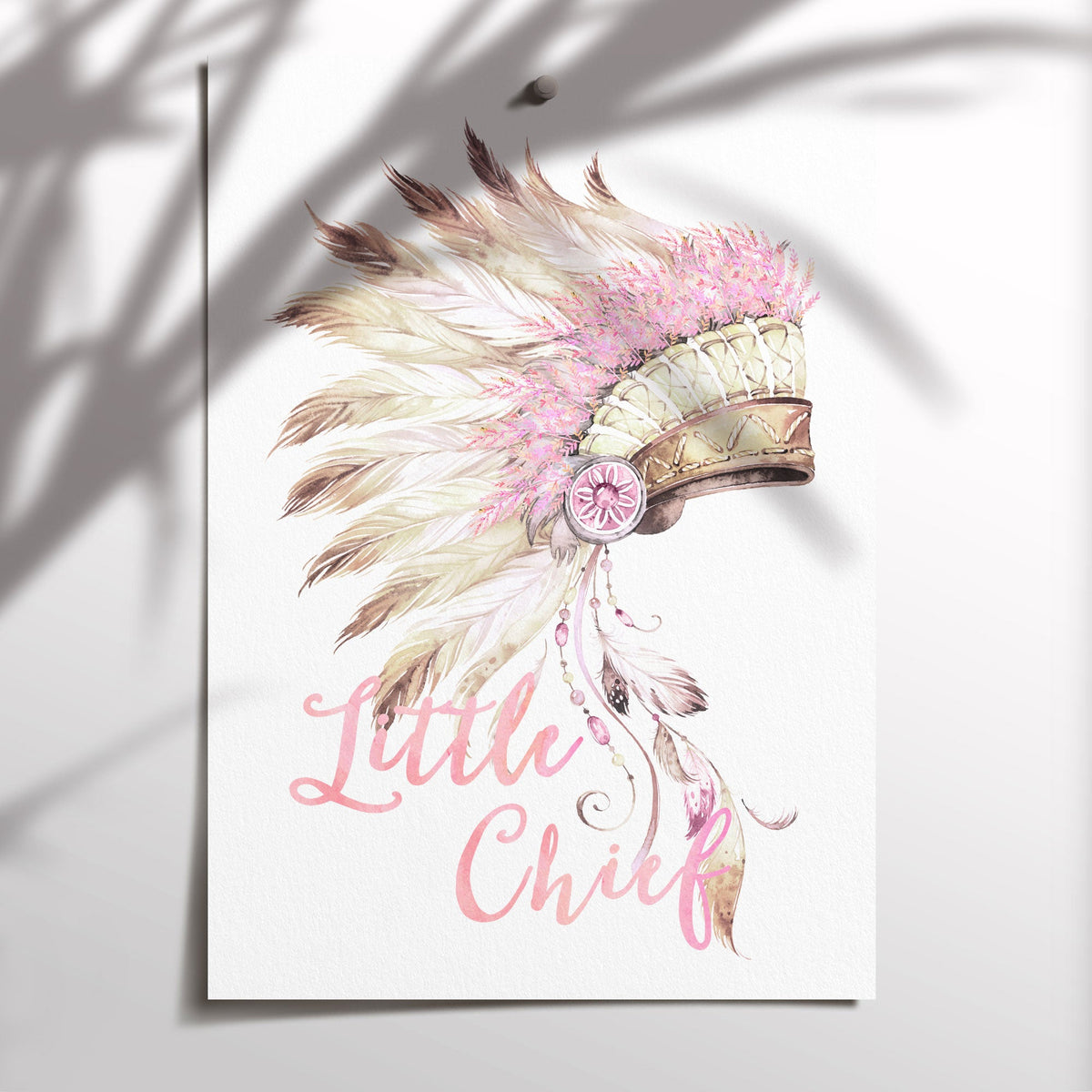 Unit price perOur popular Tribal Boho watercolour headdress wall art print, just for the girls, Little Chief.