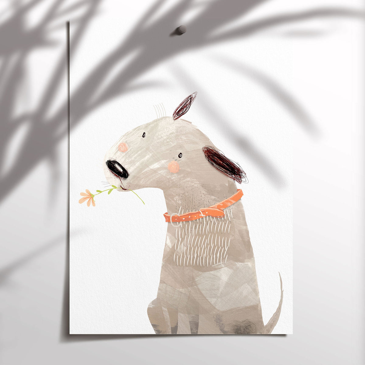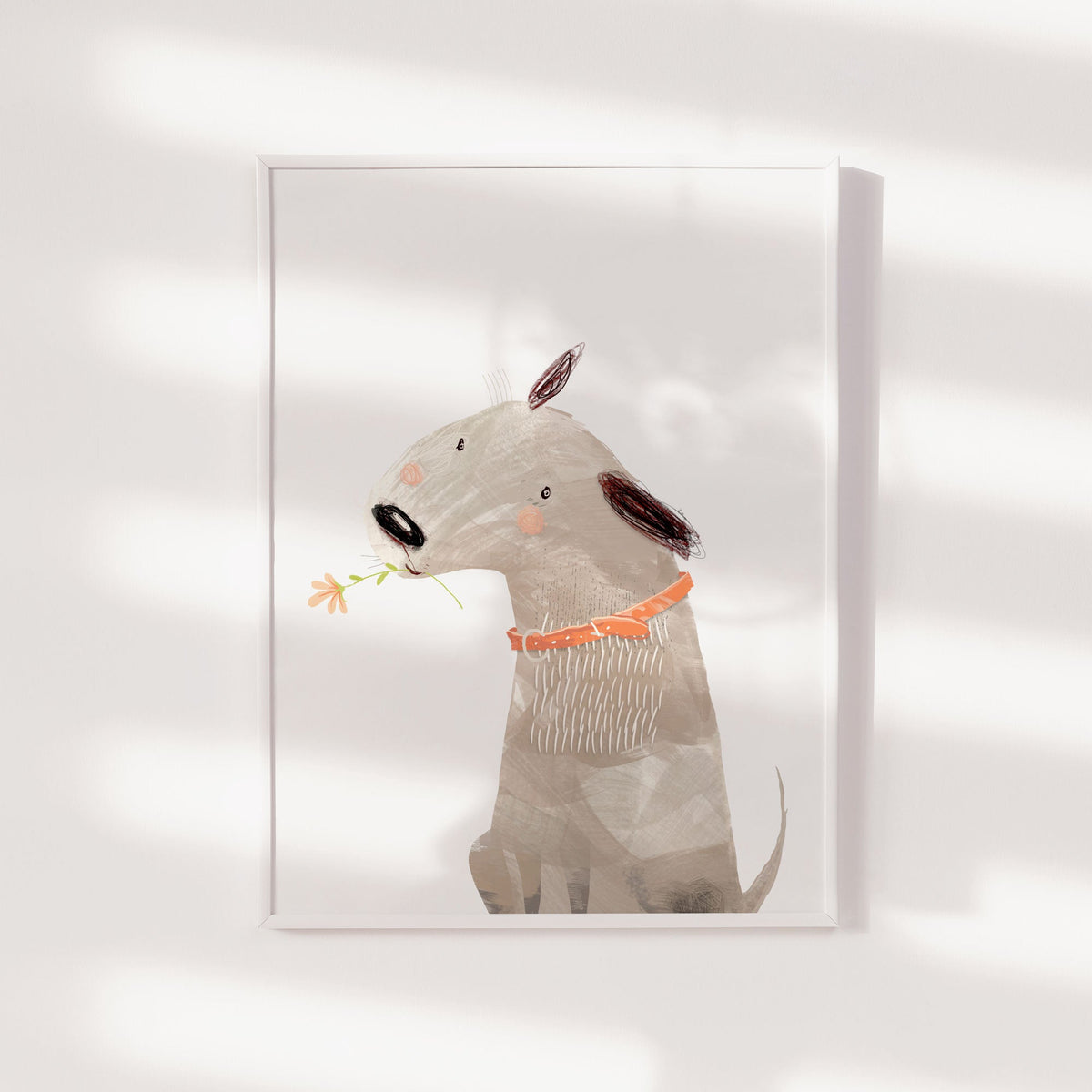 Unit price perThis pretty boho inspired dog wall art print, will add the finishing touch to your baby girls nursery or bedroom décor. Use as a standalone piece or mix with our other 'Little Miss' character prints.