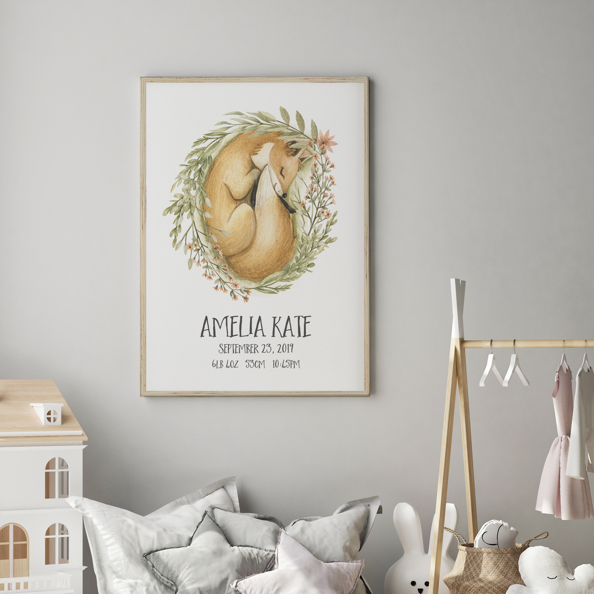 Unit price perA Woodland Fox wall art birth details print is perfect for your little girls woodland inspired nursery or bedroom decor.