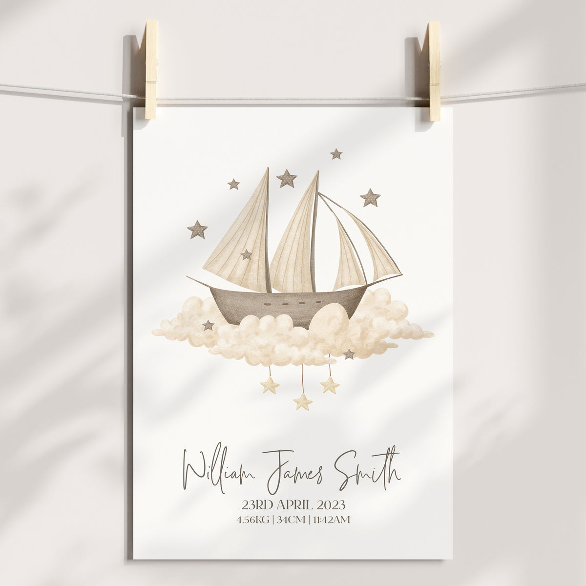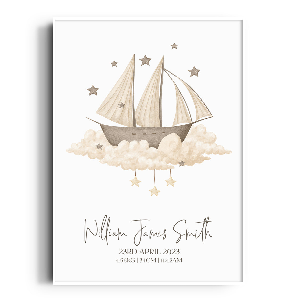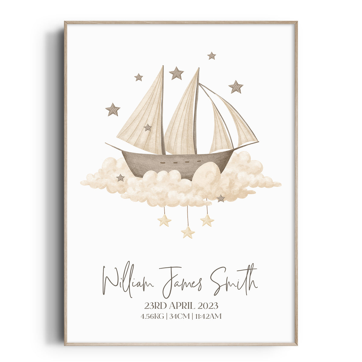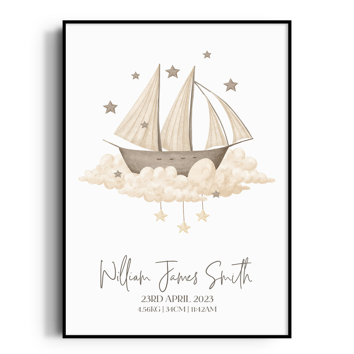 Unit price perPerfect for the boho or transport themed nursery, bedroom or playroom decor is this vintage ship print, personalised with your childs details, use as a standalone piece or co-ordinate with other designs in this range.