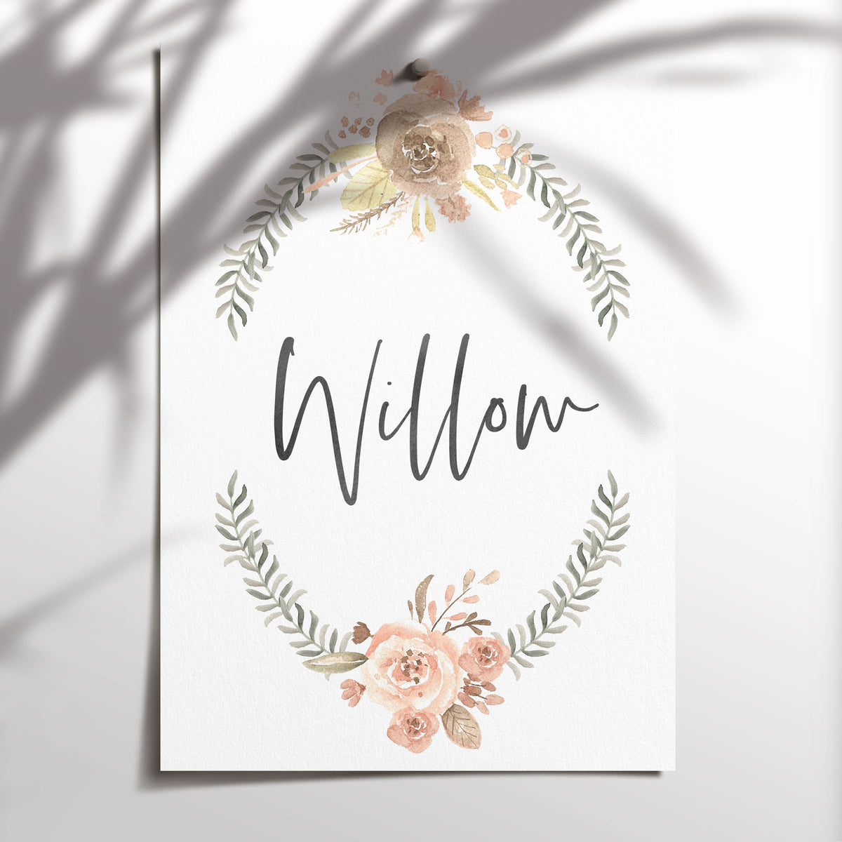 Unit price perFeaturing a soft peach & brown watercolour flowers, your print will be customised with your choice of name.
