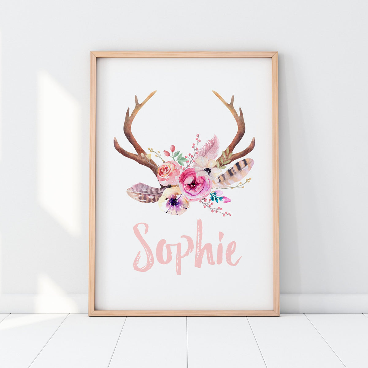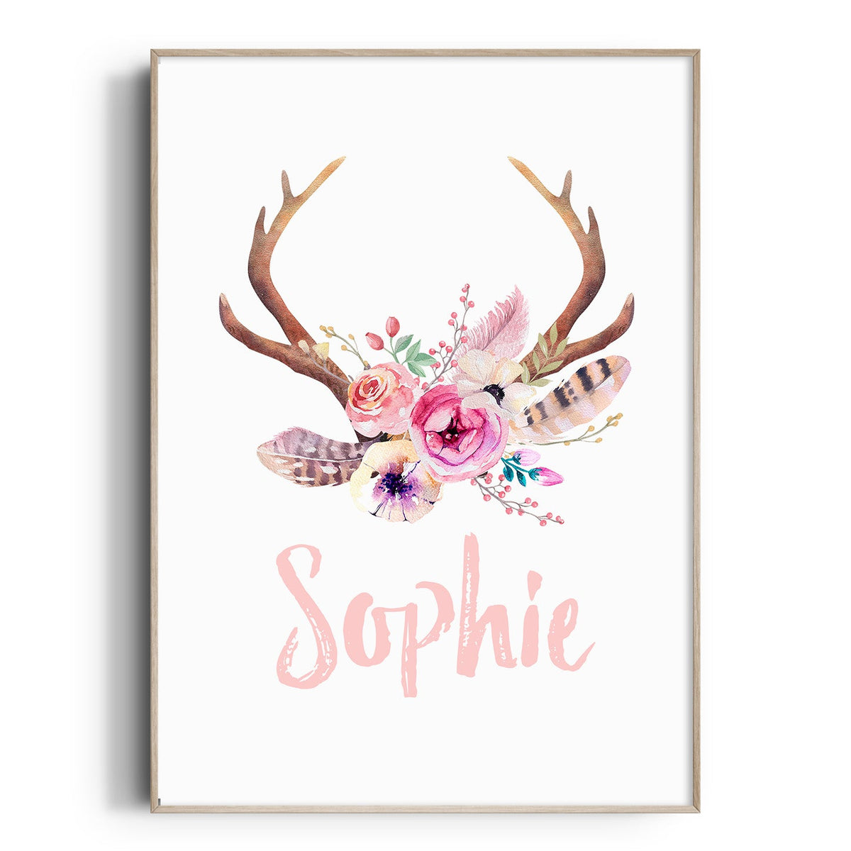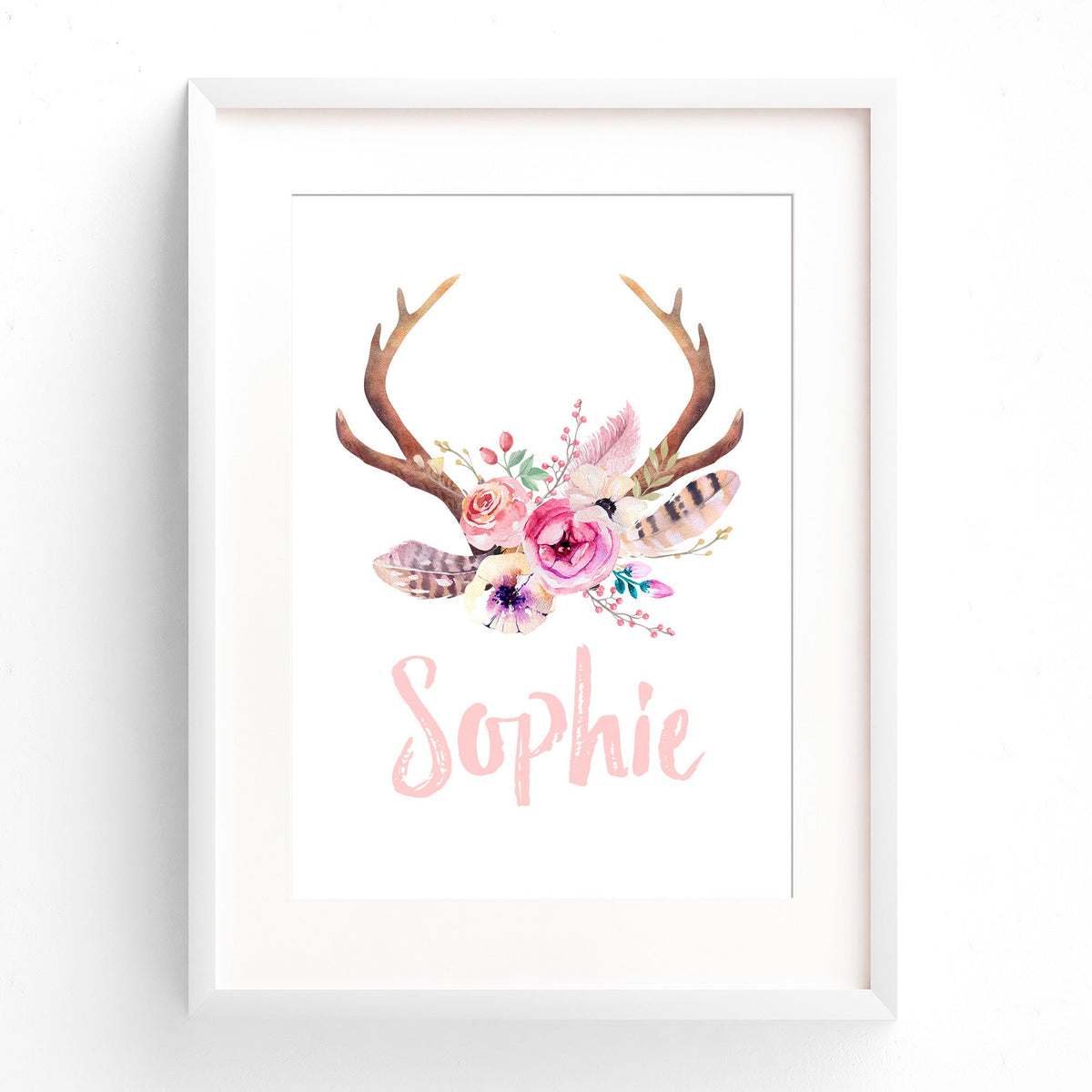 Floral Boho Tribal Antler Name Print