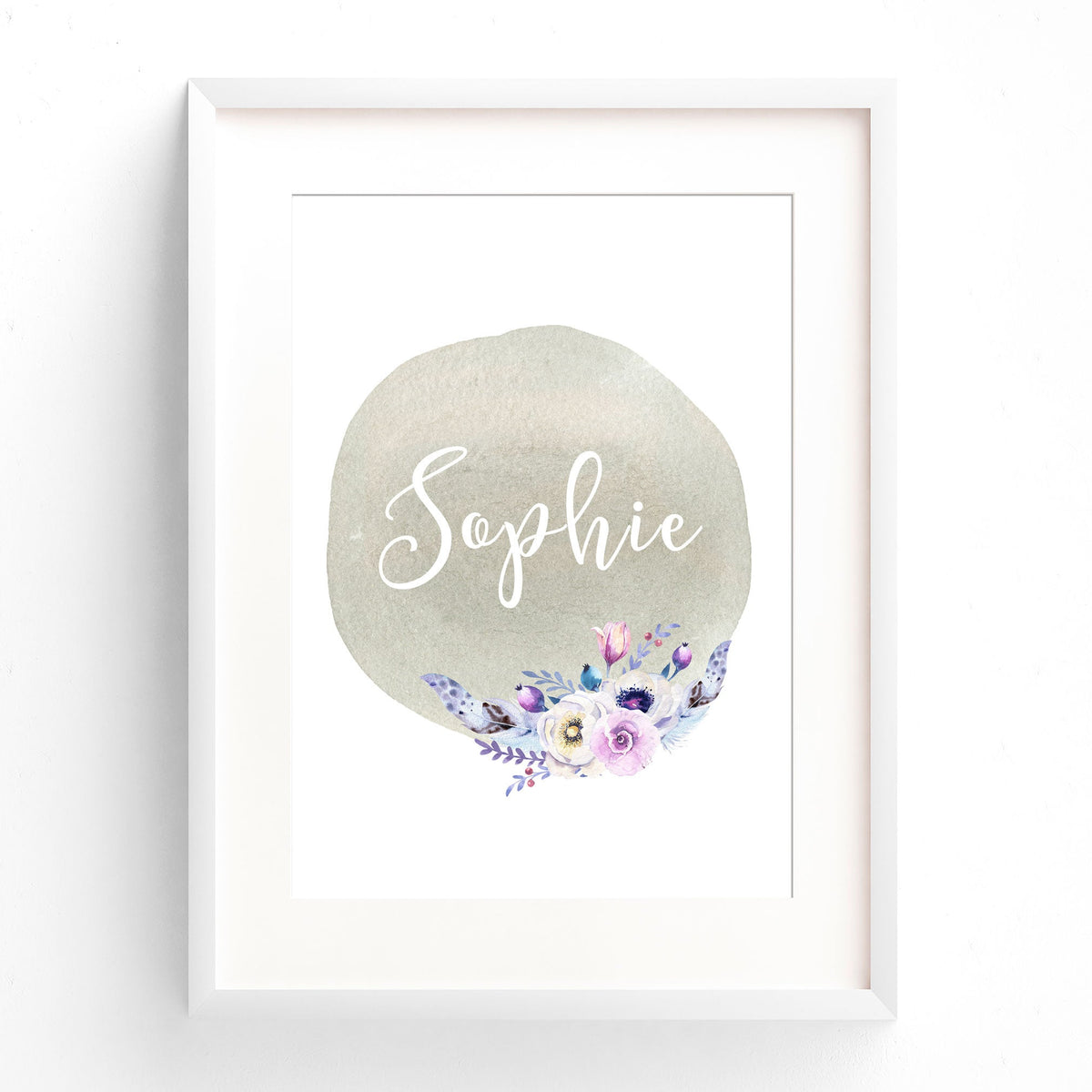 Unit price perThis customised Boho Floral wall art print, featuring your child's name is perfect for your little girls woodland inspired nursery or bedroom decor.