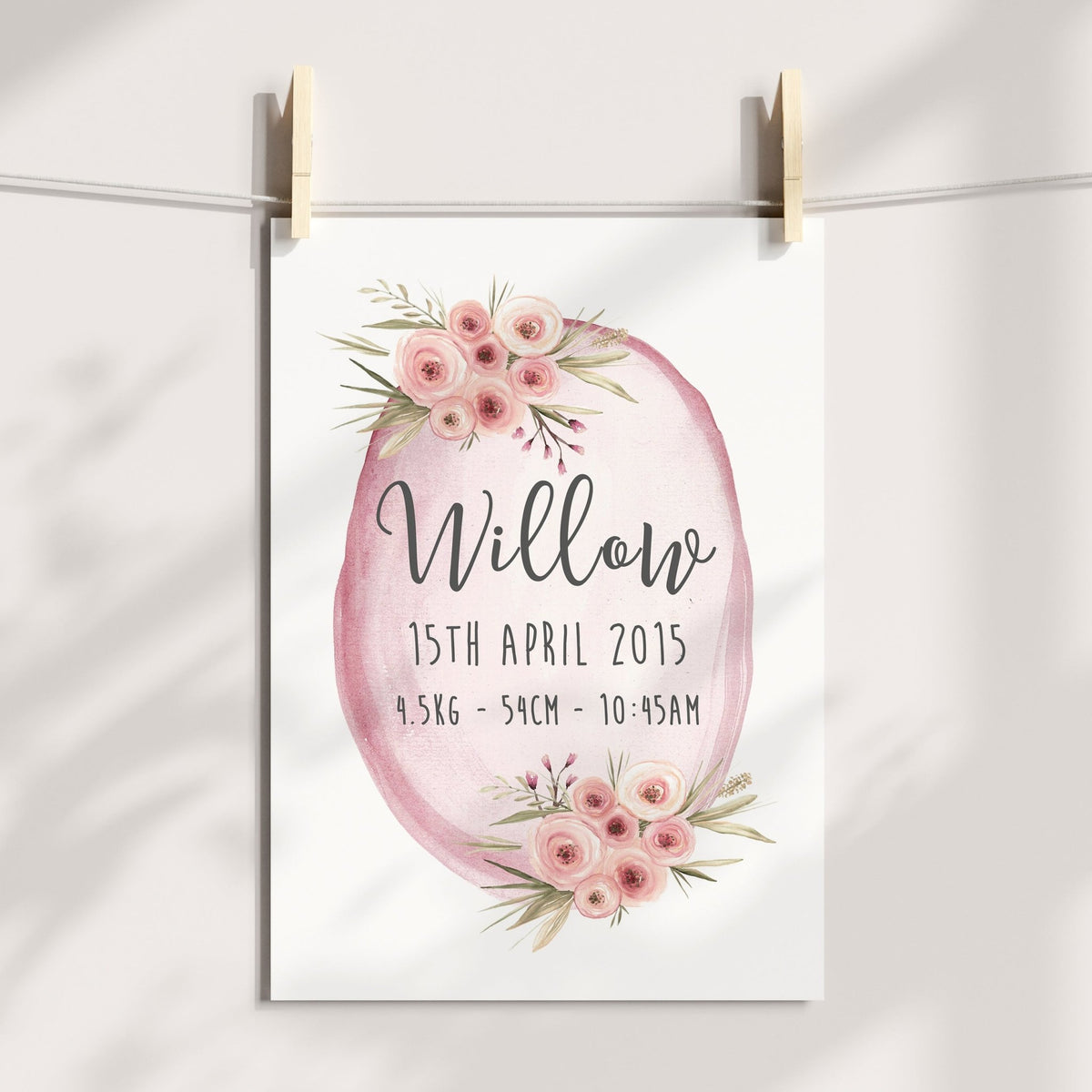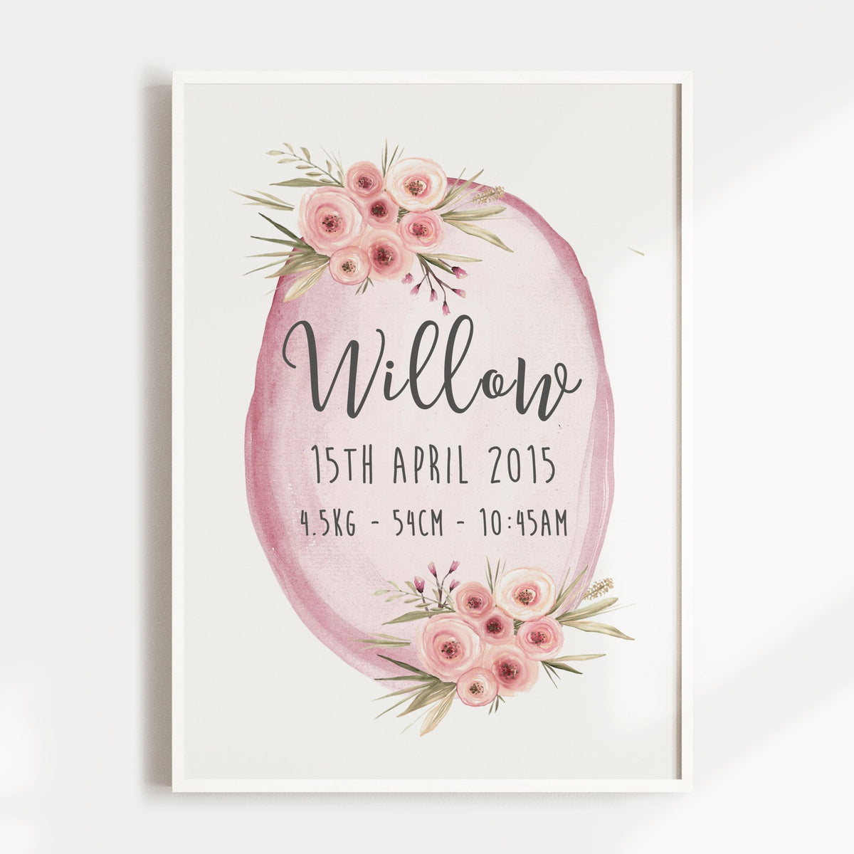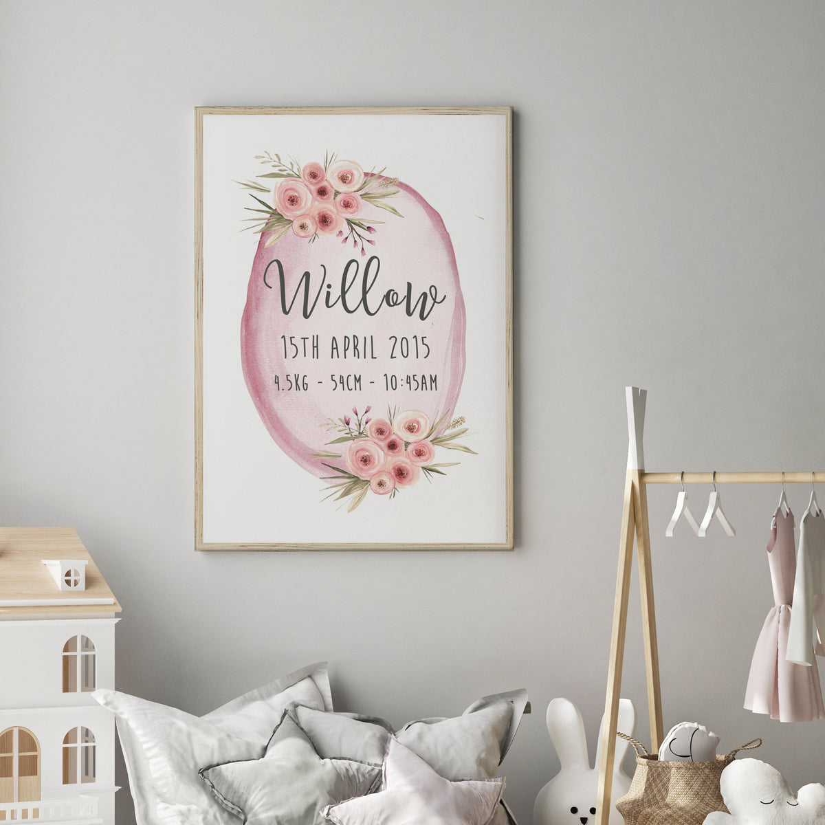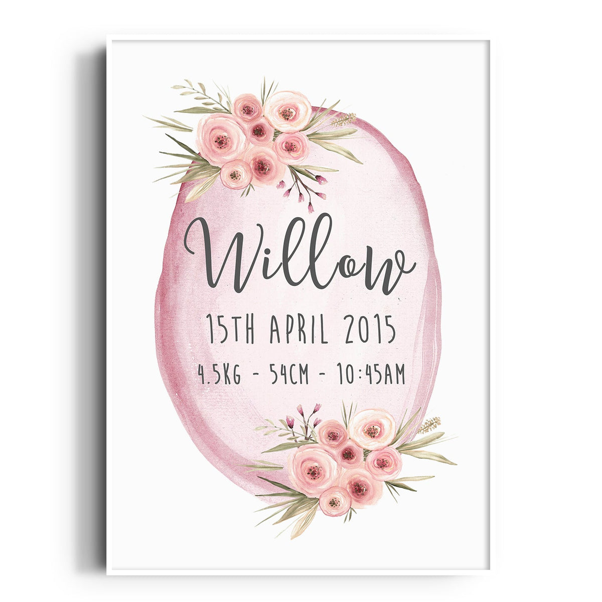Unit price perBring a delightful touch of nature to the nursery with this beautiful floral woodland birth print! Perfect for a girl's room, this wall art will add a whimsical, enchanting charm to your little one's space. With its vibrant colors and creative design, this art piece is sure to be admired!
